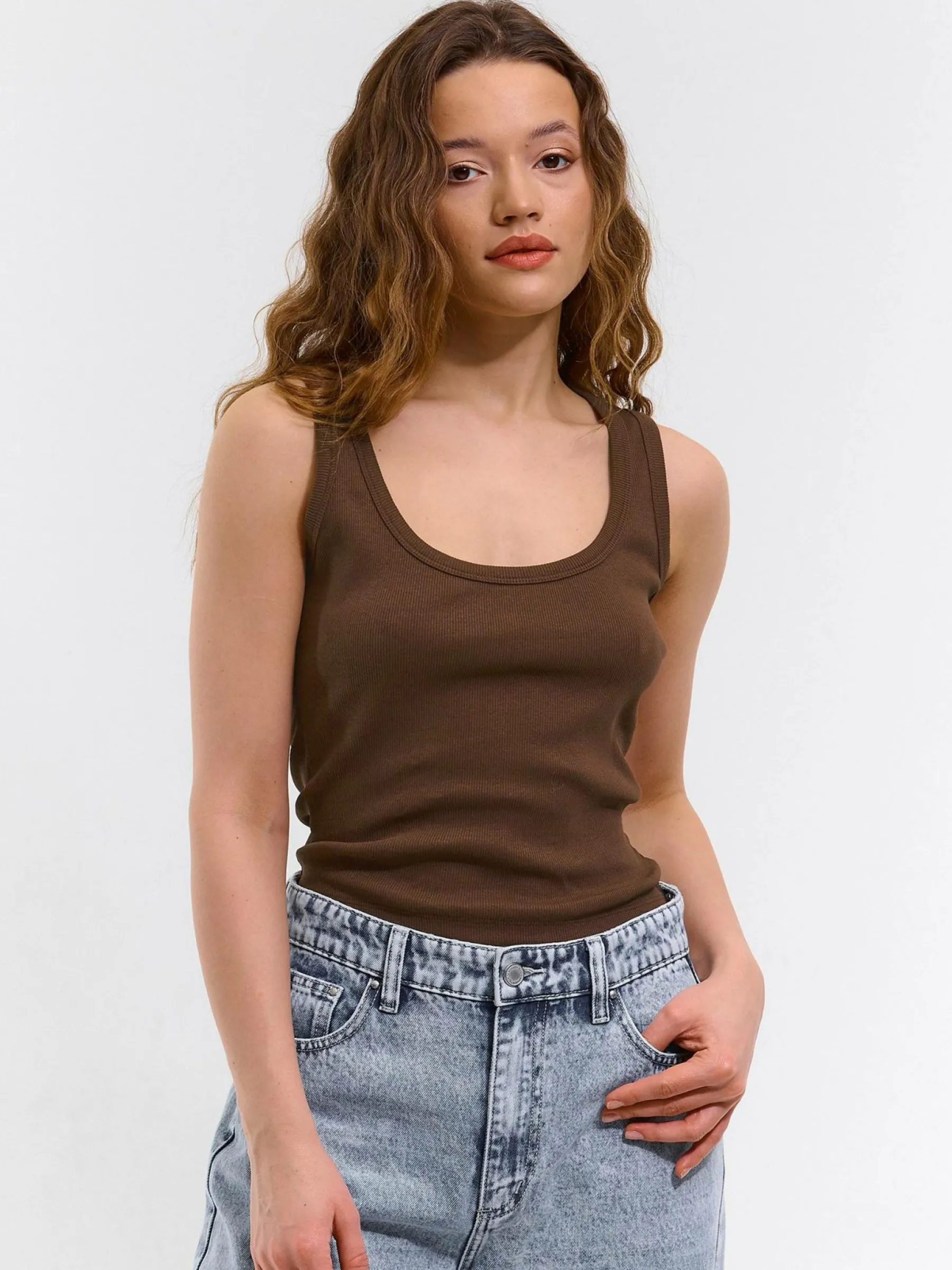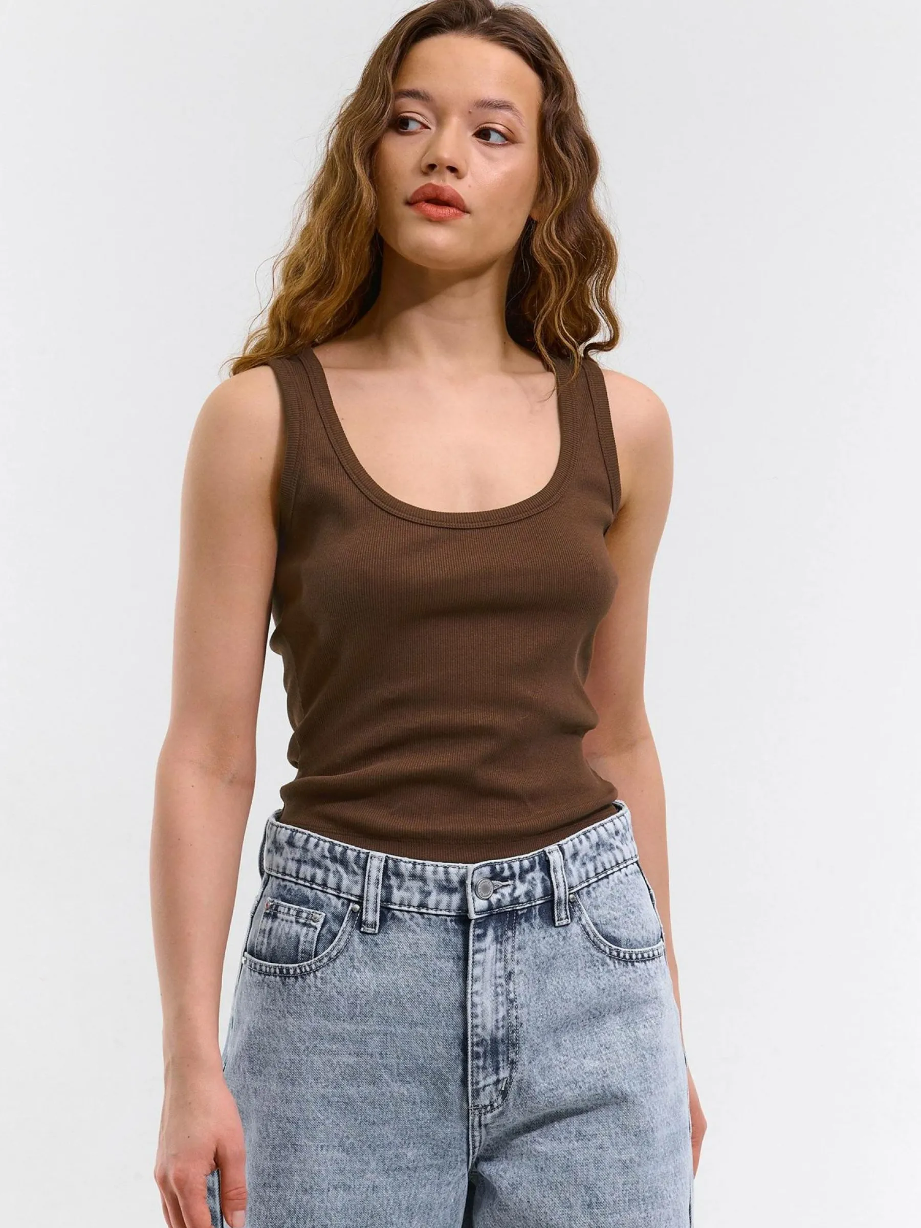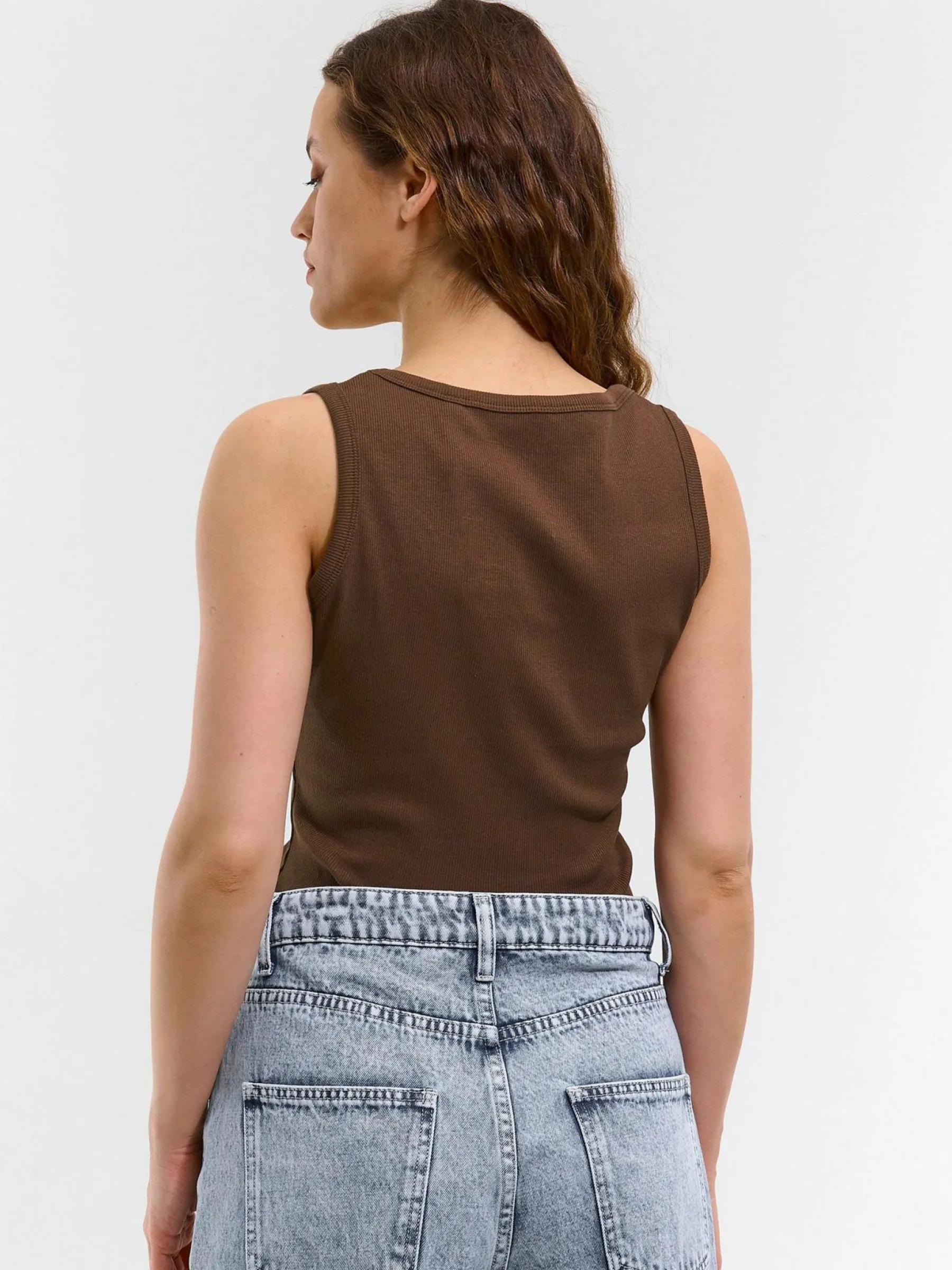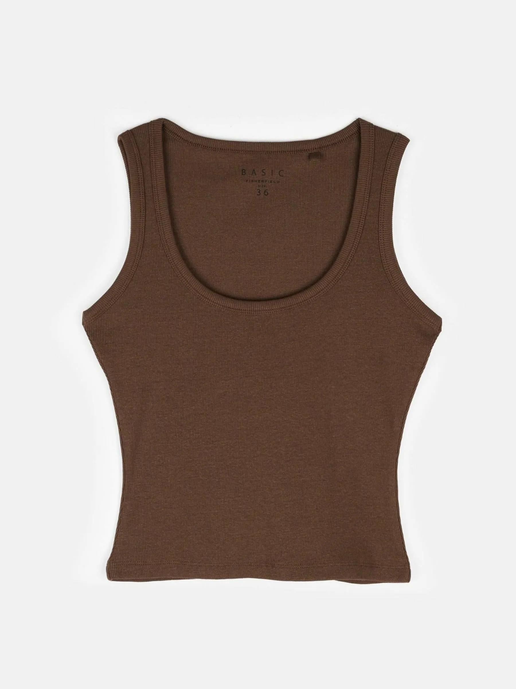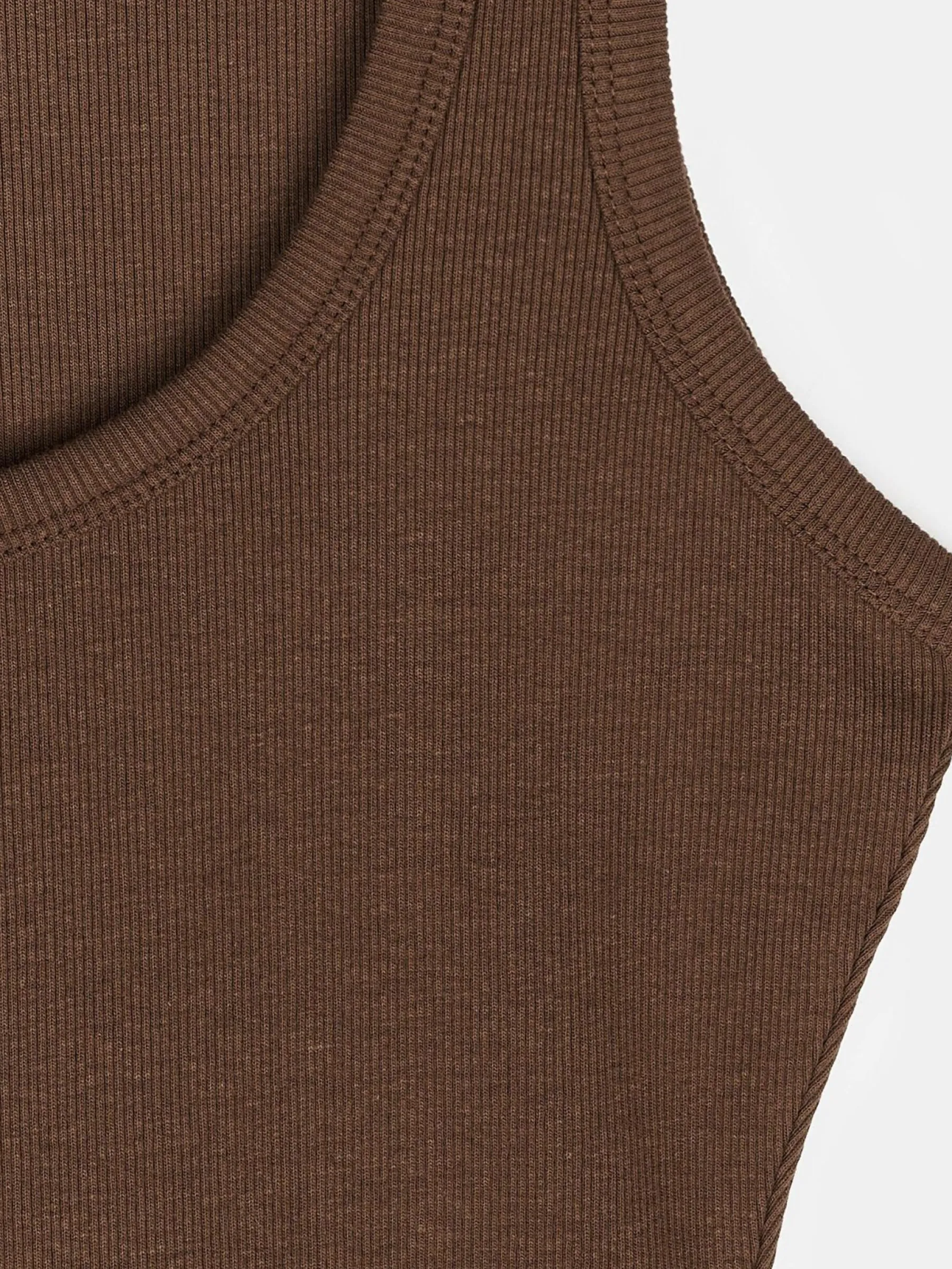 Kolor: brązowyKrój: regularTyp: podkoszulekRekaw: bez rękawówDługość: krótkiPattern style: pojedynczy kolor, że…