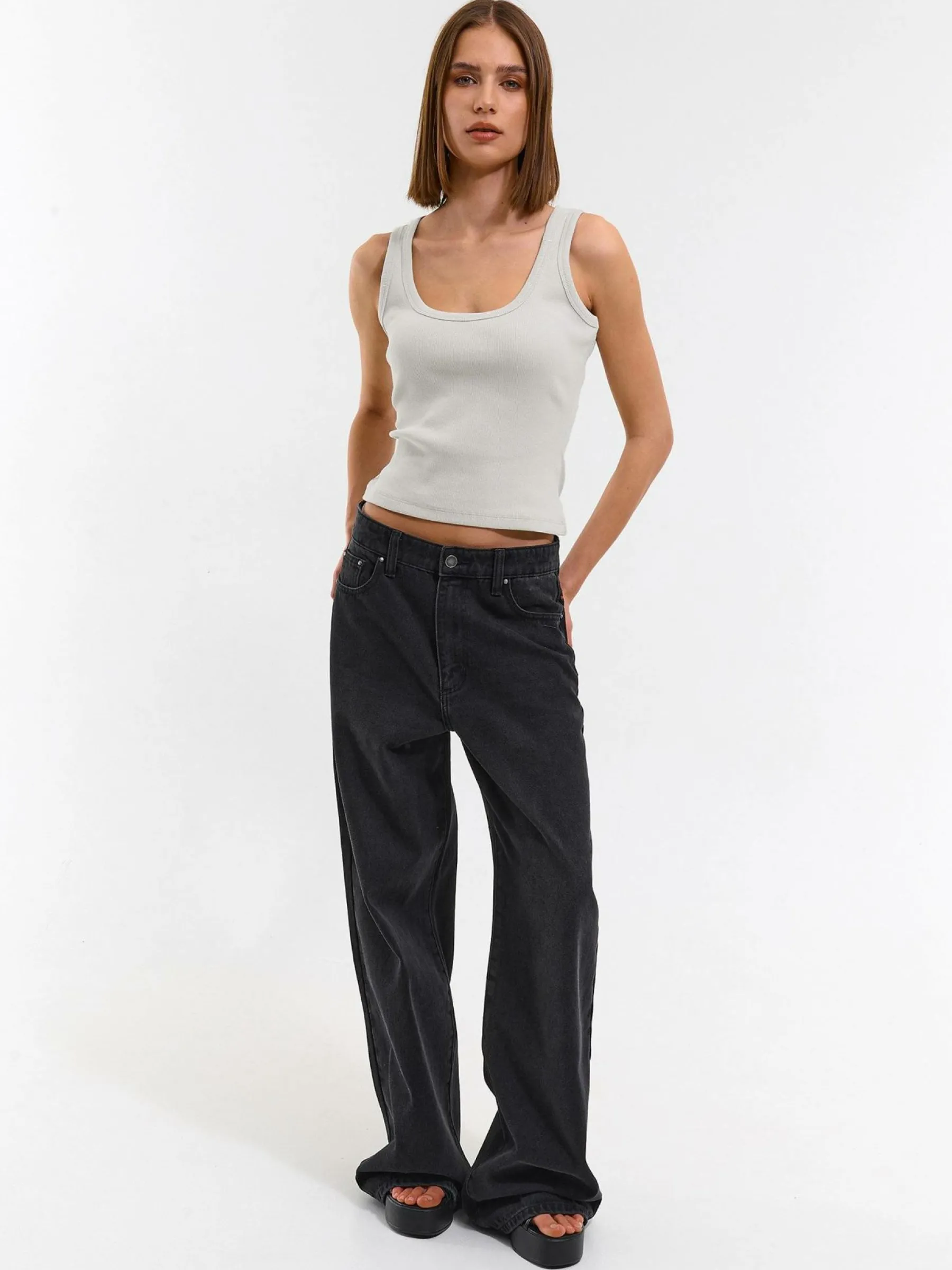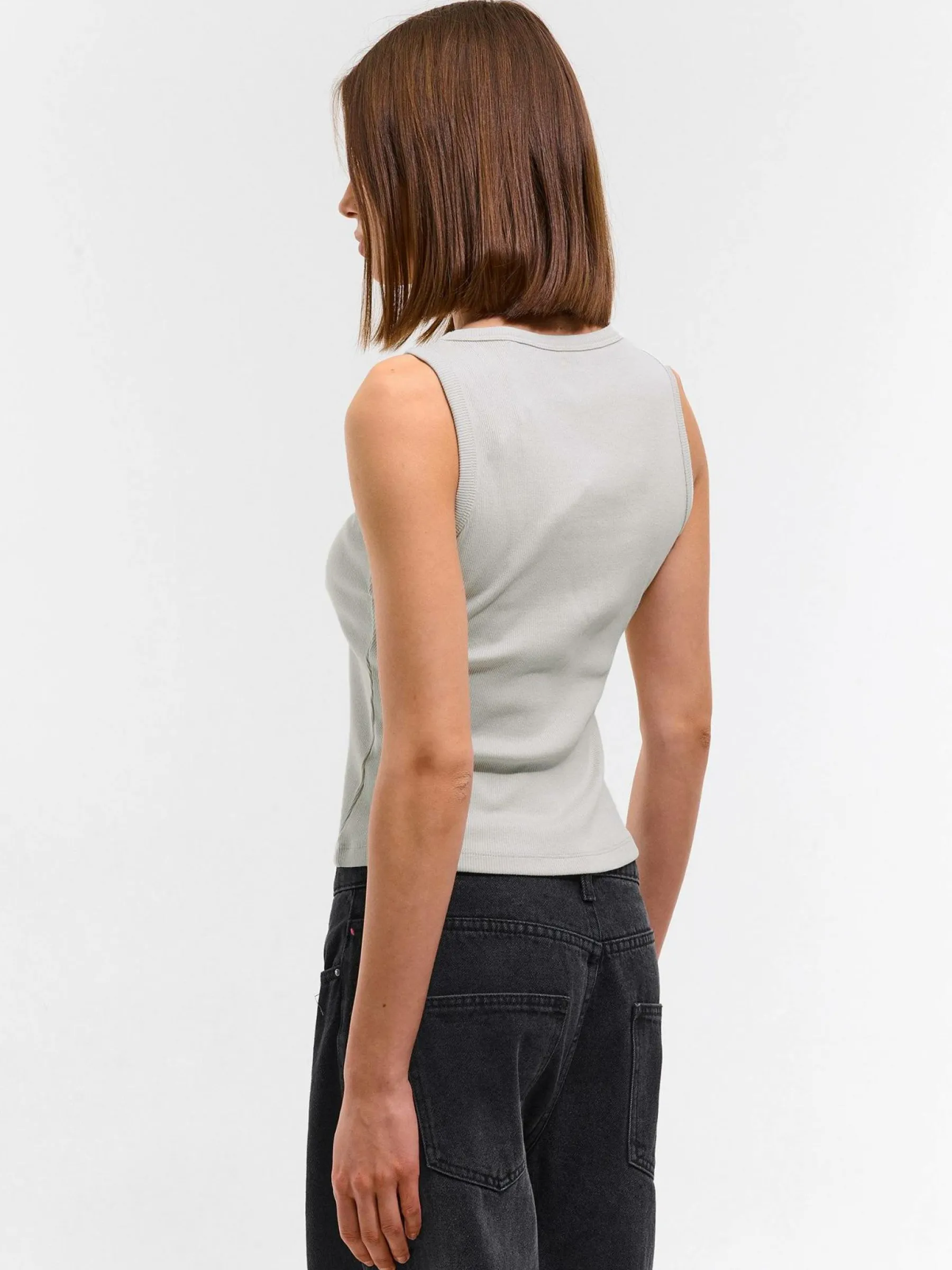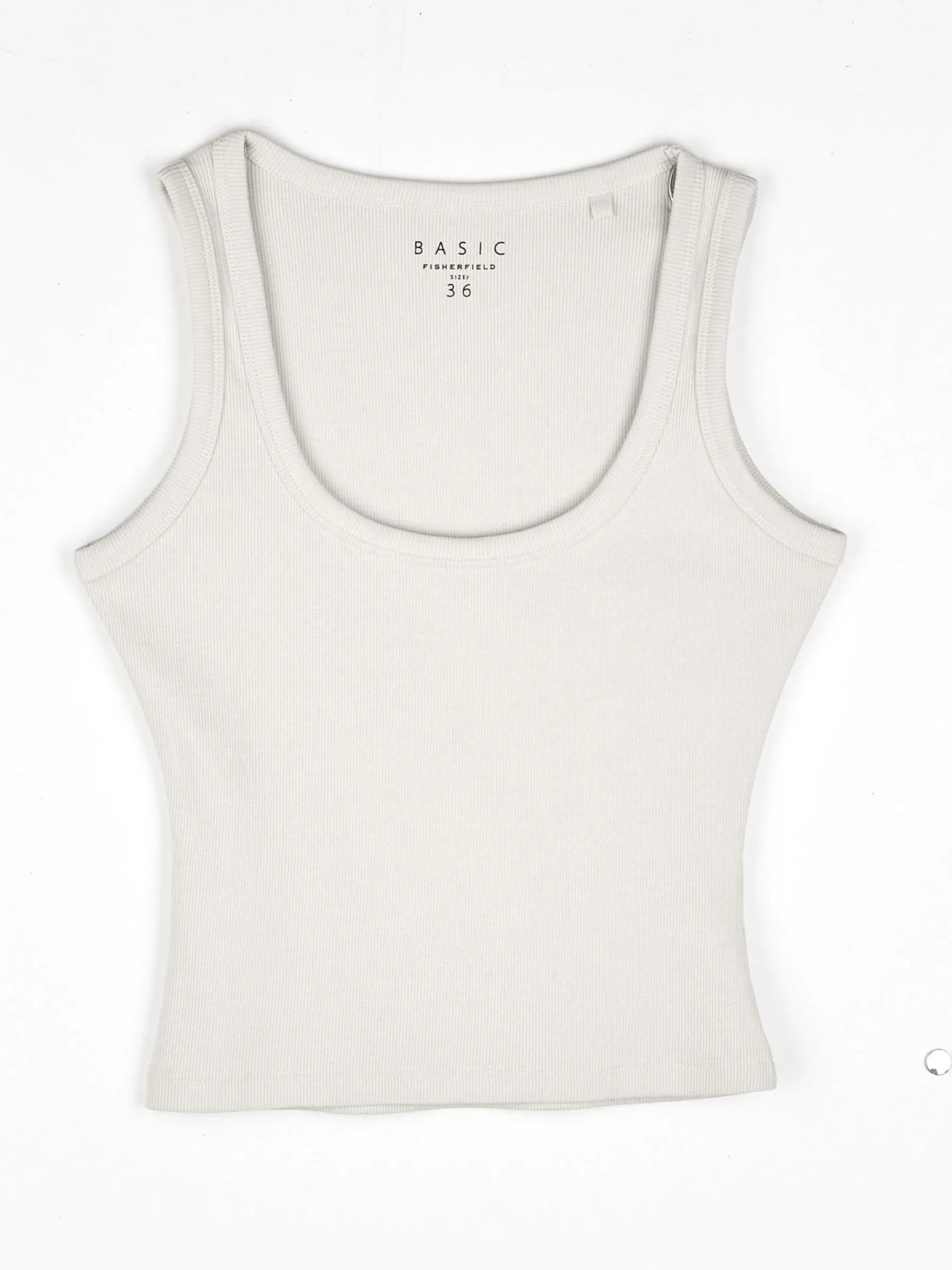 Kolor: szaryKrój: regularTyp: podkoszulekRekaw: bez rękawówDługość: krótkiPattern style: pojedynczy kolor, żebro…