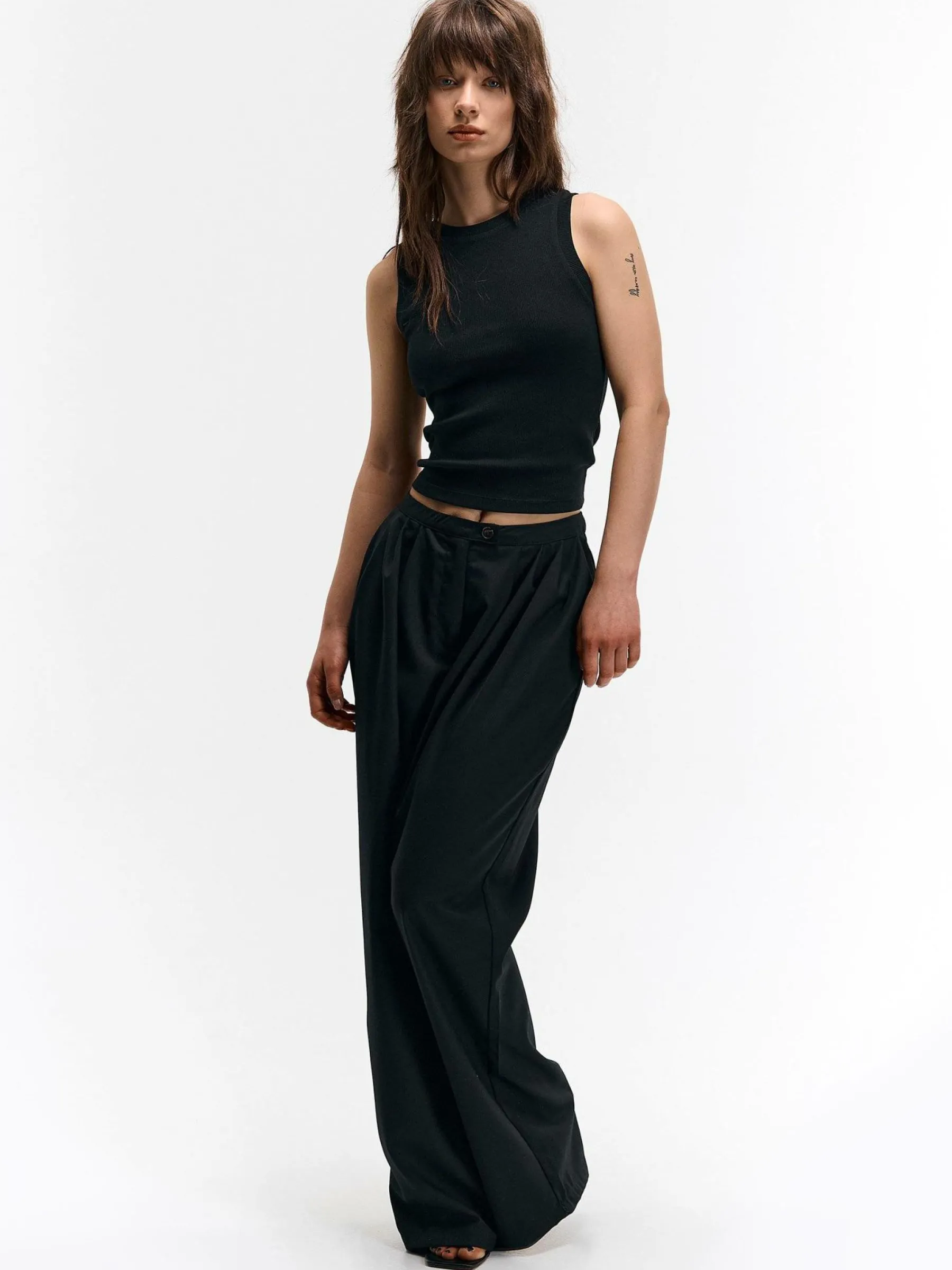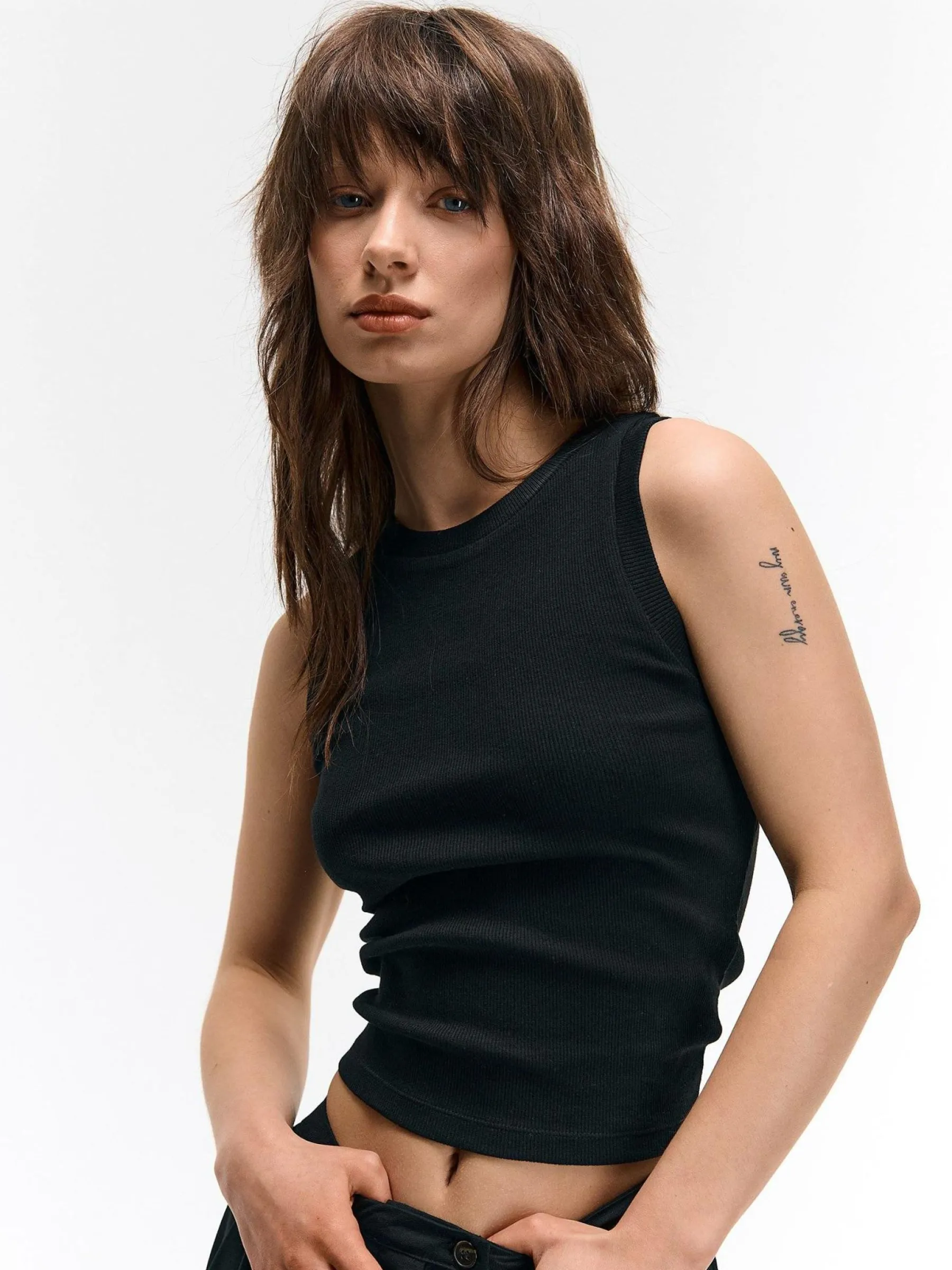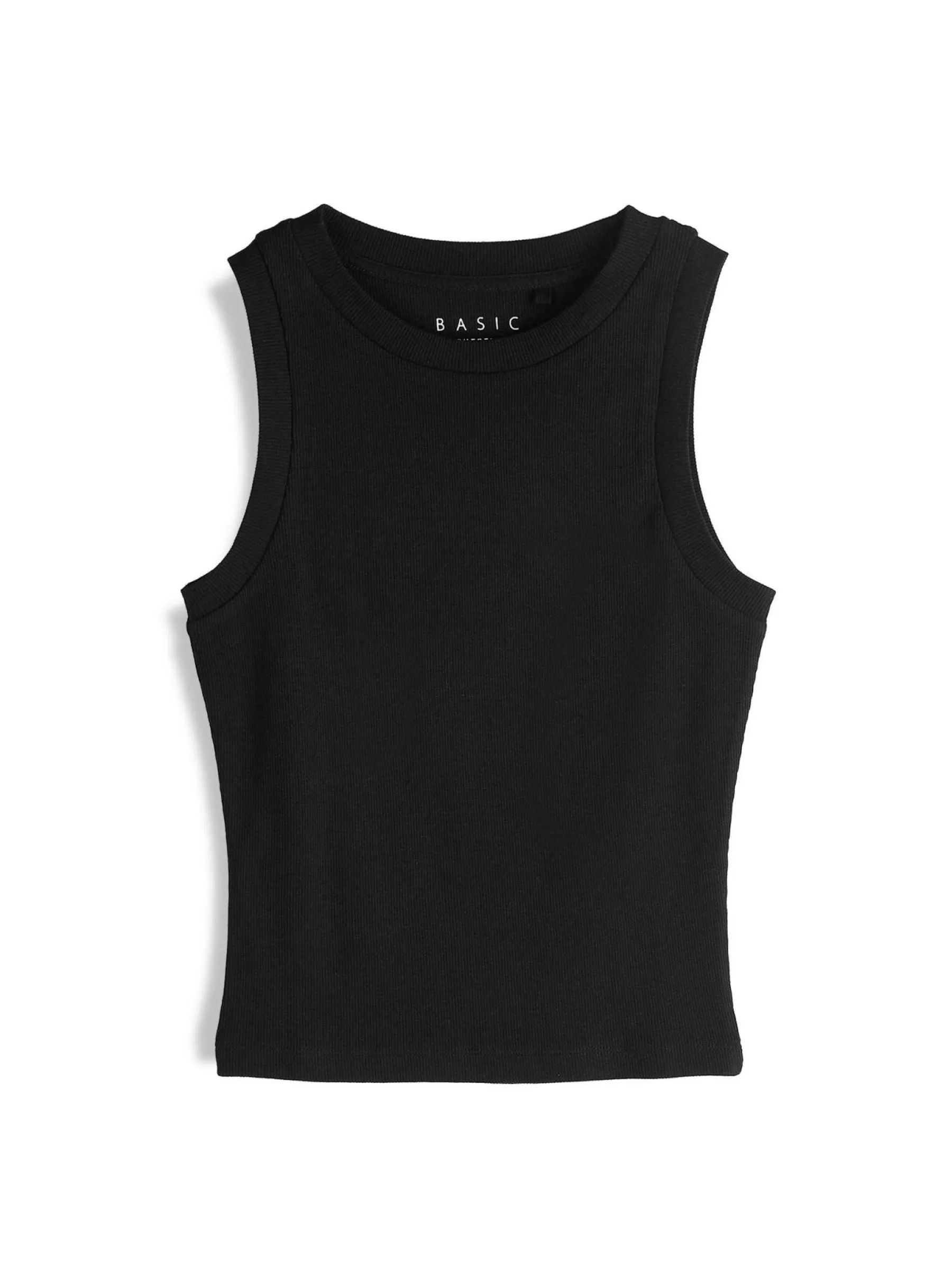 Kolor: czarnyKrój: regularTyp: podkoszulekRekaw: bez rękawówDługość: krótkiPattern style: pojedynczy kolor, żebr…