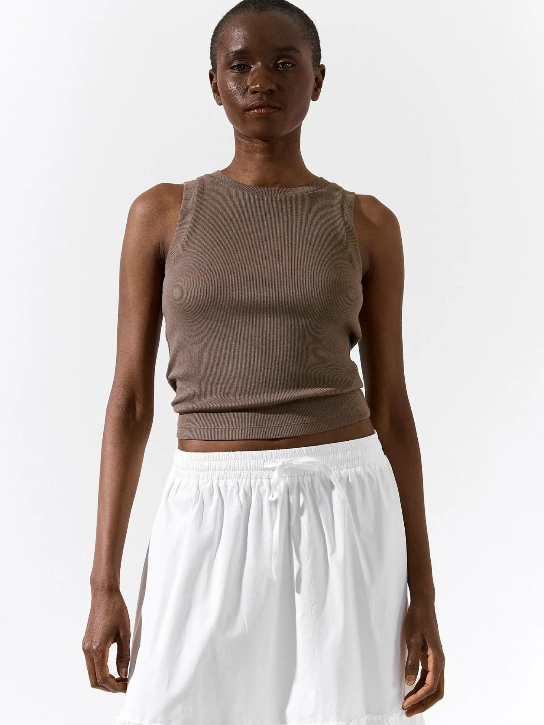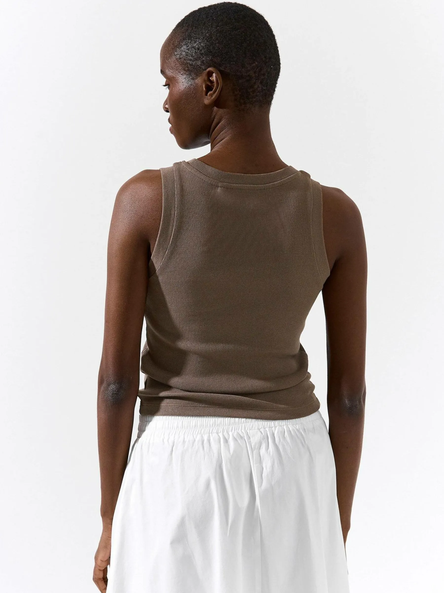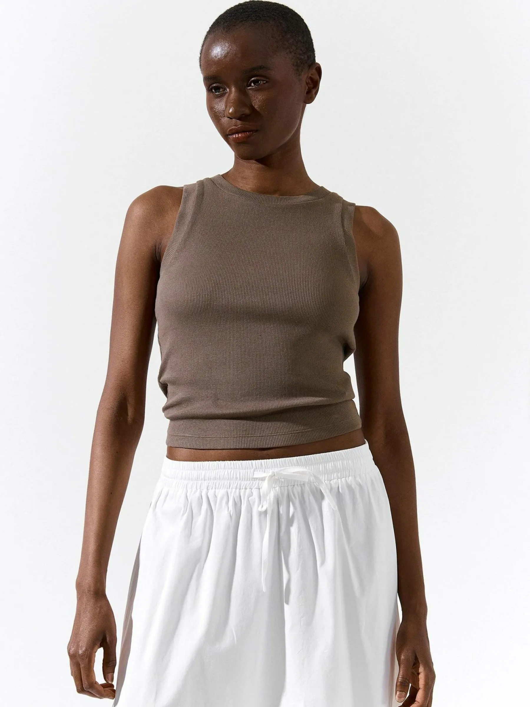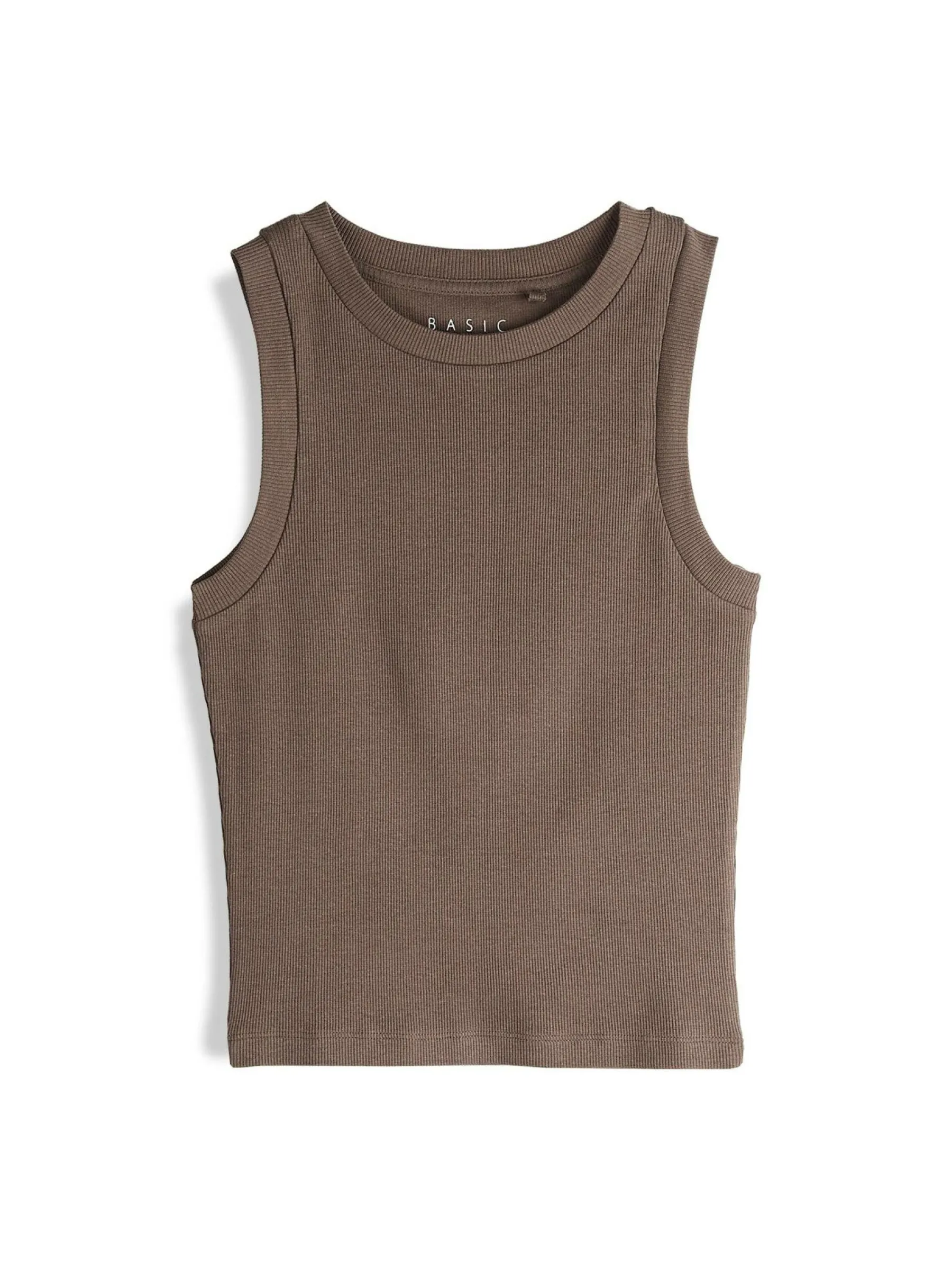 Kolor: brązowyKrój: regularTyp: podkoszulekRekaw: bez rękawówDługość: krótkiPattern style: pojedynczy kolor, że…
