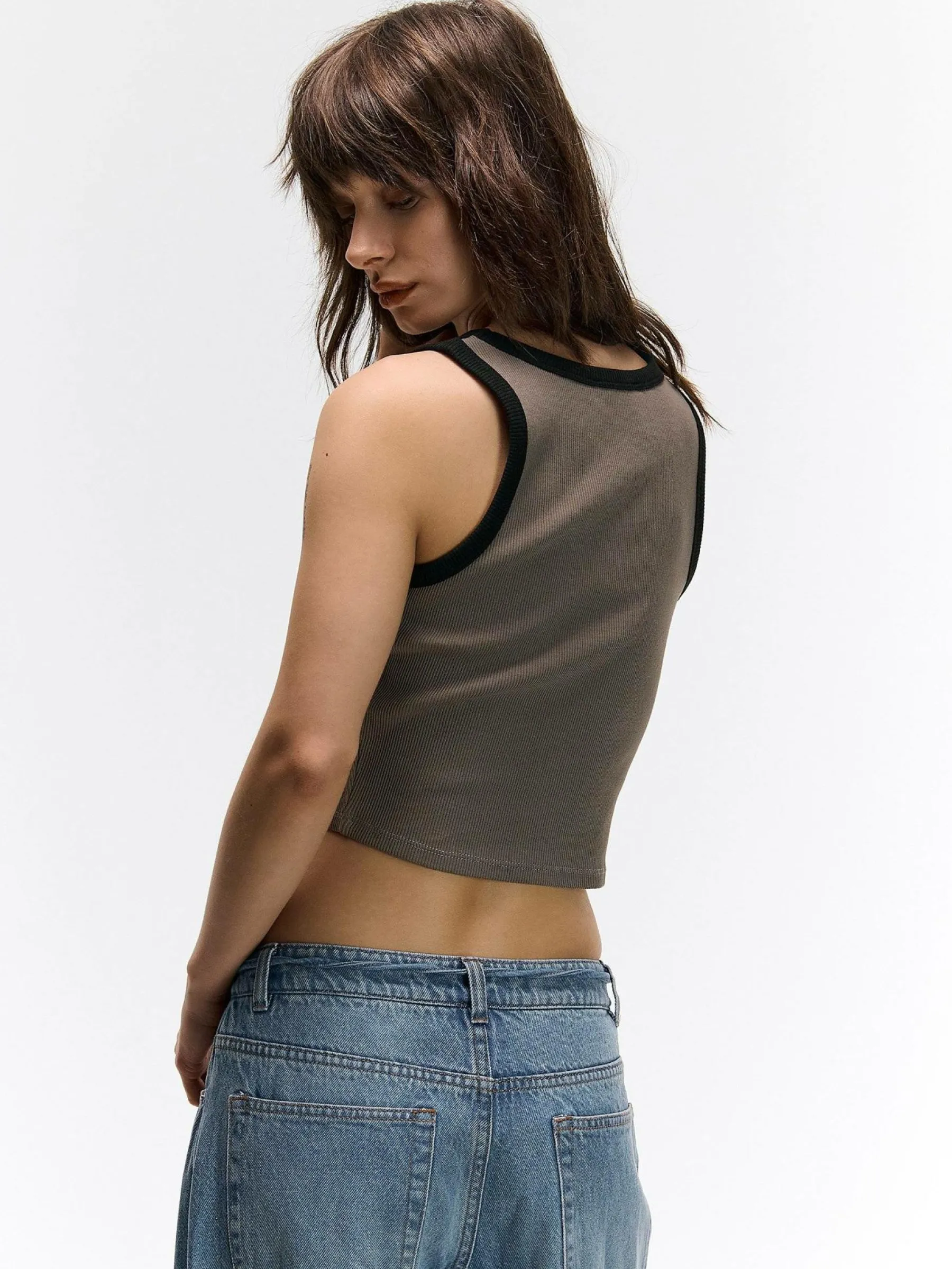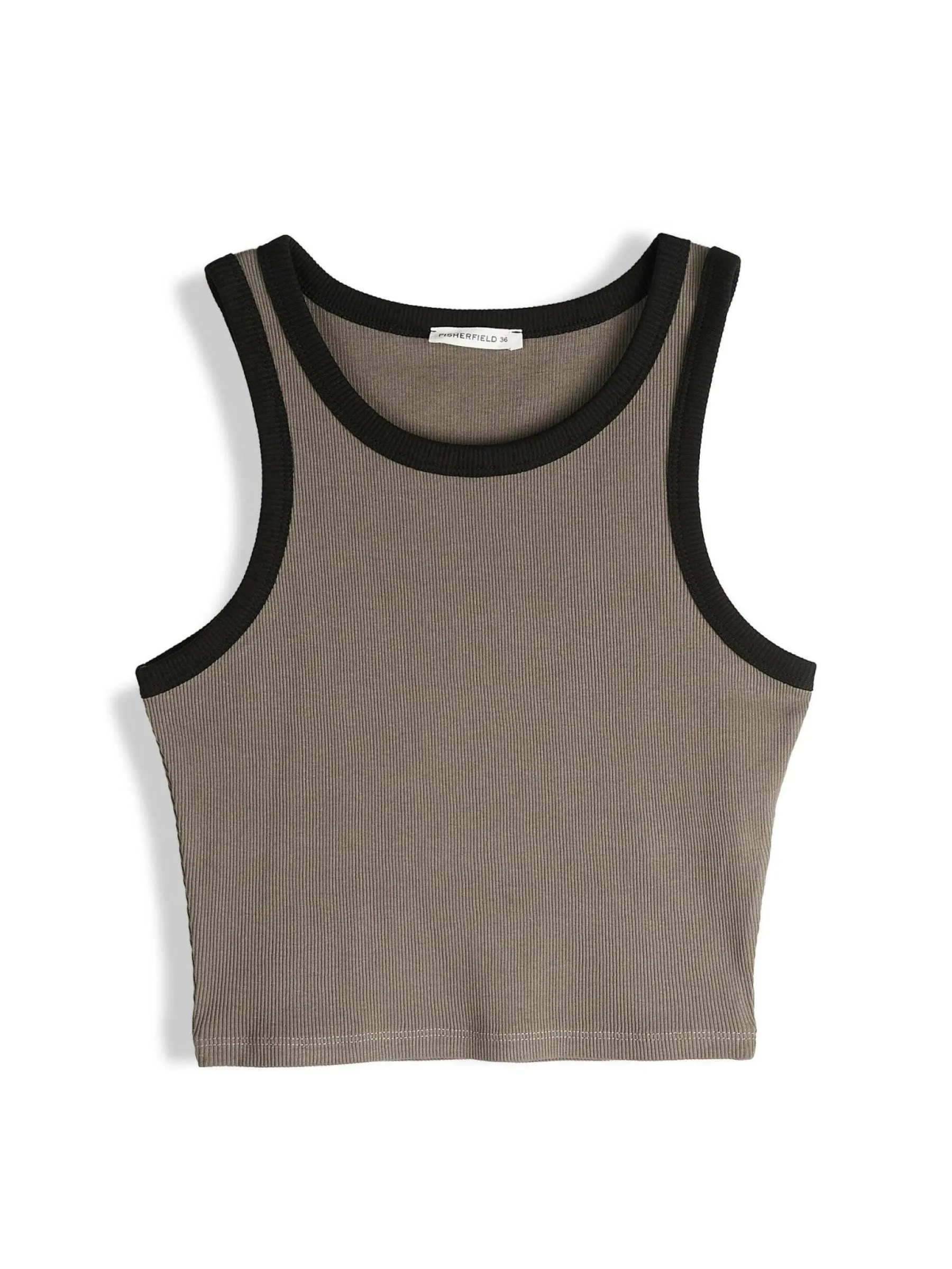 Kolor: szaryKrój: regularTyp: podkoszulekRekaw: bez rękawówDługość: krótki topPattern style: pojedynczy kolor, ż…