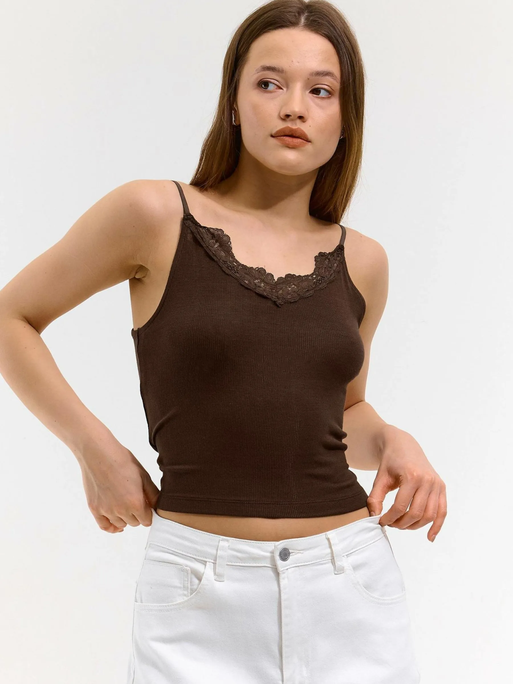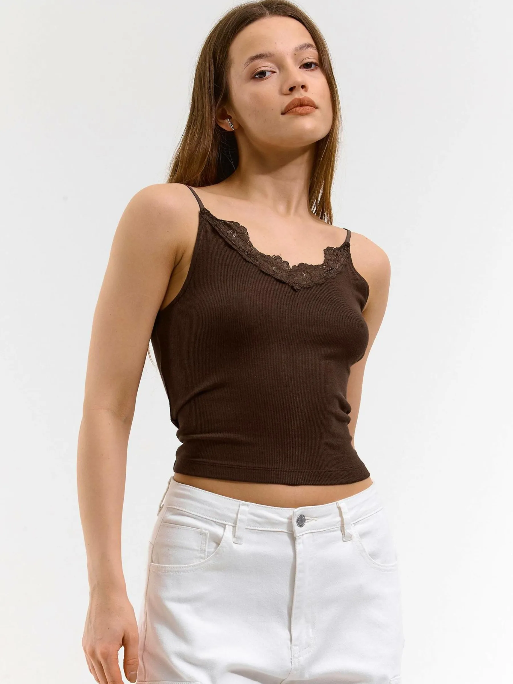 Kolor: brązowyKrój: regularTyp: podkoszulekRekaw: bez rękawówDługość: krótkiPattern style: pojedynczy kolor, że…