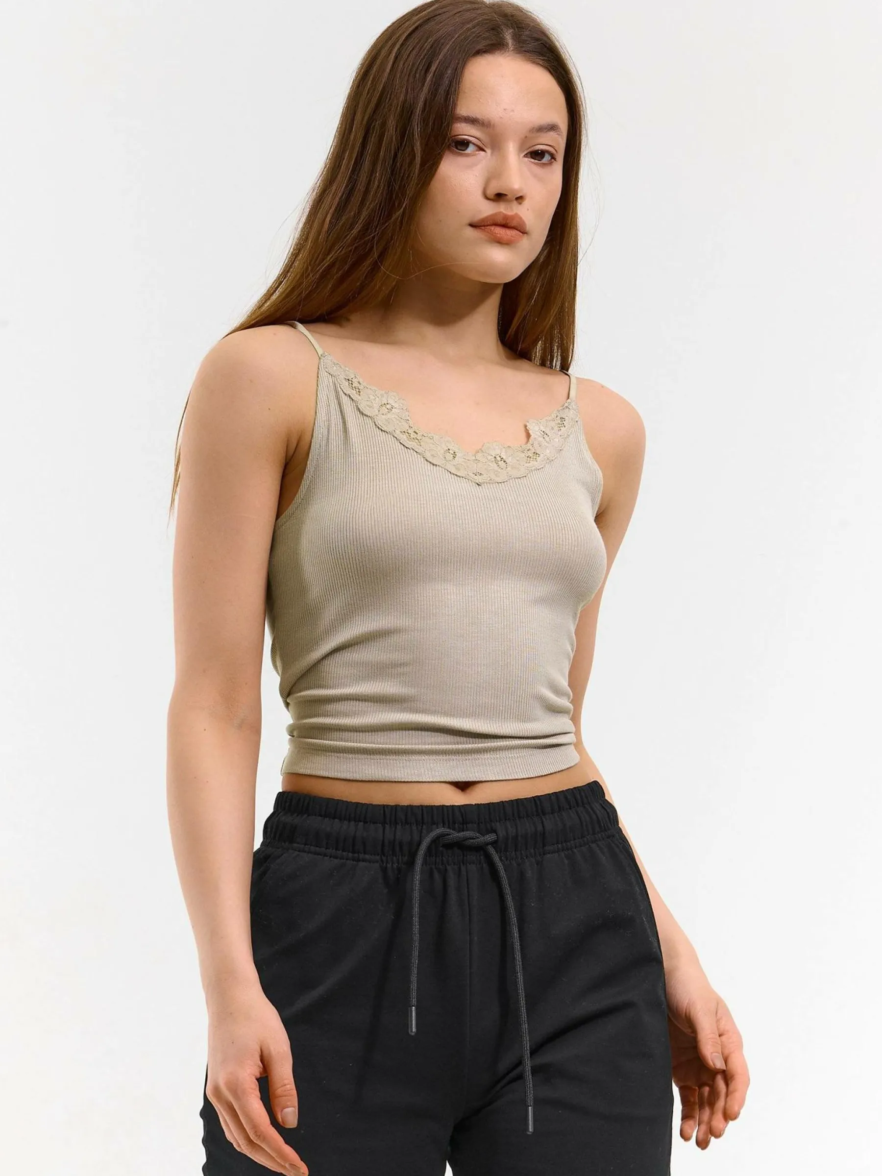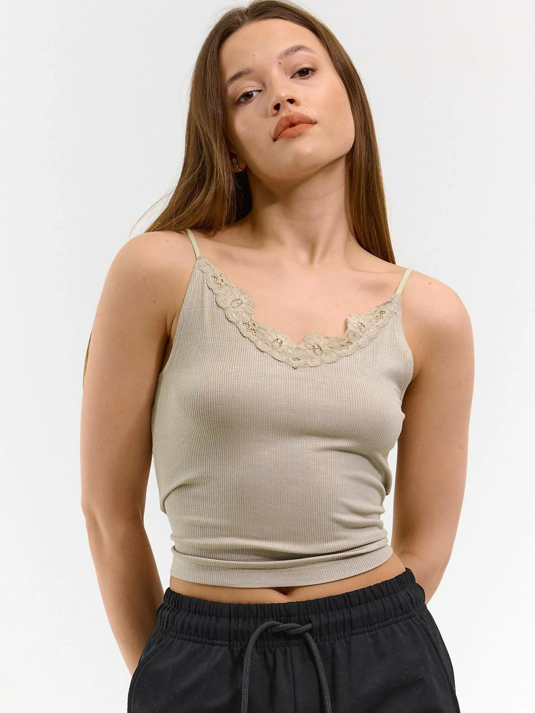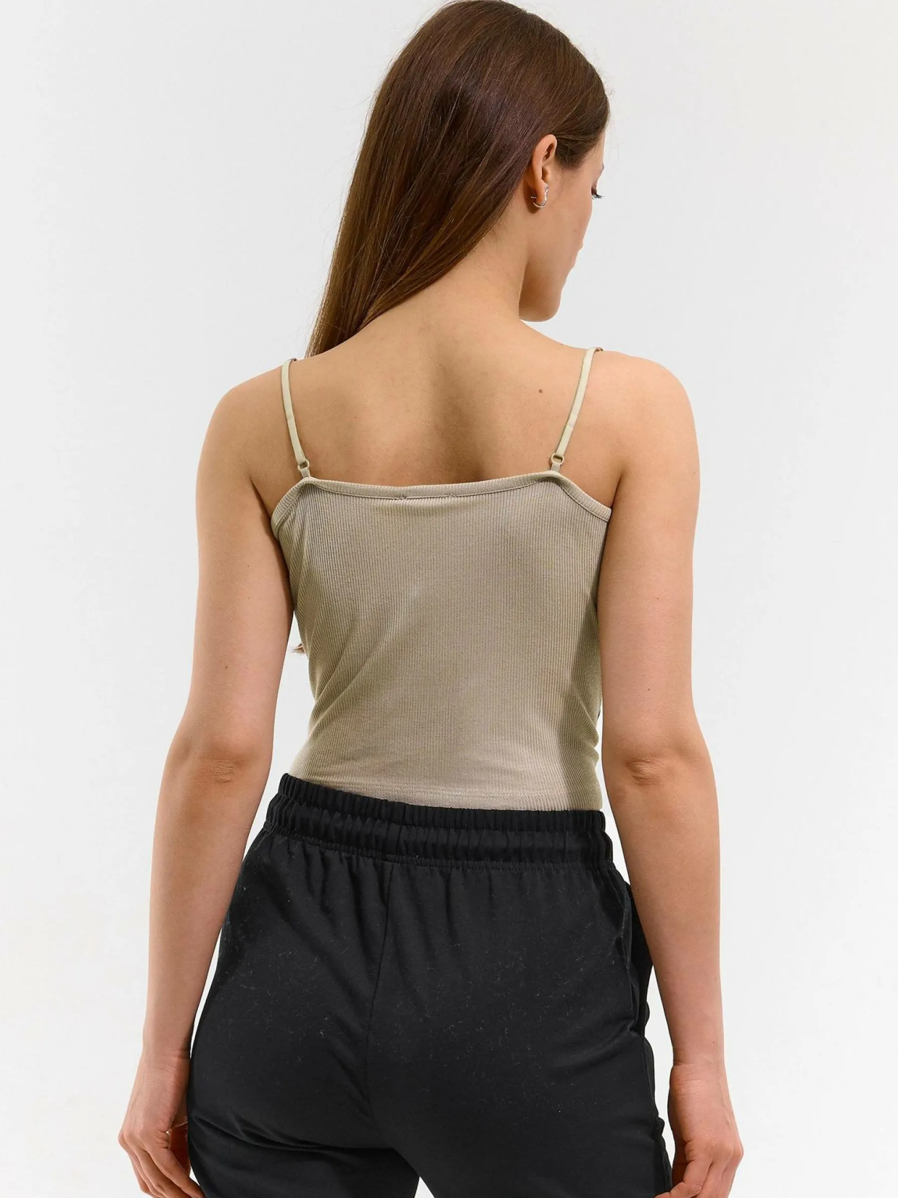 Kolor: beżowyKrój: regularTyp: podkoszulekRekaw: bez rękawówDługość: krótkiPattern style: pojedynczy kolor, żeb…