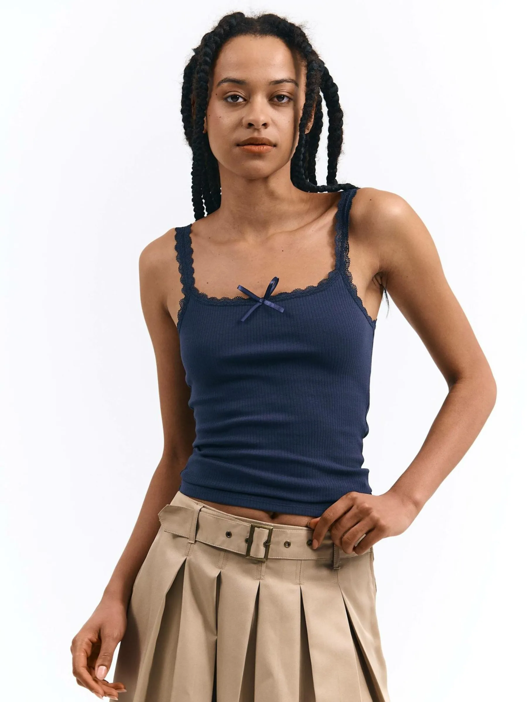 Kolor: granatowyKrój: regularTyp: podkoszulekRekaw: bez rękawówDługość: krótkiPattern style: pojedynczy kolor, ż…