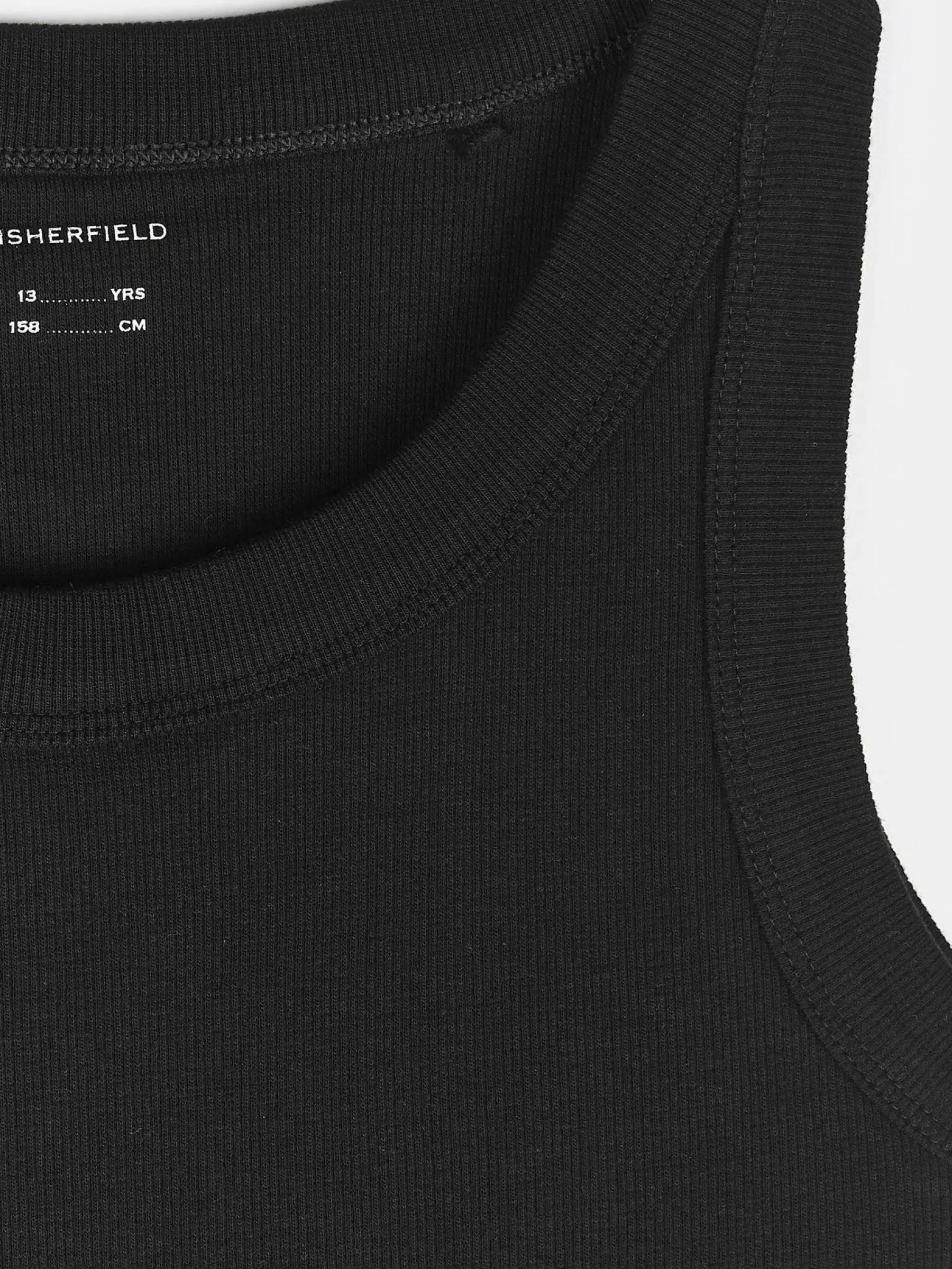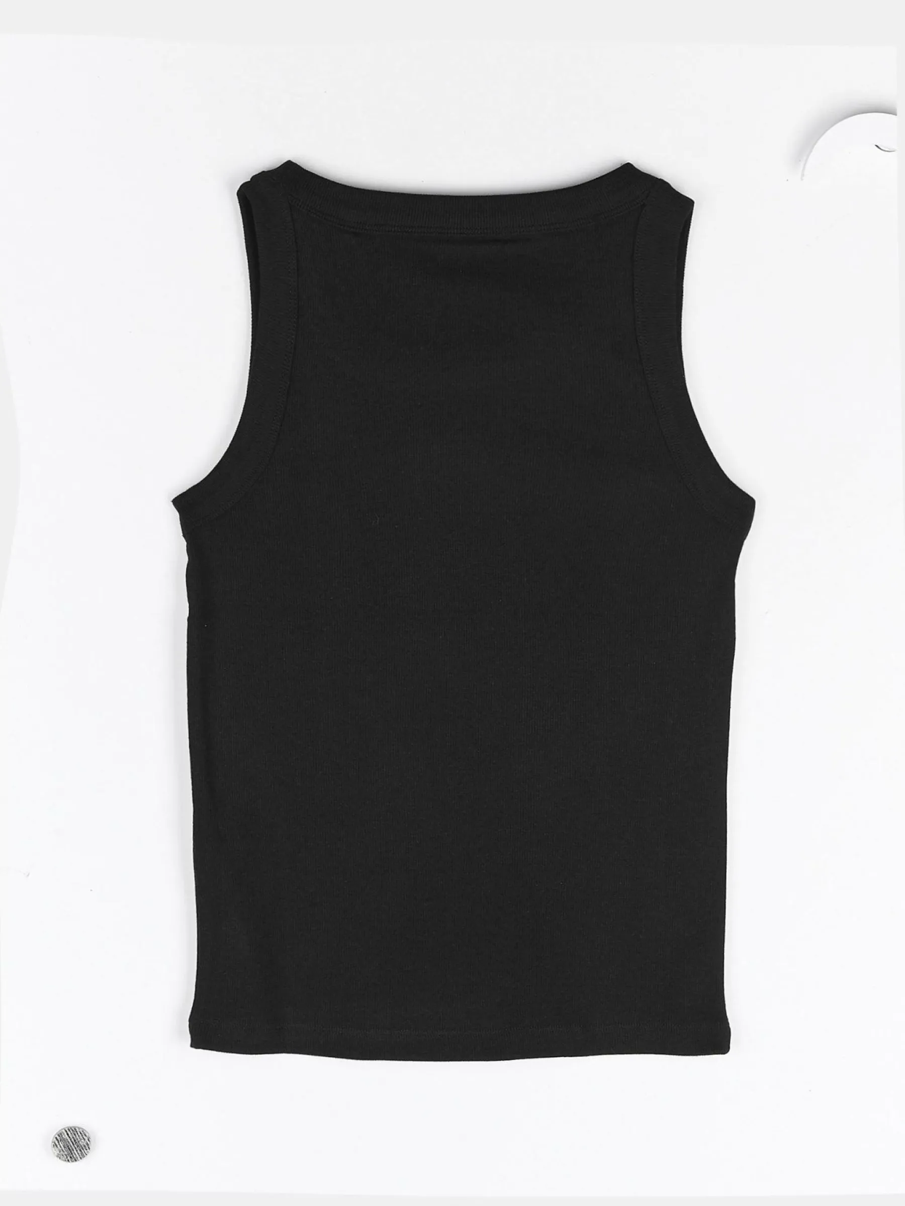 Kolor: czarnyKrój: regularTyp: podkoszulekRekaw: bez rękawówDługość: krótkiPattern style: pojedynczy kolor, żebr…