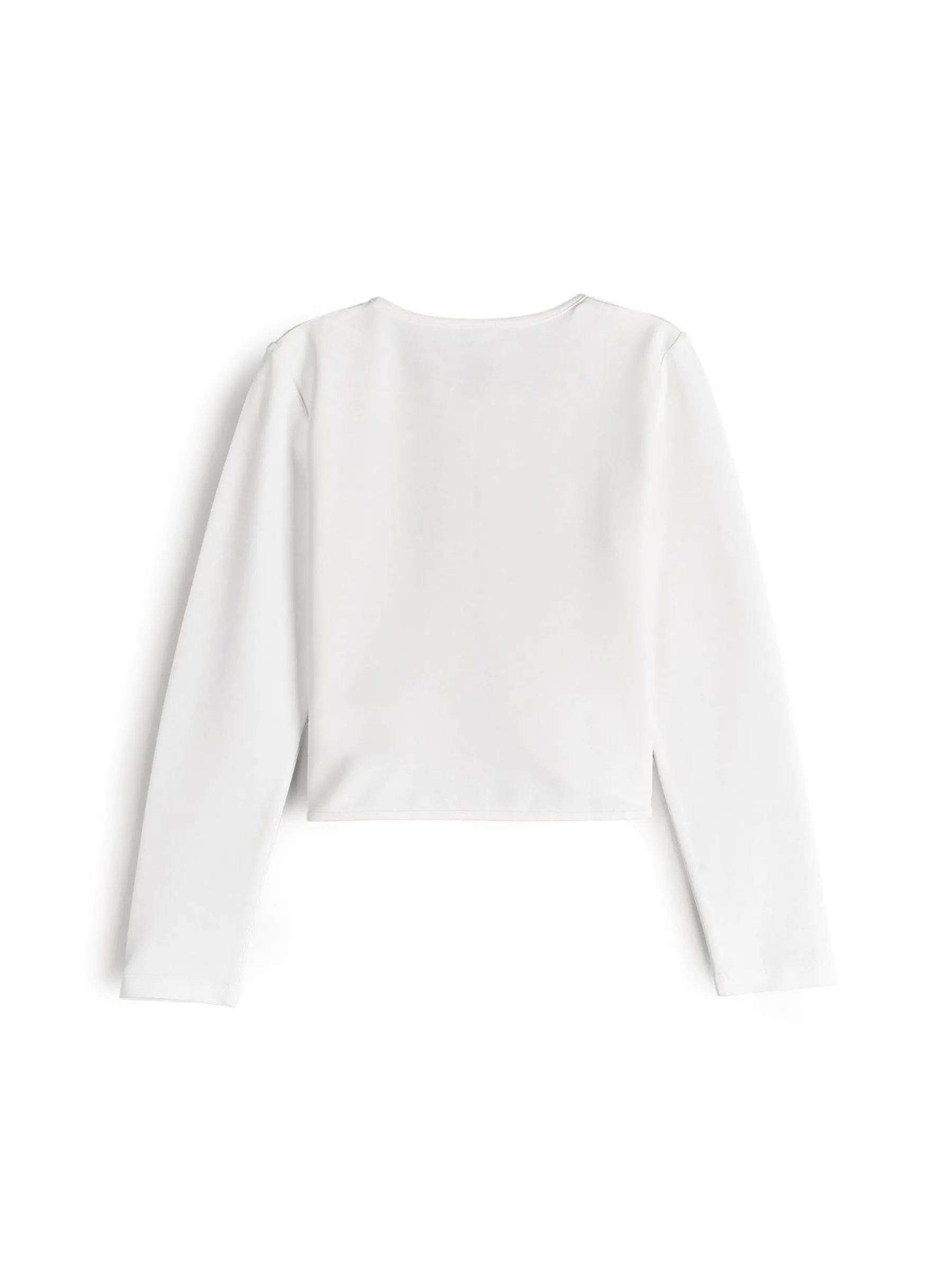 Kolor: białyKrój: asymetryczneTyp: swetryRekaw: długi rękawDługość: krótkiPattern style: pojedynczy kolorMateria…