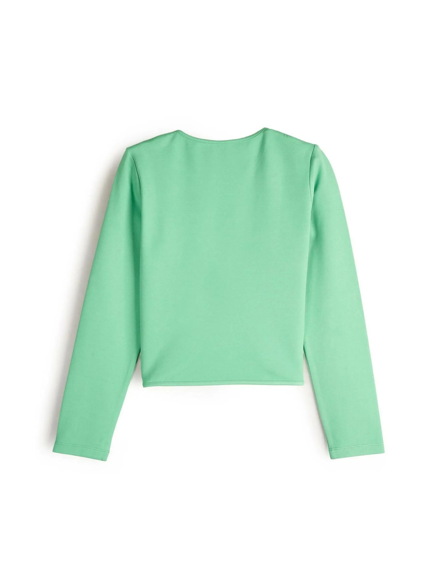 Kolor: zielonyKrój: asymetryczneTyp: swetryRekaw: długi rękawDługość: krótkiPattern style: pojedynczy kolorMateri…