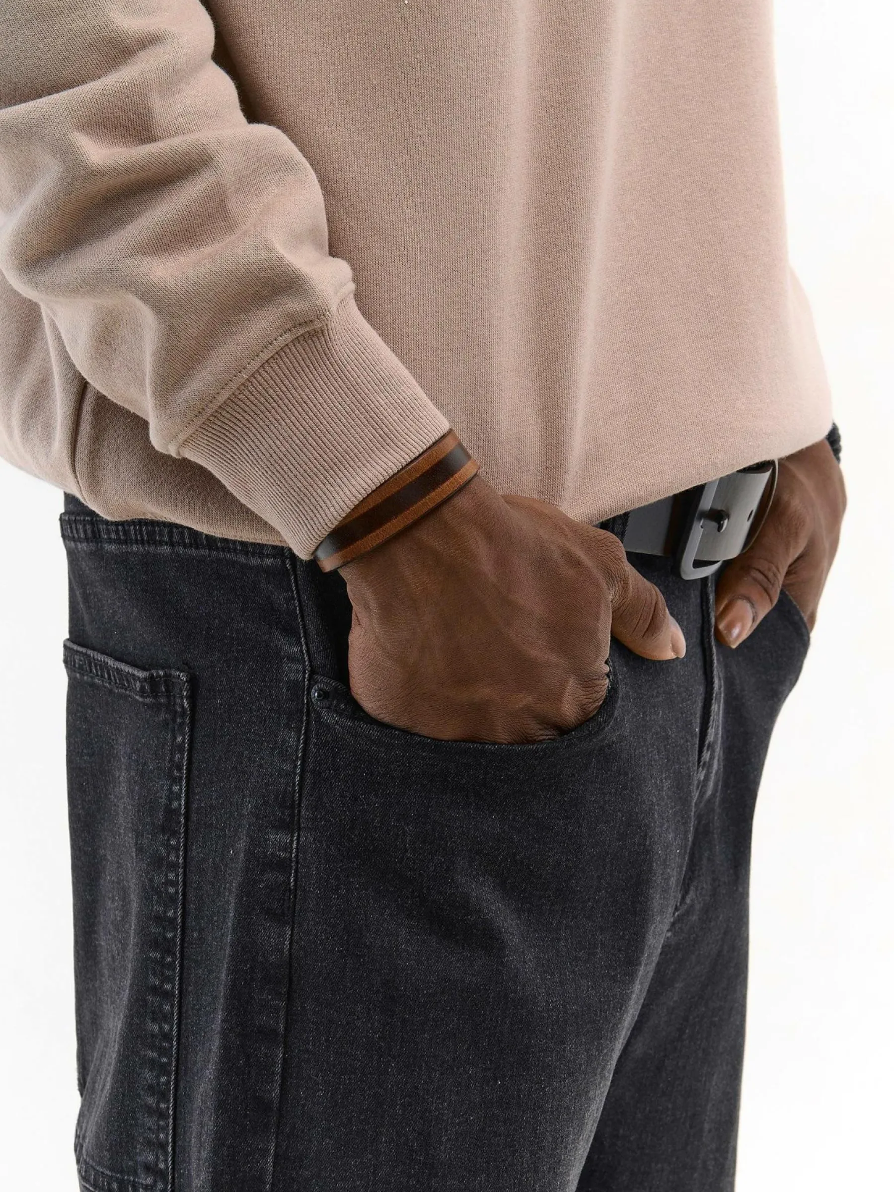 Kolor: brązowyTyp: bransoletkaPattern style: pojedynczy kolorDetal: na snapy, z paskiemMateriał: sztuczna skóraPłeć…