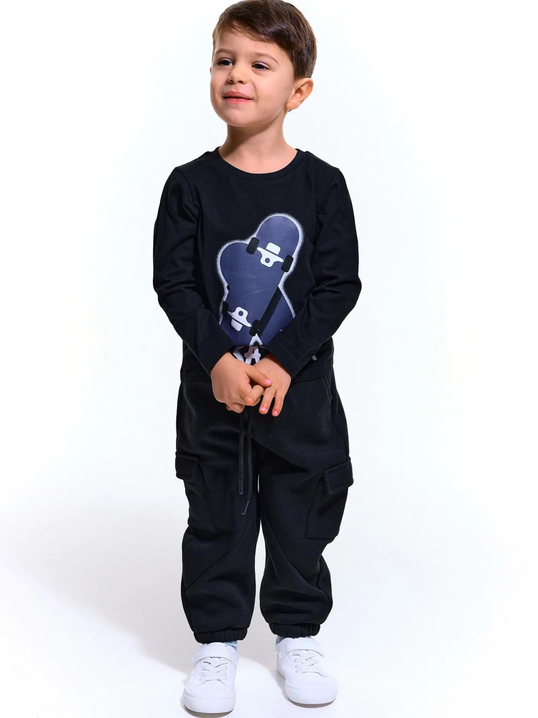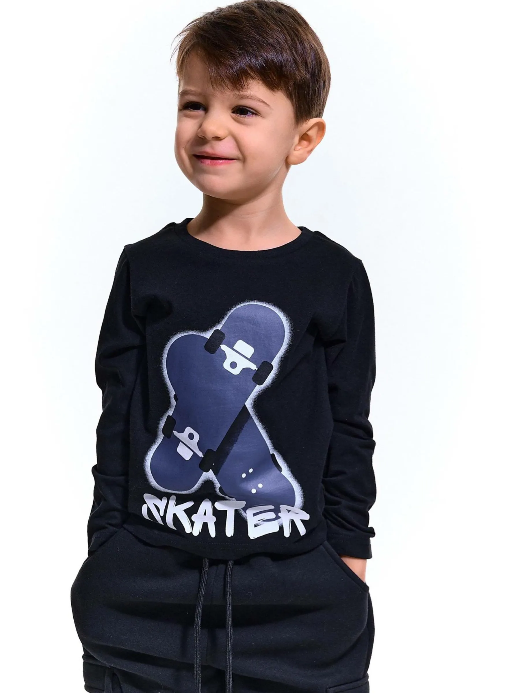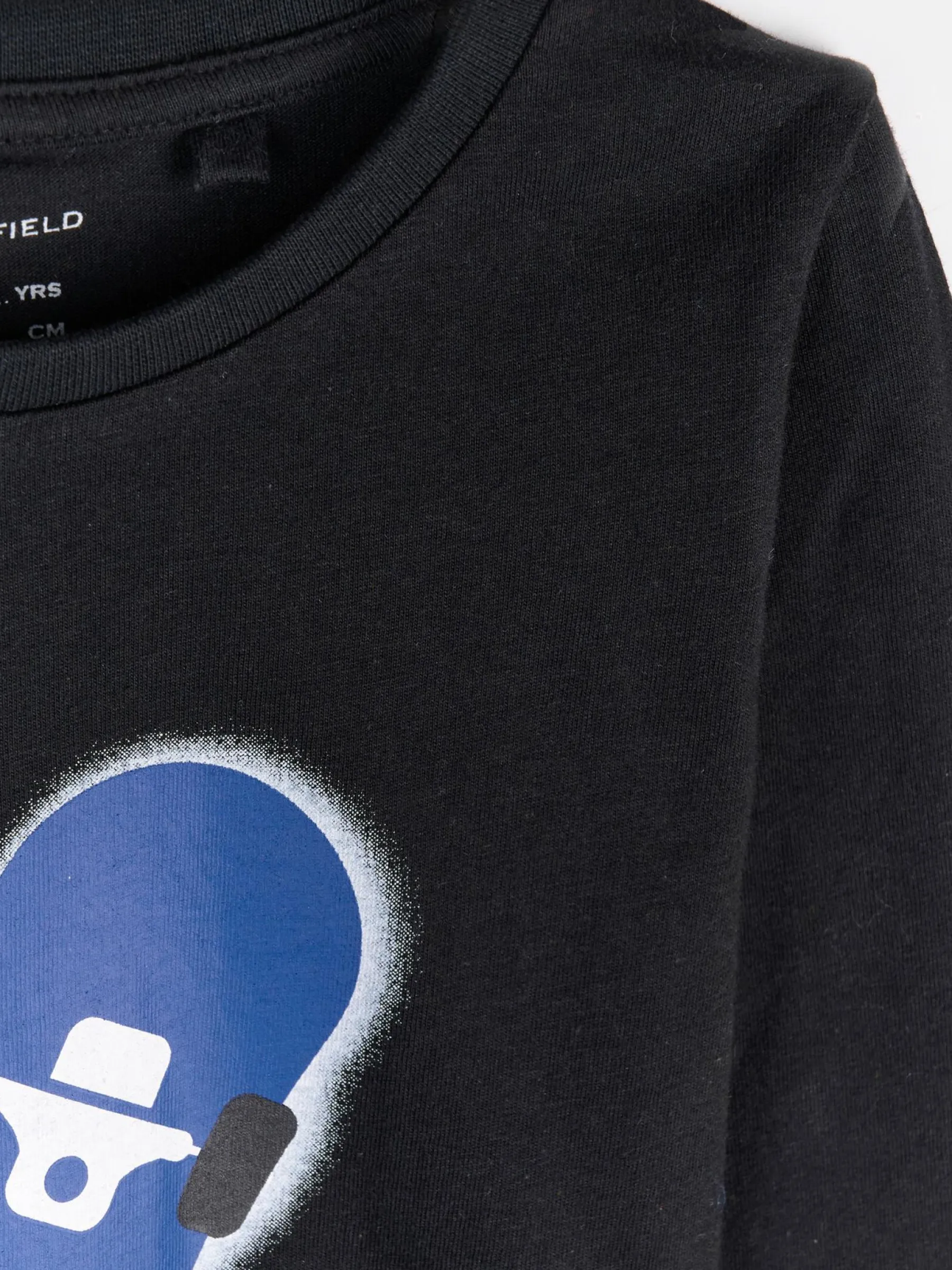 Kolor: czarnyKrój: regularTyp: koszulkaRekaw: długi rękawDługość: krótkiPattern style: graficzneMateriał: baweł…