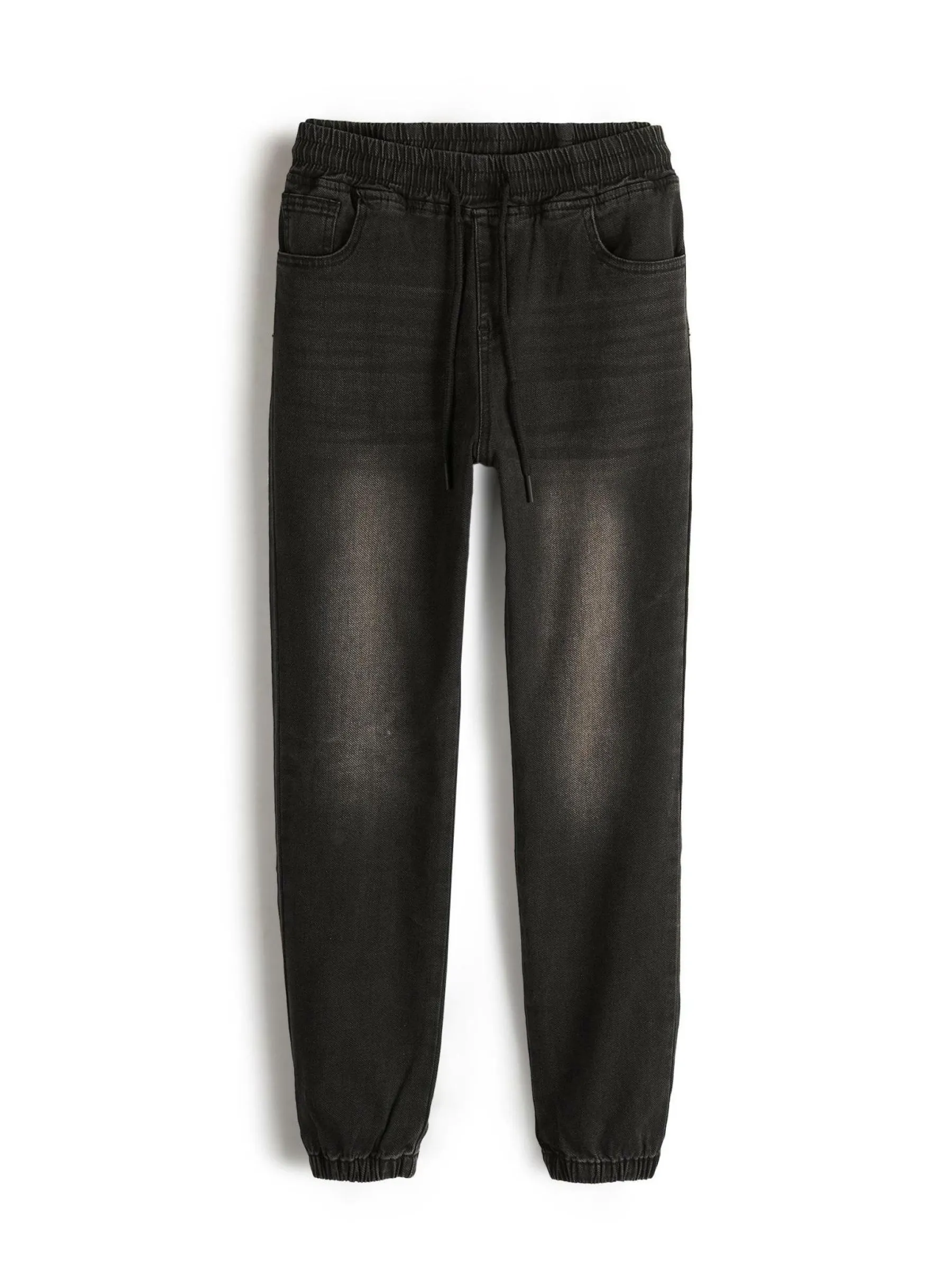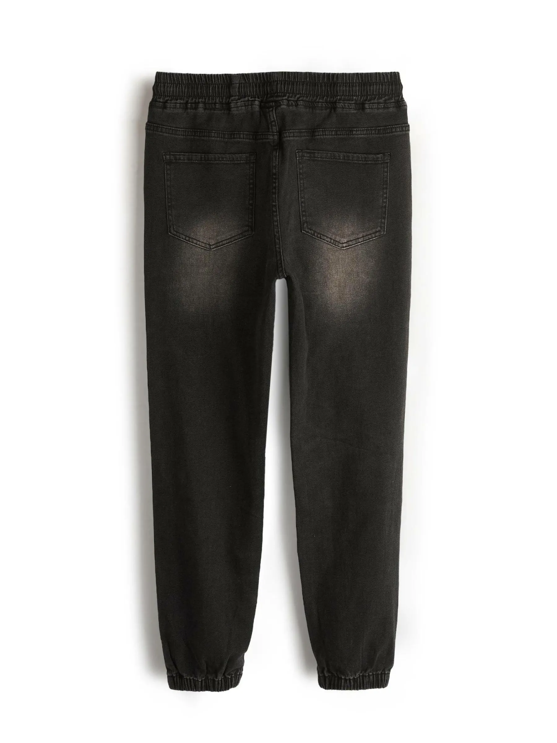 Kolor: czarnyKrój: joggerTyp: jeansDługość: dlugiePattern style: pojedynczy kolorDetal: ze sznurowaniem, z kieszenia…