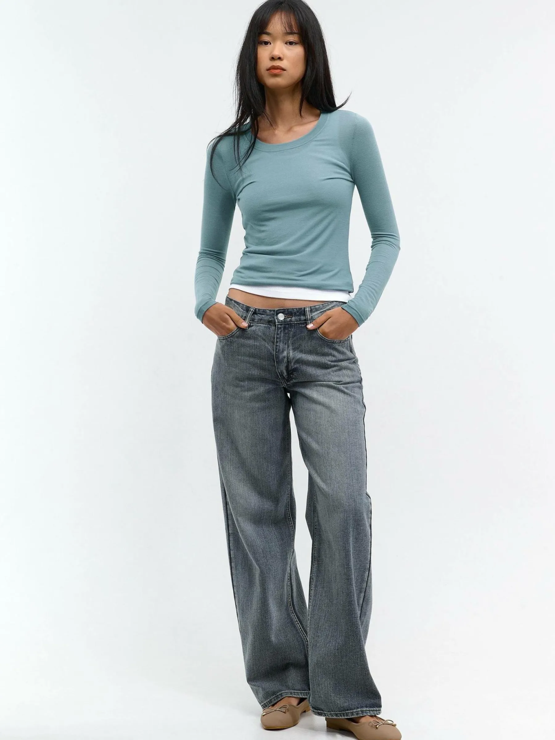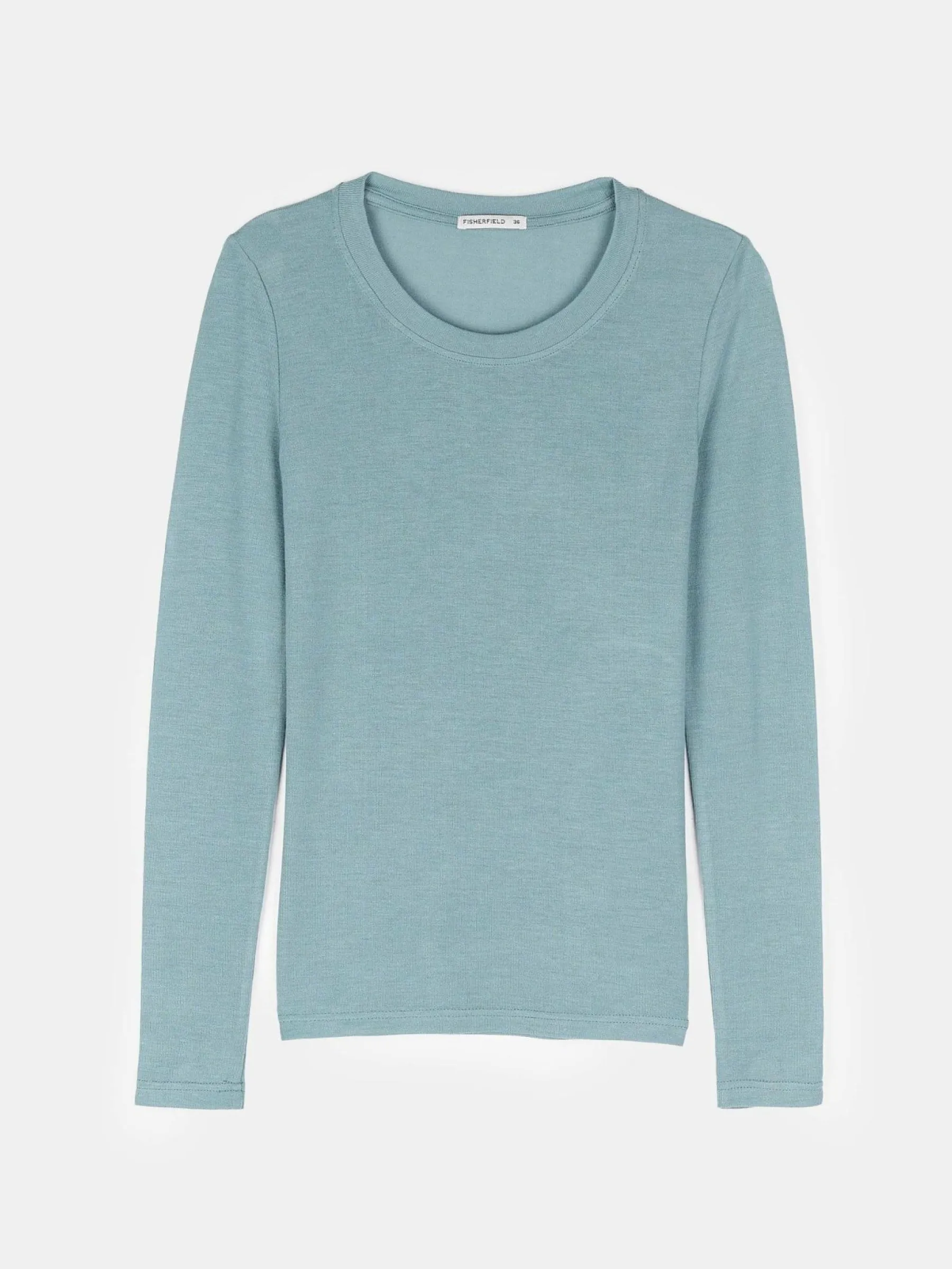 Kolor: niebieskiKrój: regularTyp: topRekaw: długi rękawDługość: krótkiPattern style: pojedynczy kolorDetal: nad g…