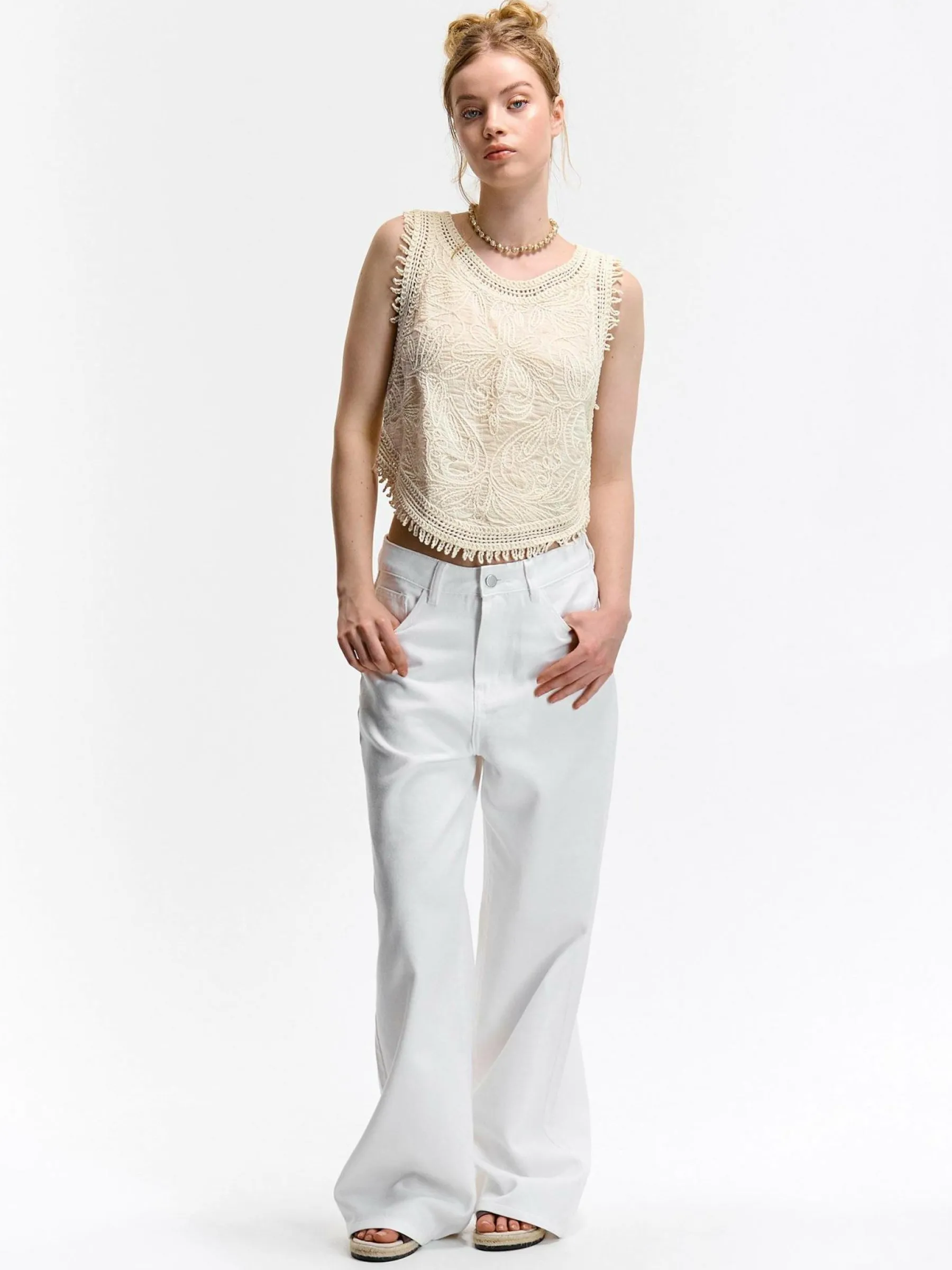 Kolor: beżowyKrój: regularTyp: topRekaw: bez rękawówDługość: krótki topPattern style: pojedynczy kolor, struktur…