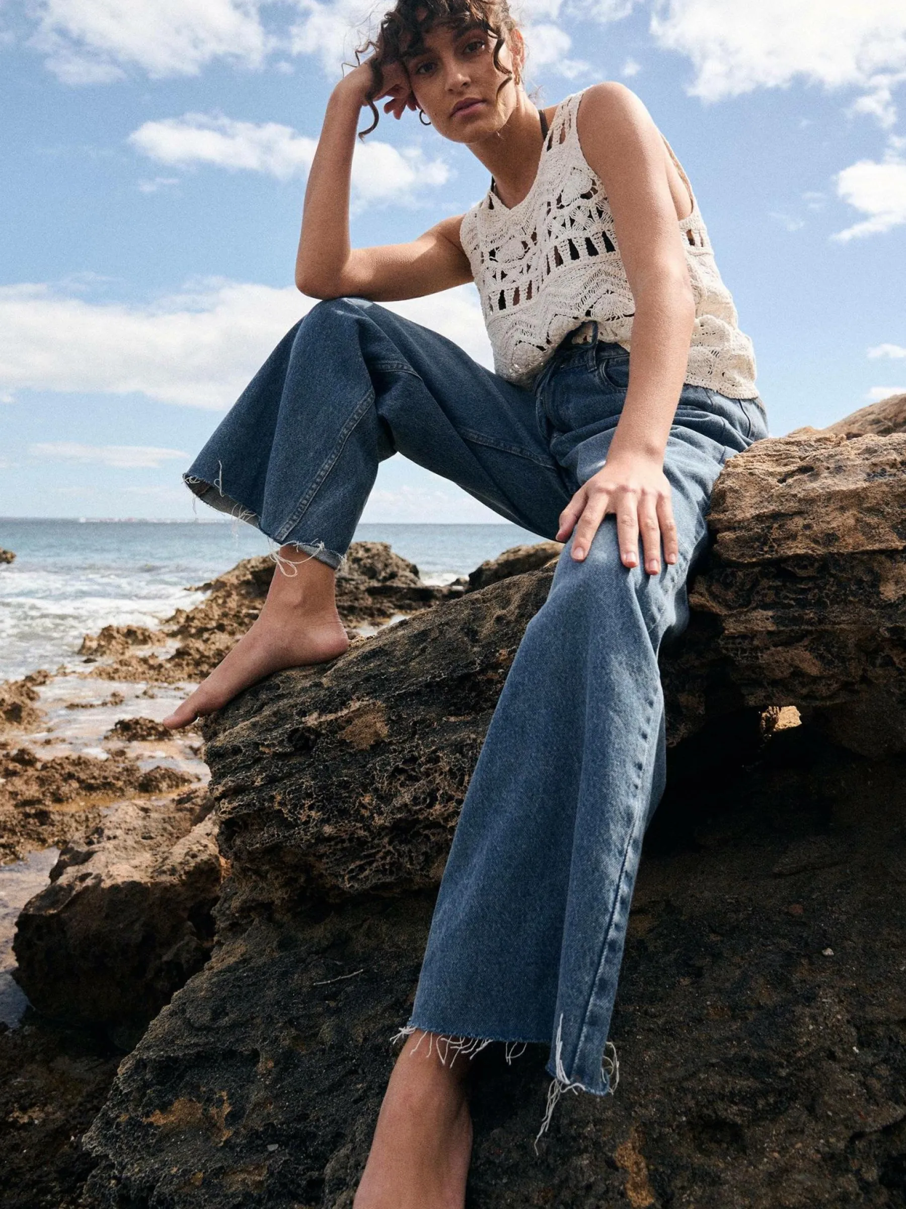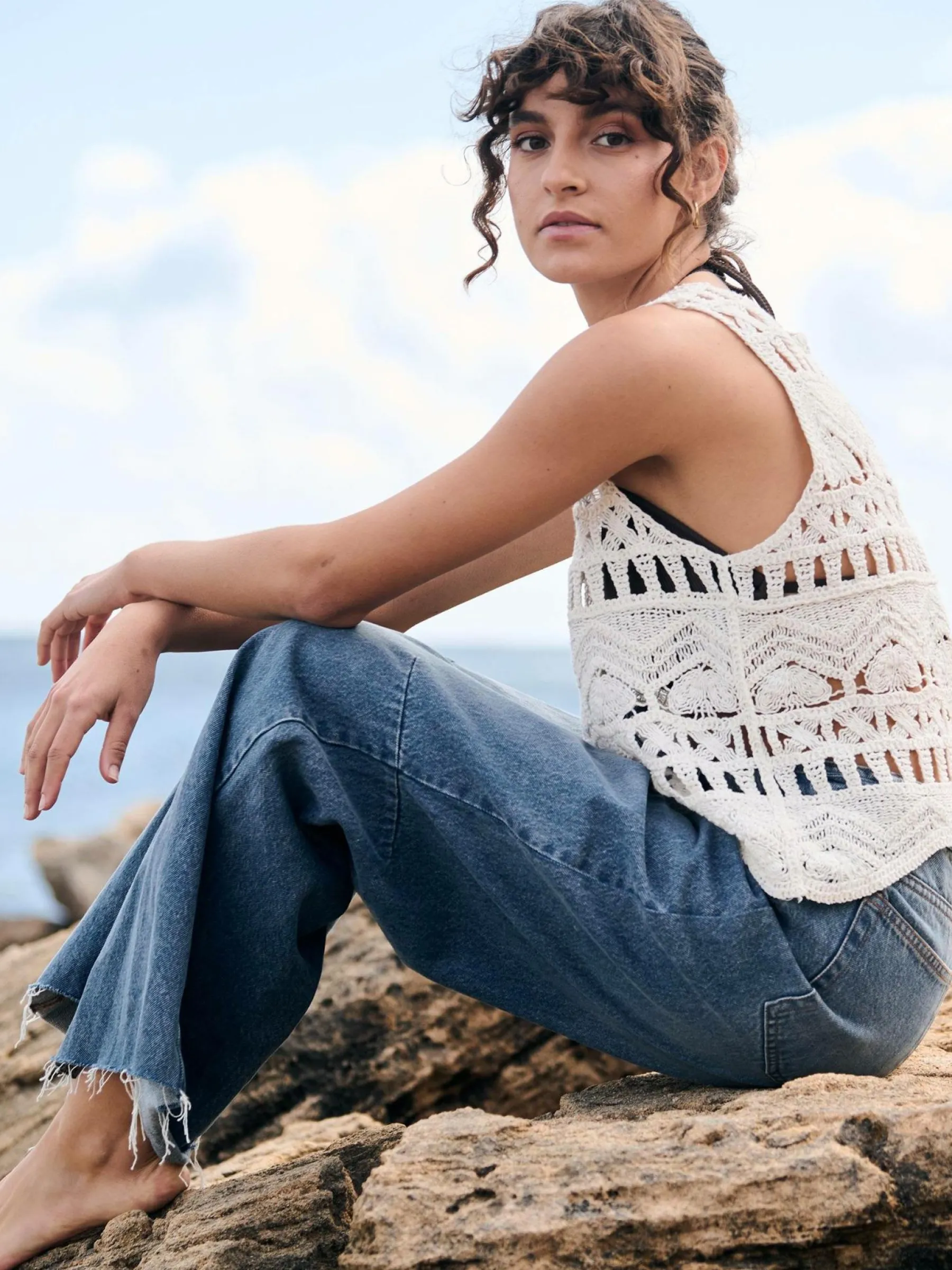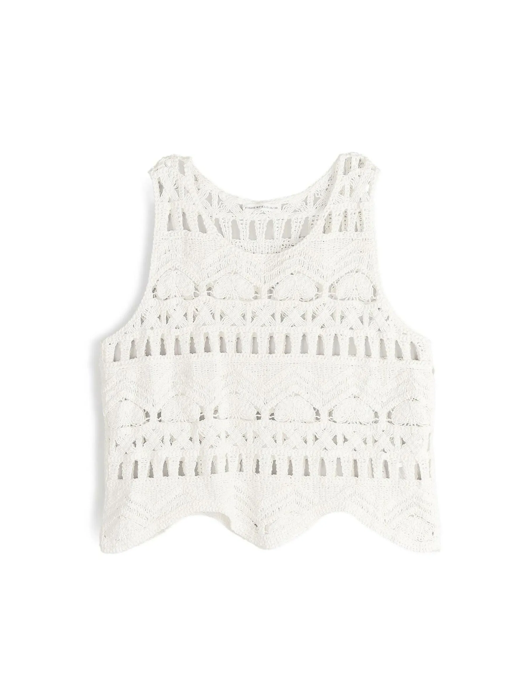 Kolor: białyKrój: regularTyp: topRekaw: bez rękawówDługość: krótki topPattern style: szydełkowaneDetal: nad gł…