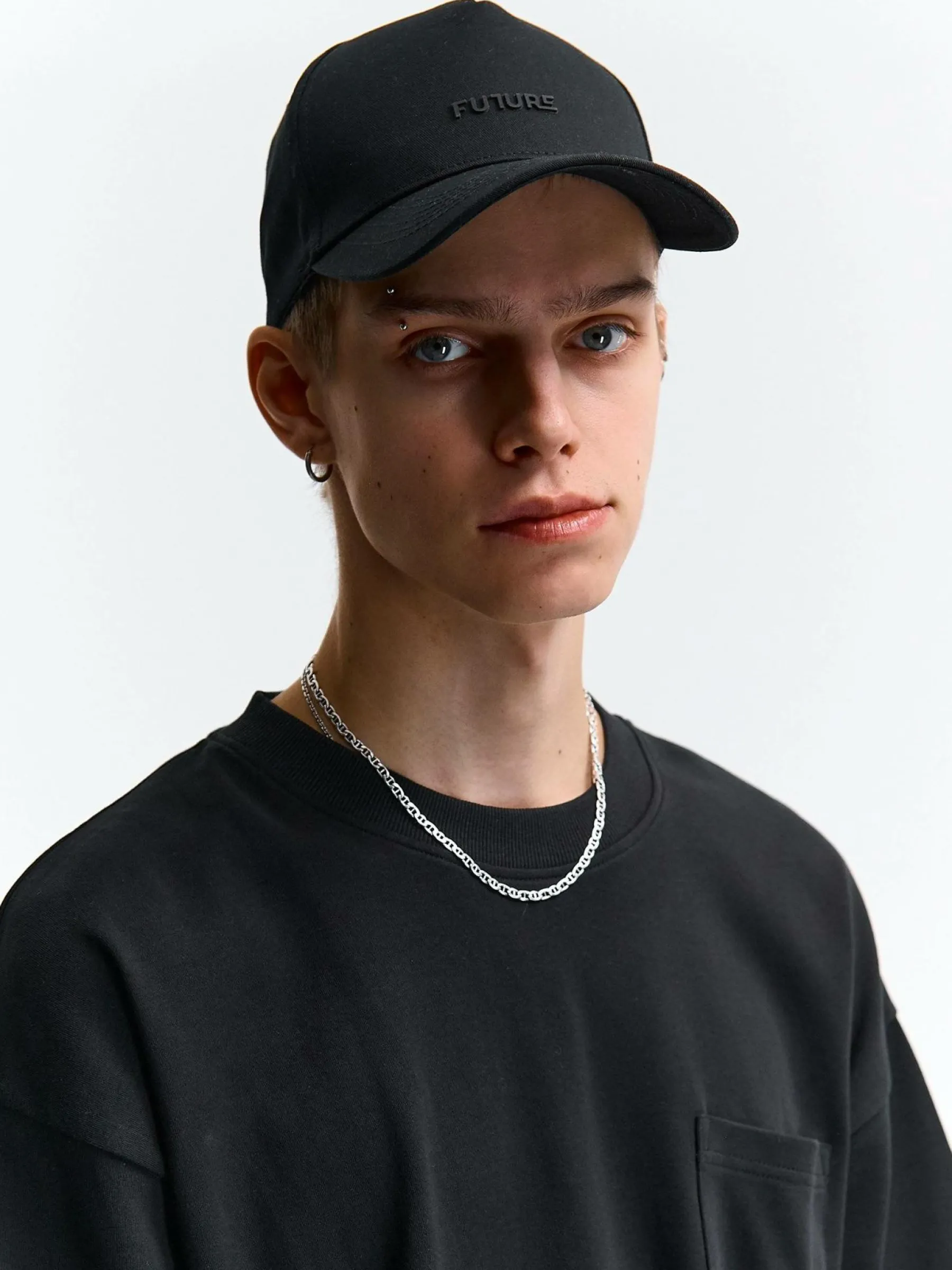 Kolor: czarnyKrój: baseballoweTyp: czapkaPattern style: pojedynczy kolorDetal: ze znakiemMateriał: bawełnaPłeć: mę…