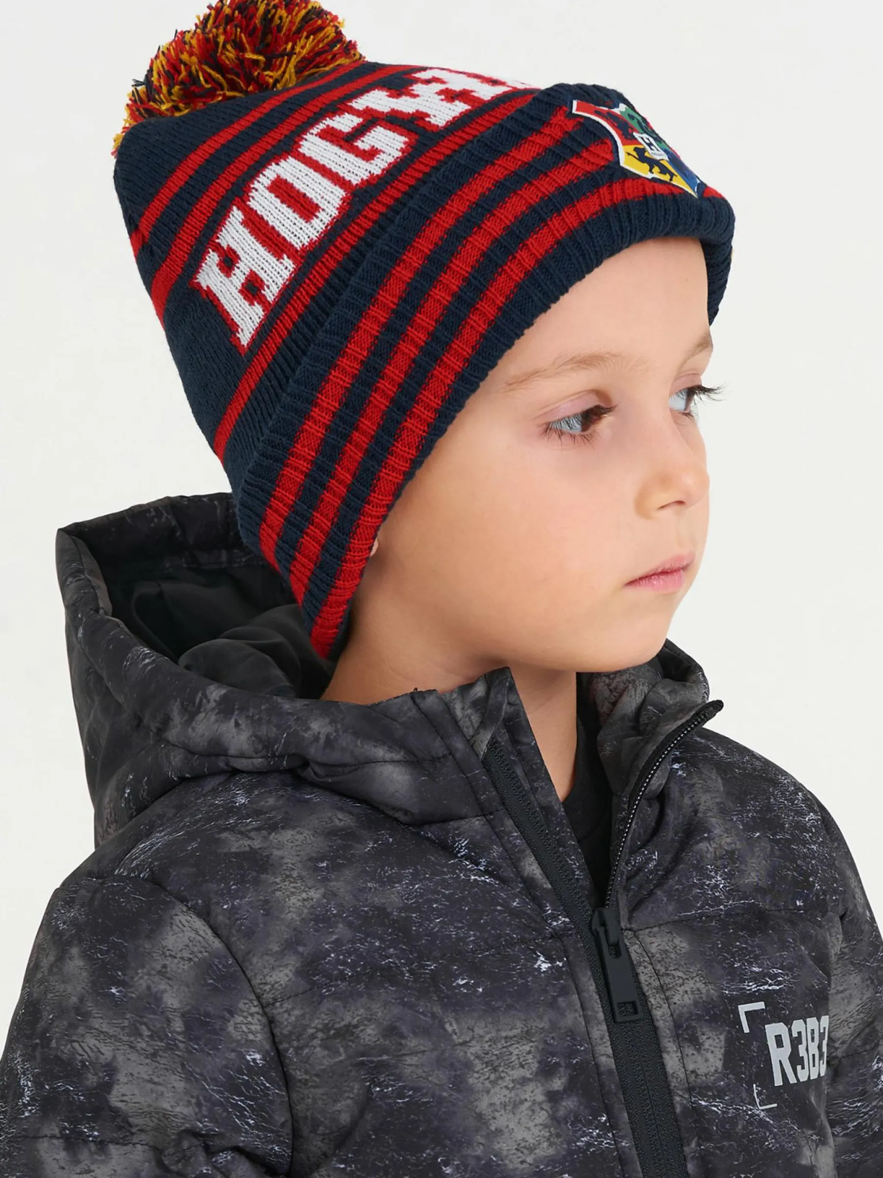 Kolor: granatowyKrój: podstawowyTyp: czapkaPattern style: z napisem, w prążkiDetal: z pomponem, z łatkąMateriał: s…