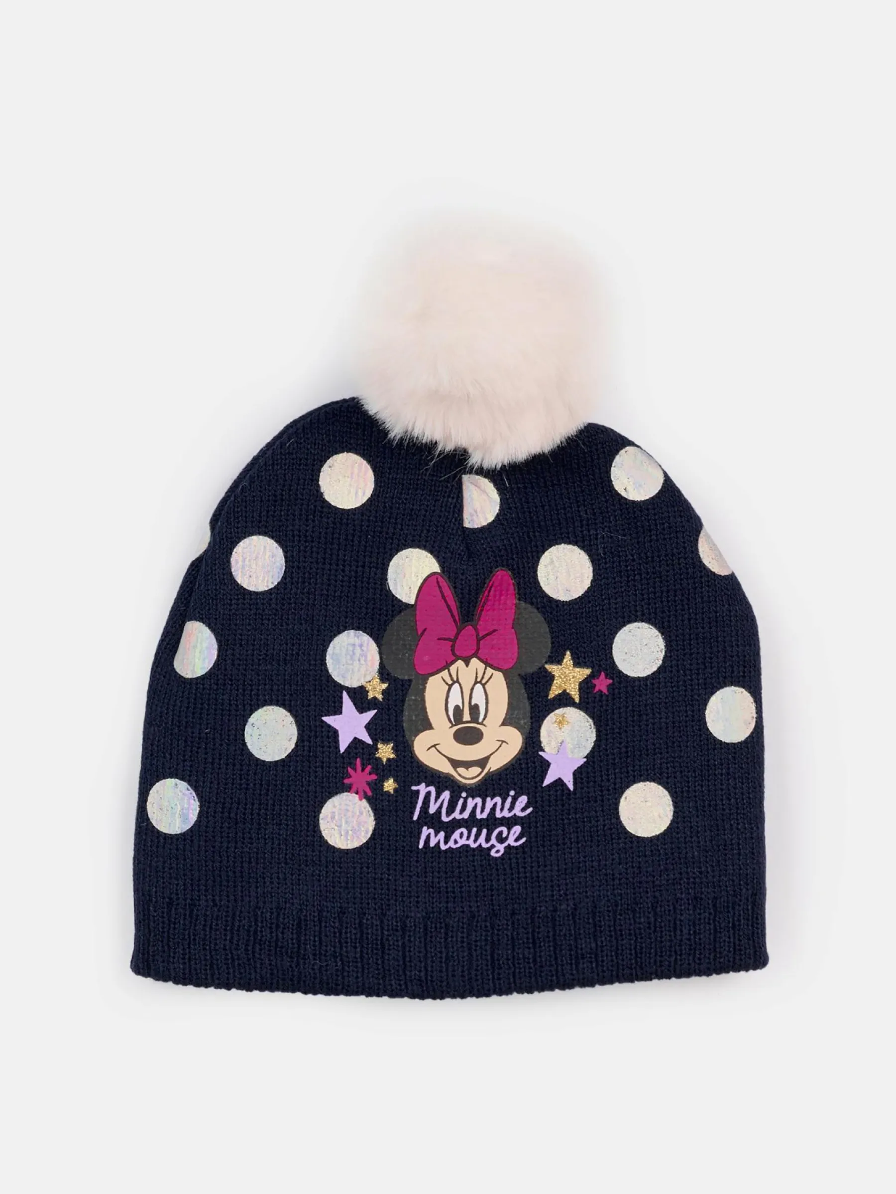 Kolor: granatowyKrój: podstawowyTyp: czapkaPattern style: z nadrukiemDetal: z pomponemMateriał: trykotowyPłeć: dziew…