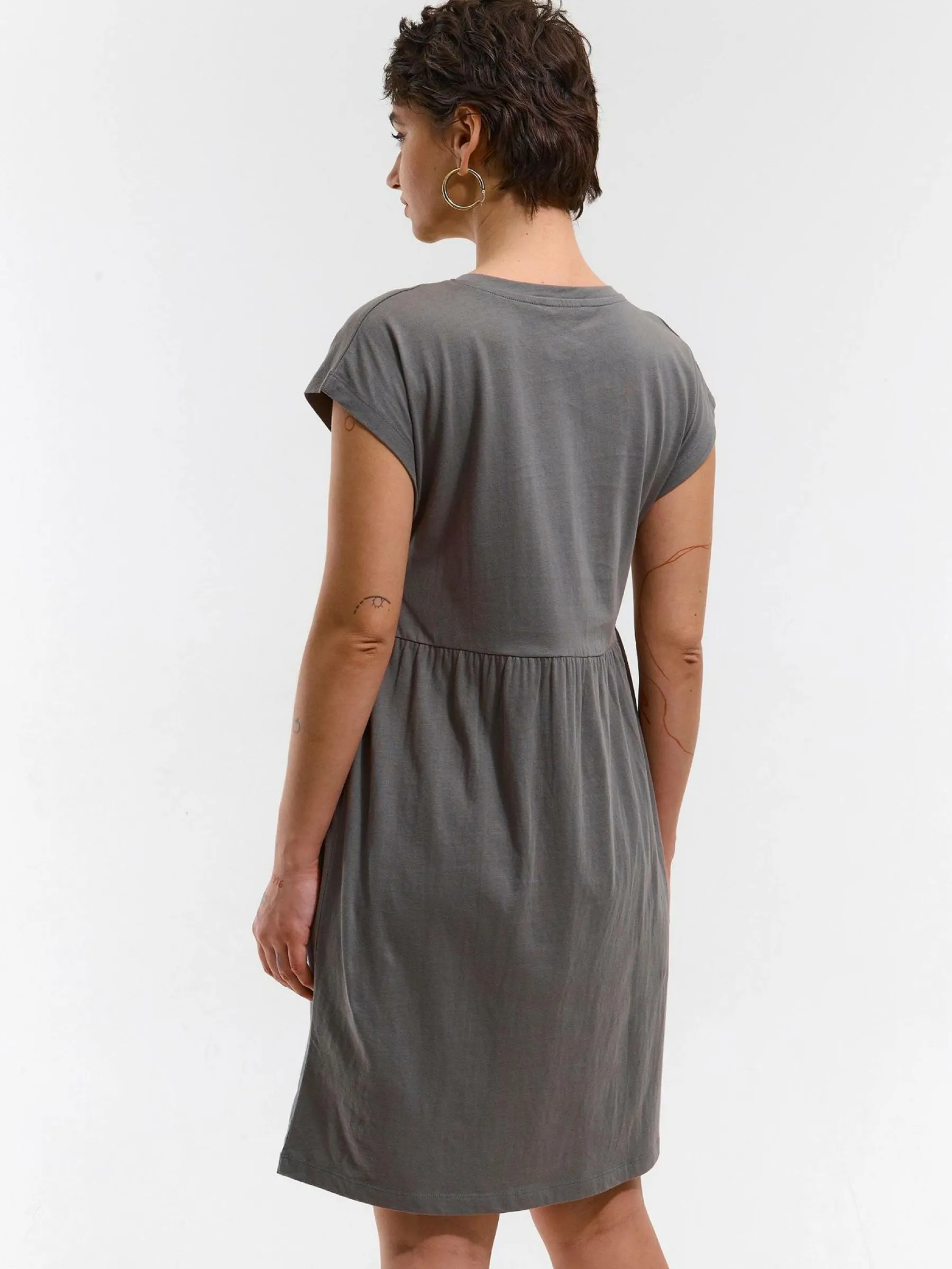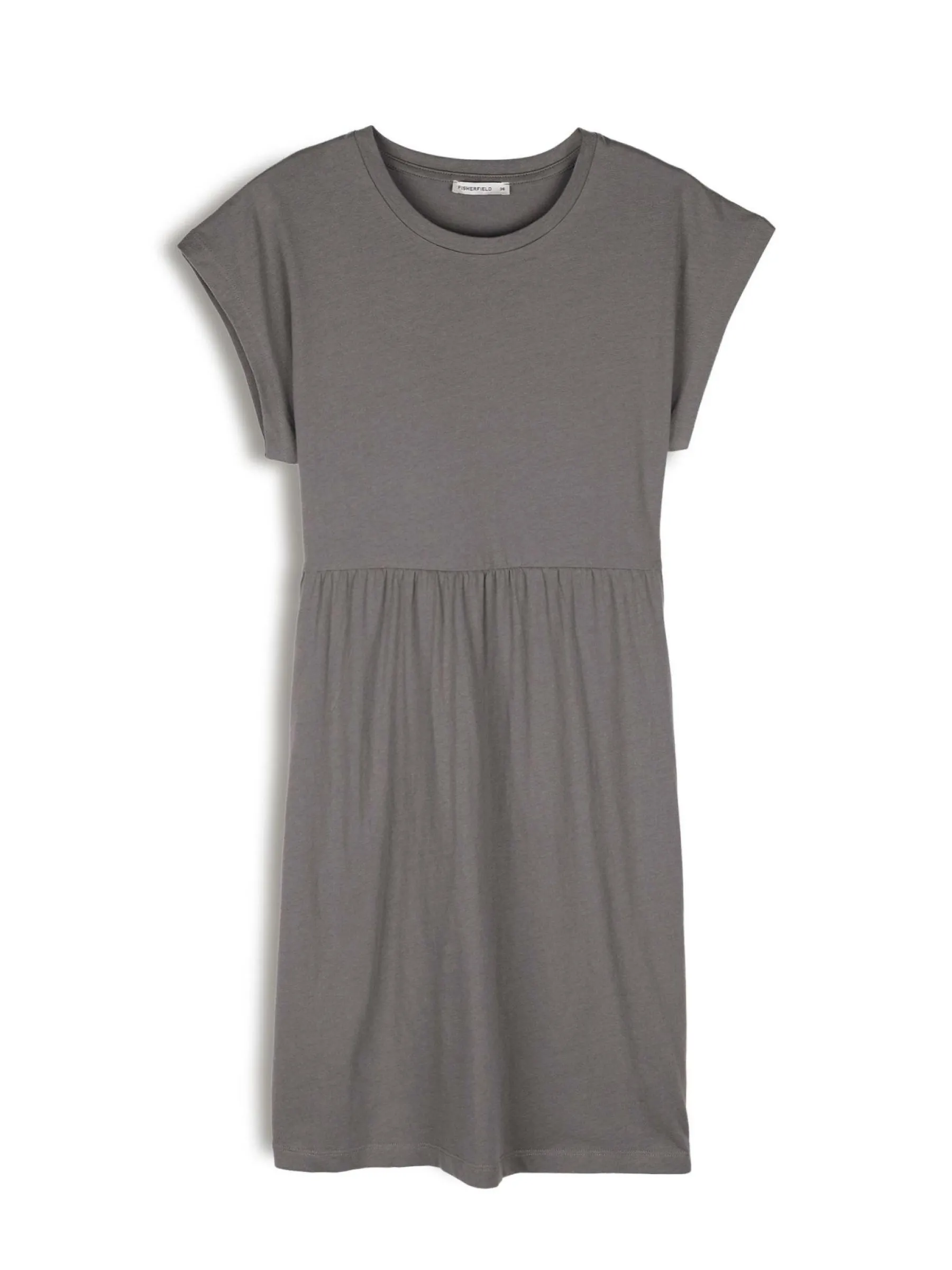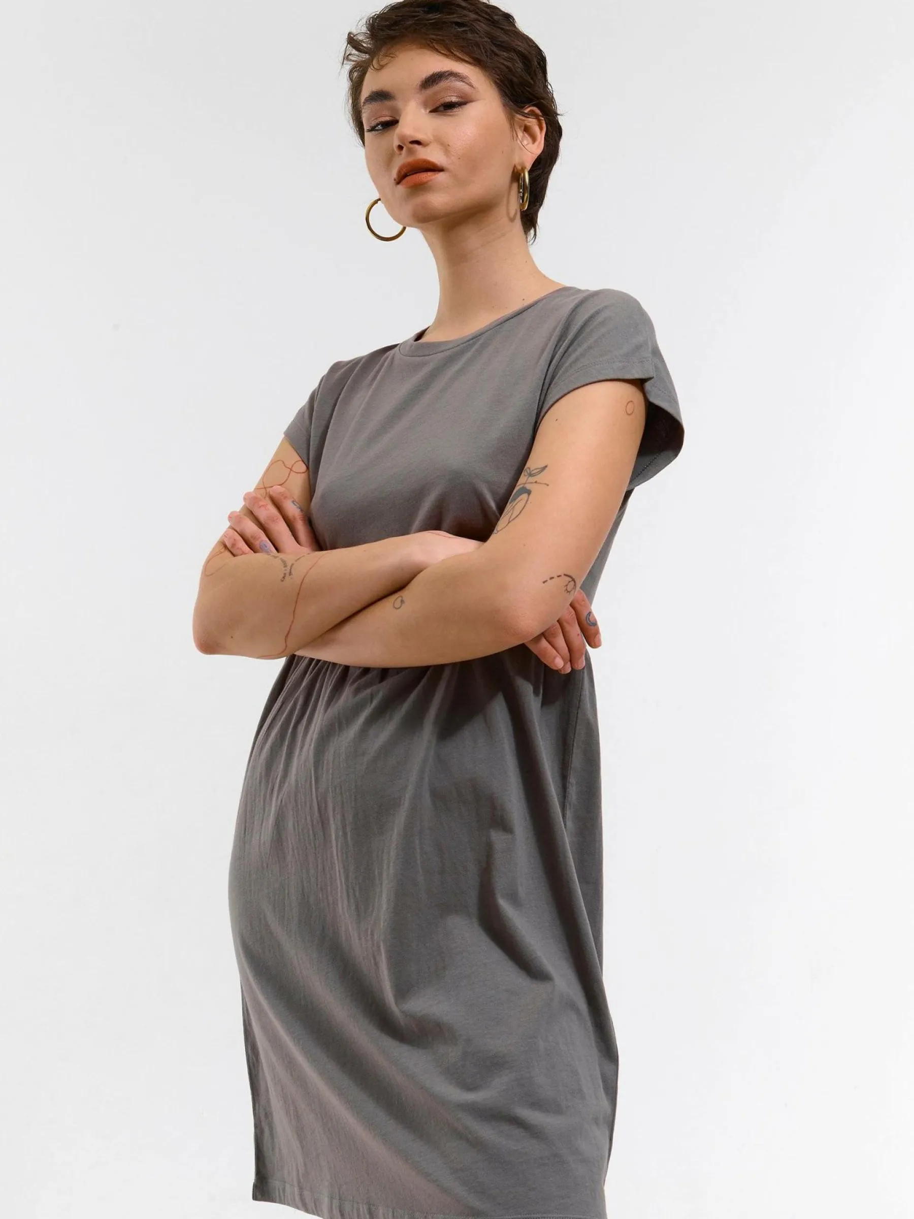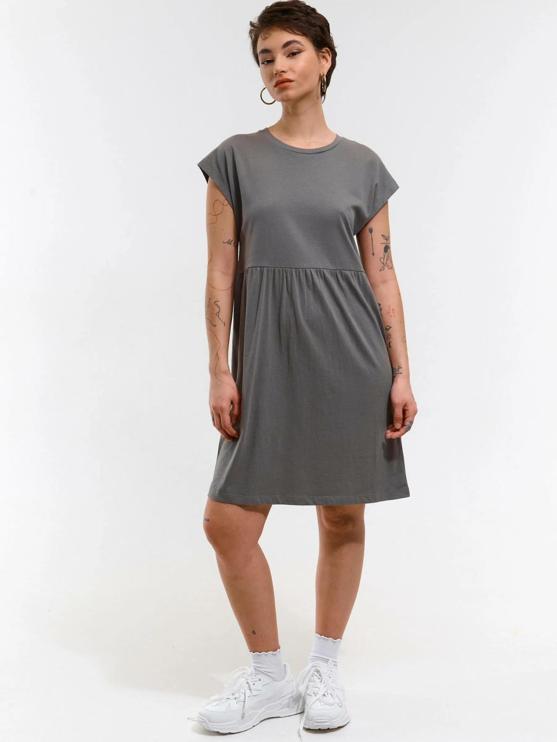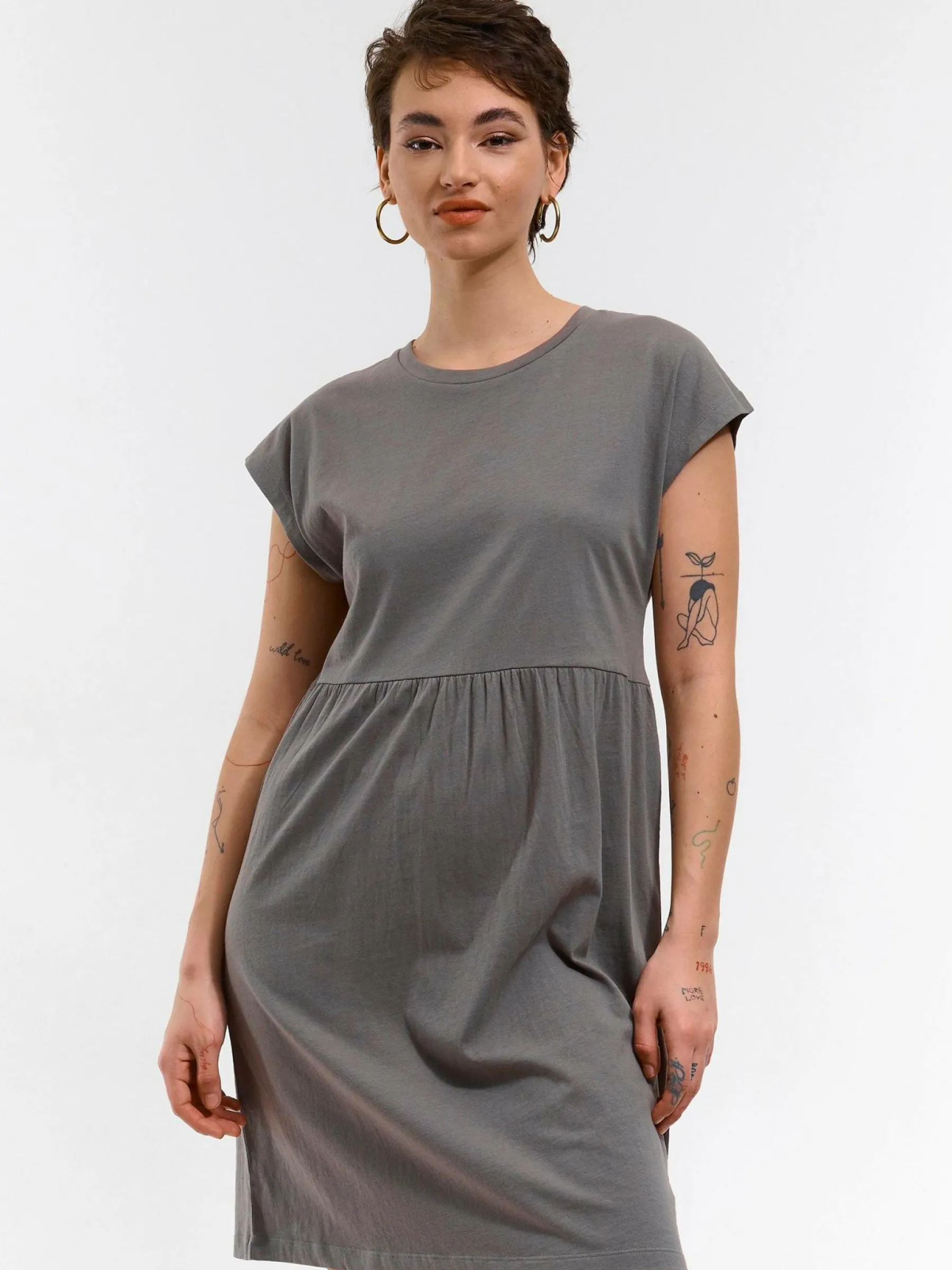 Kolor: szaryKrój: asyTyp: sukienkaRekaw: krótki rękawDługość: miniPattern style: pojedynczy kolorMateriał: baweł…