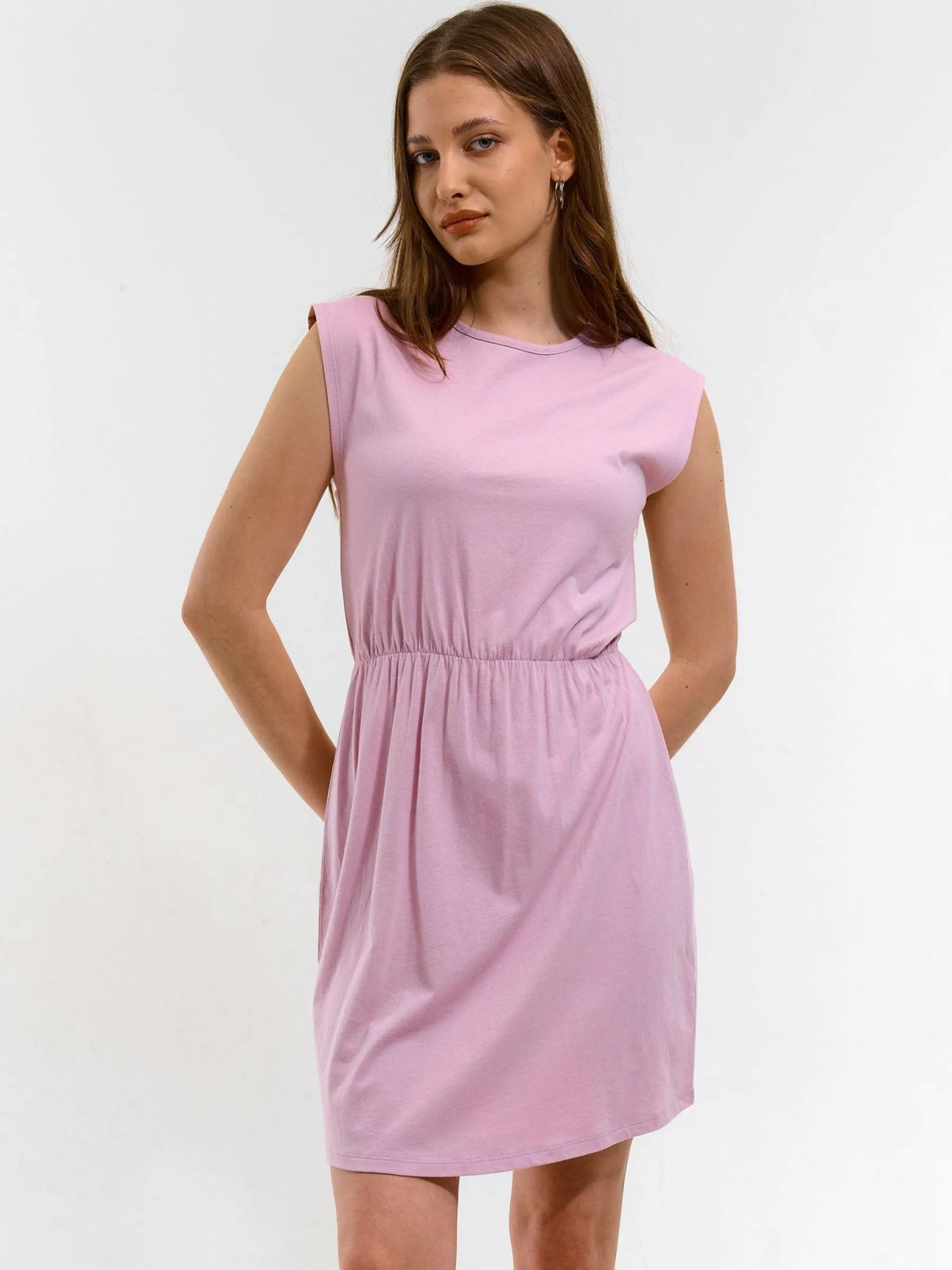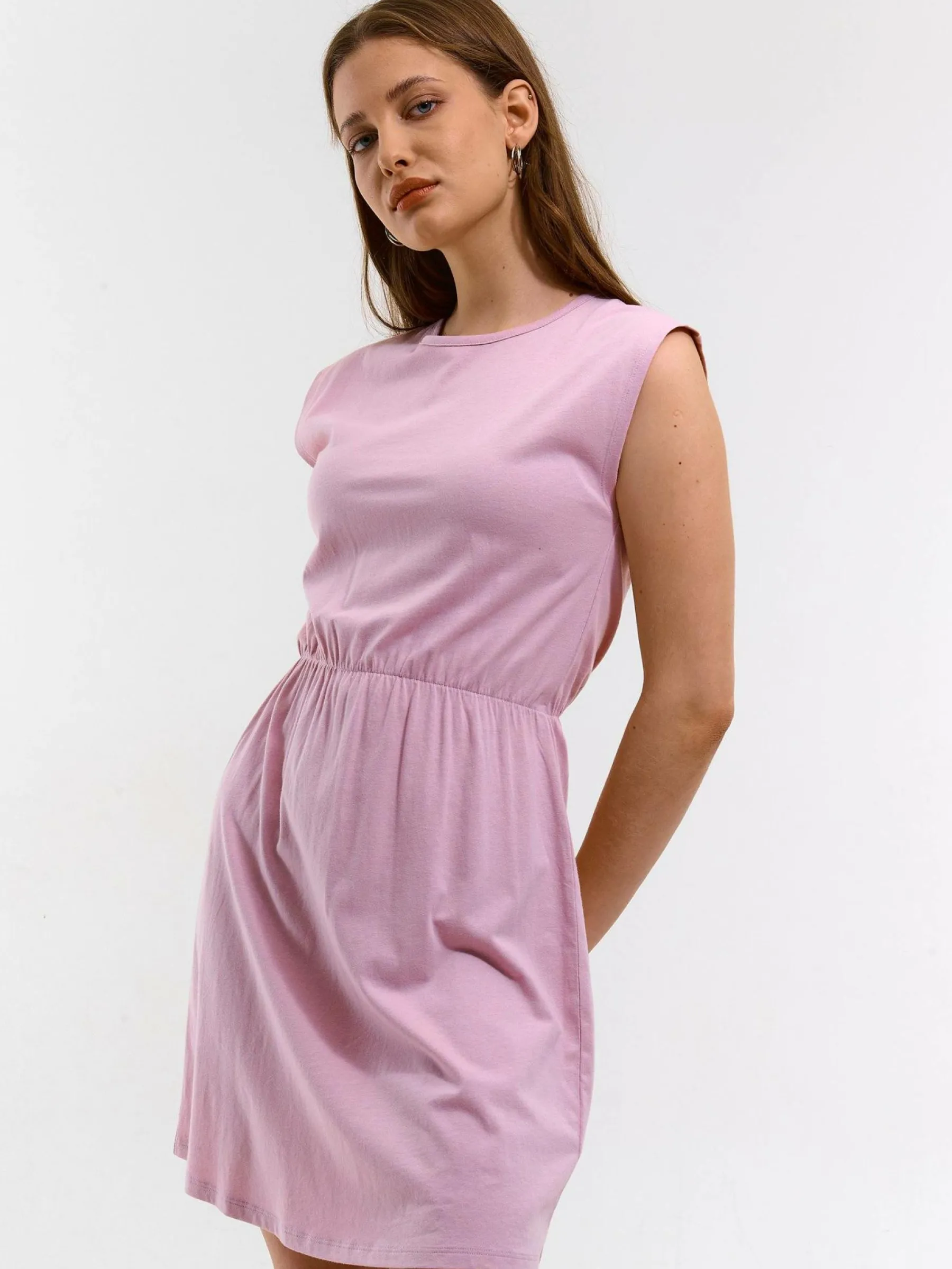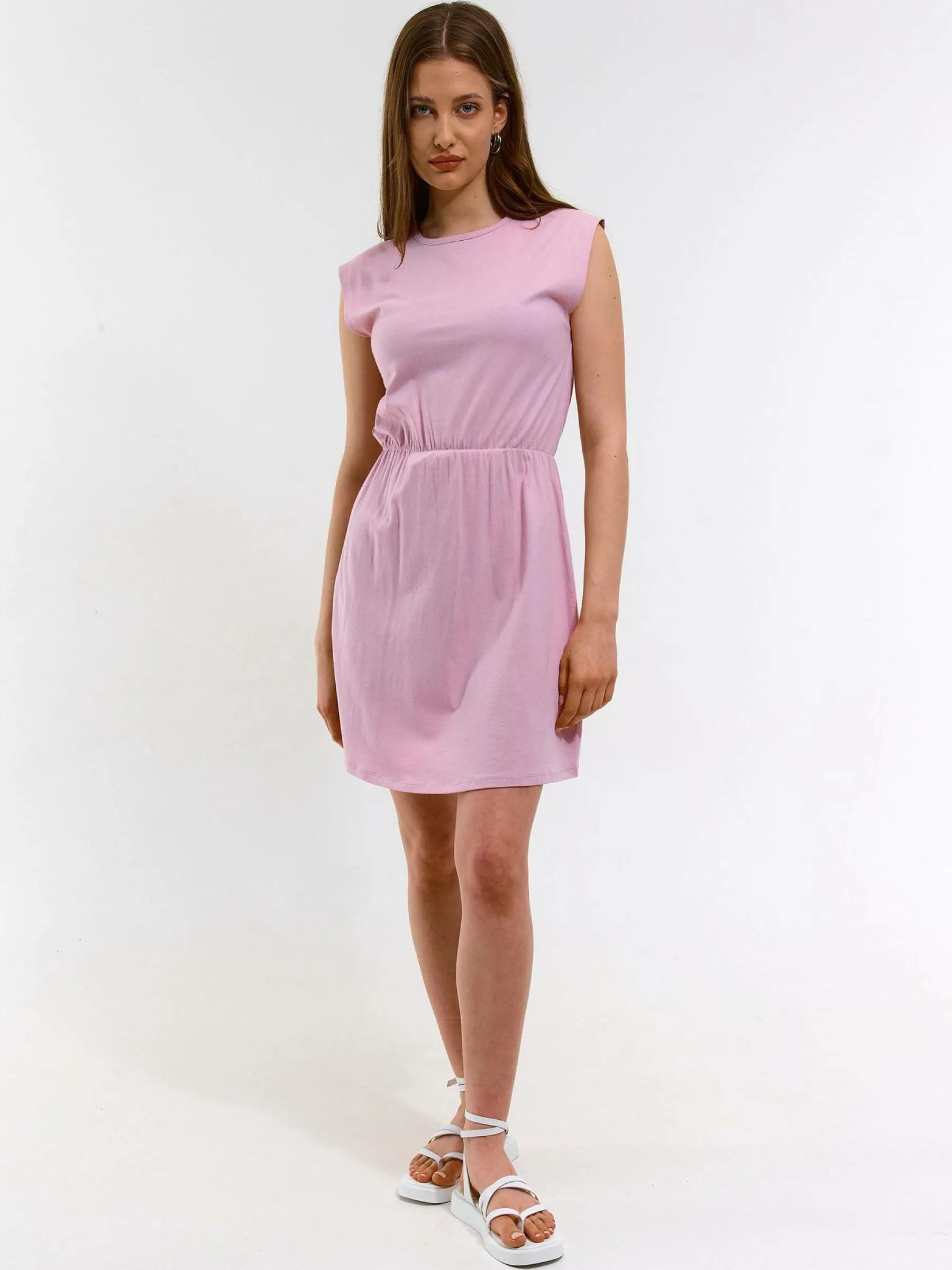 Kolor: różowyKrój: asyTyp: sukienkaRekaw: bez rękawówDługość: miniPattern style: pojedynczy kolorDetal: nad gło…