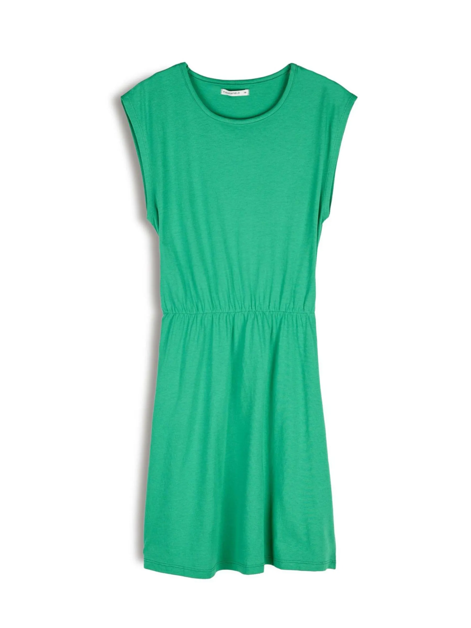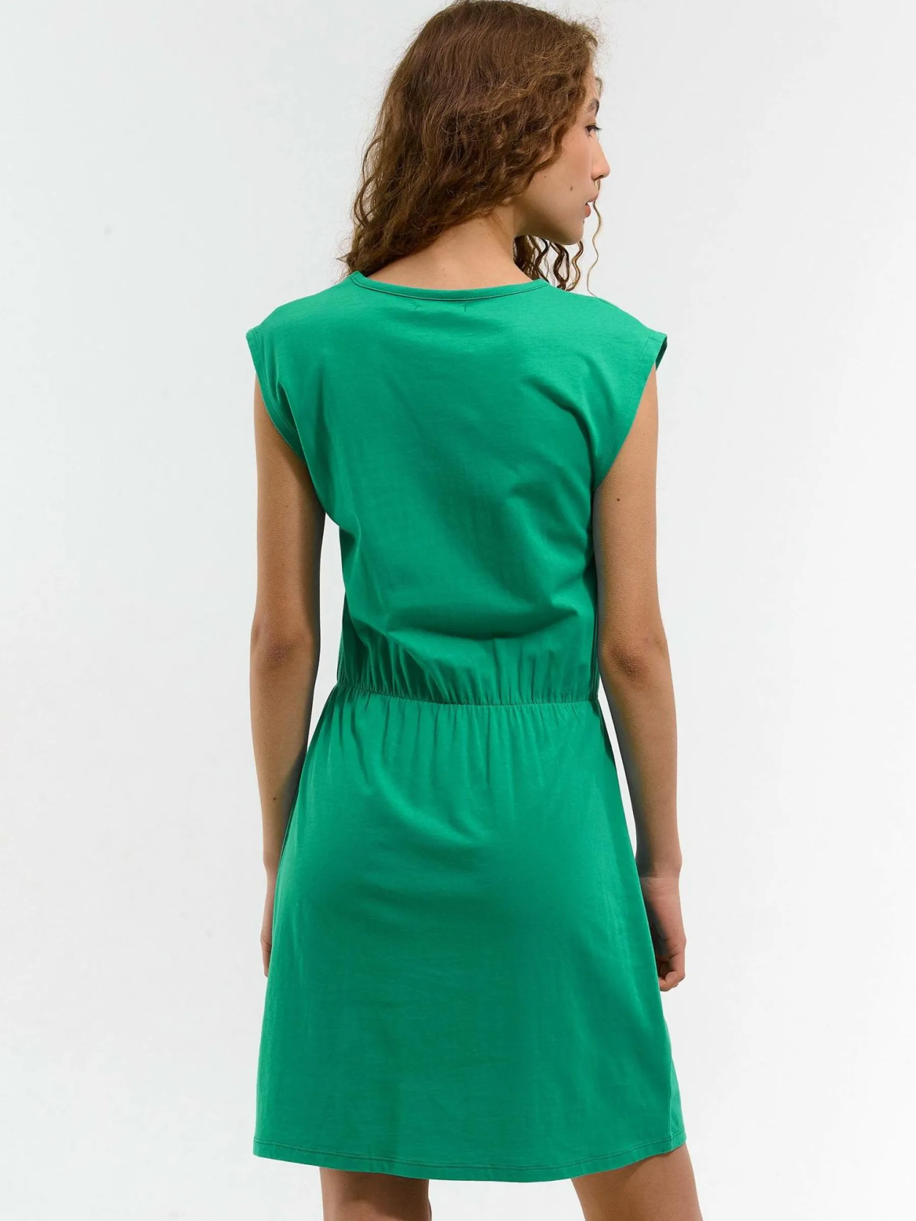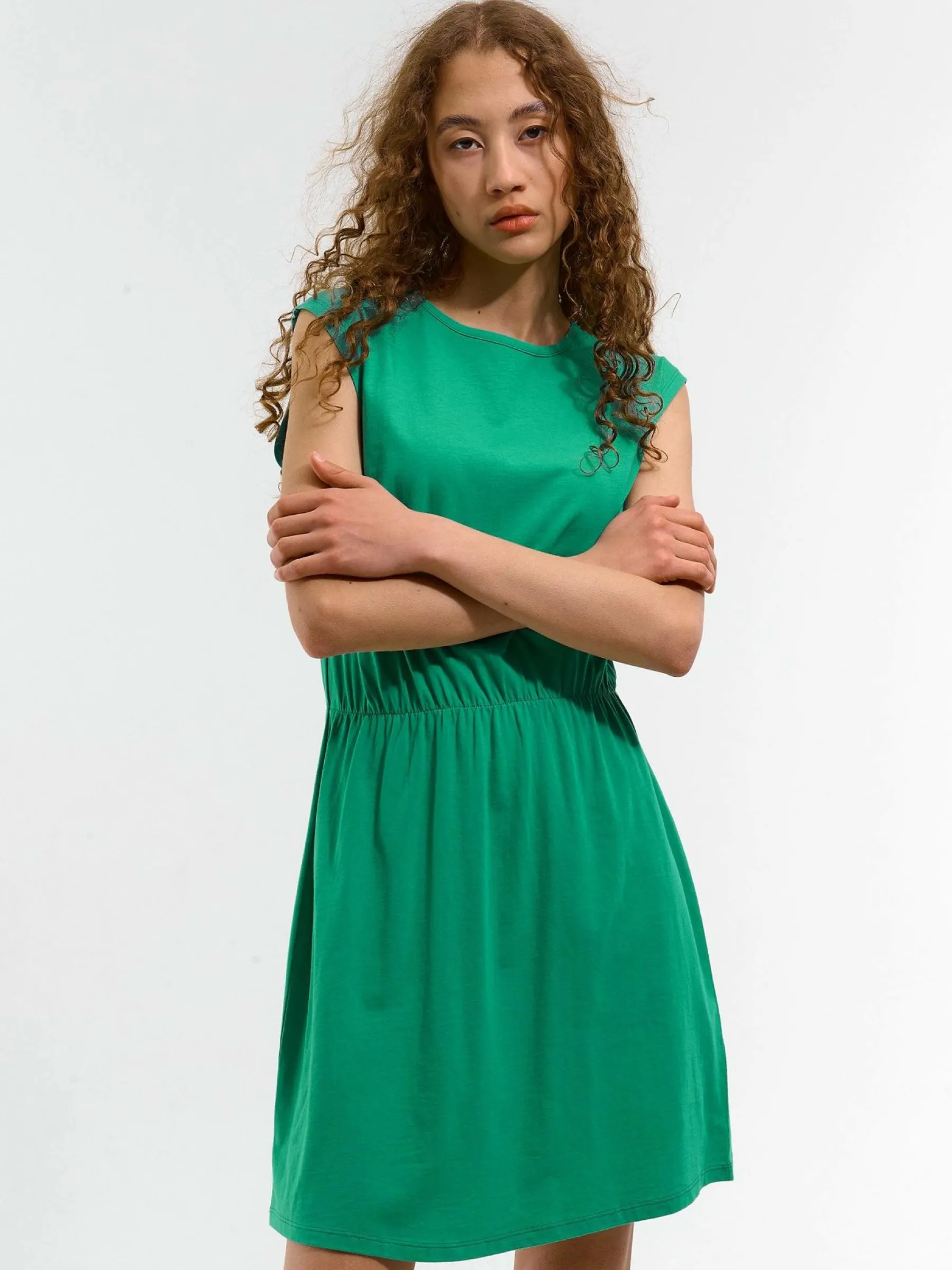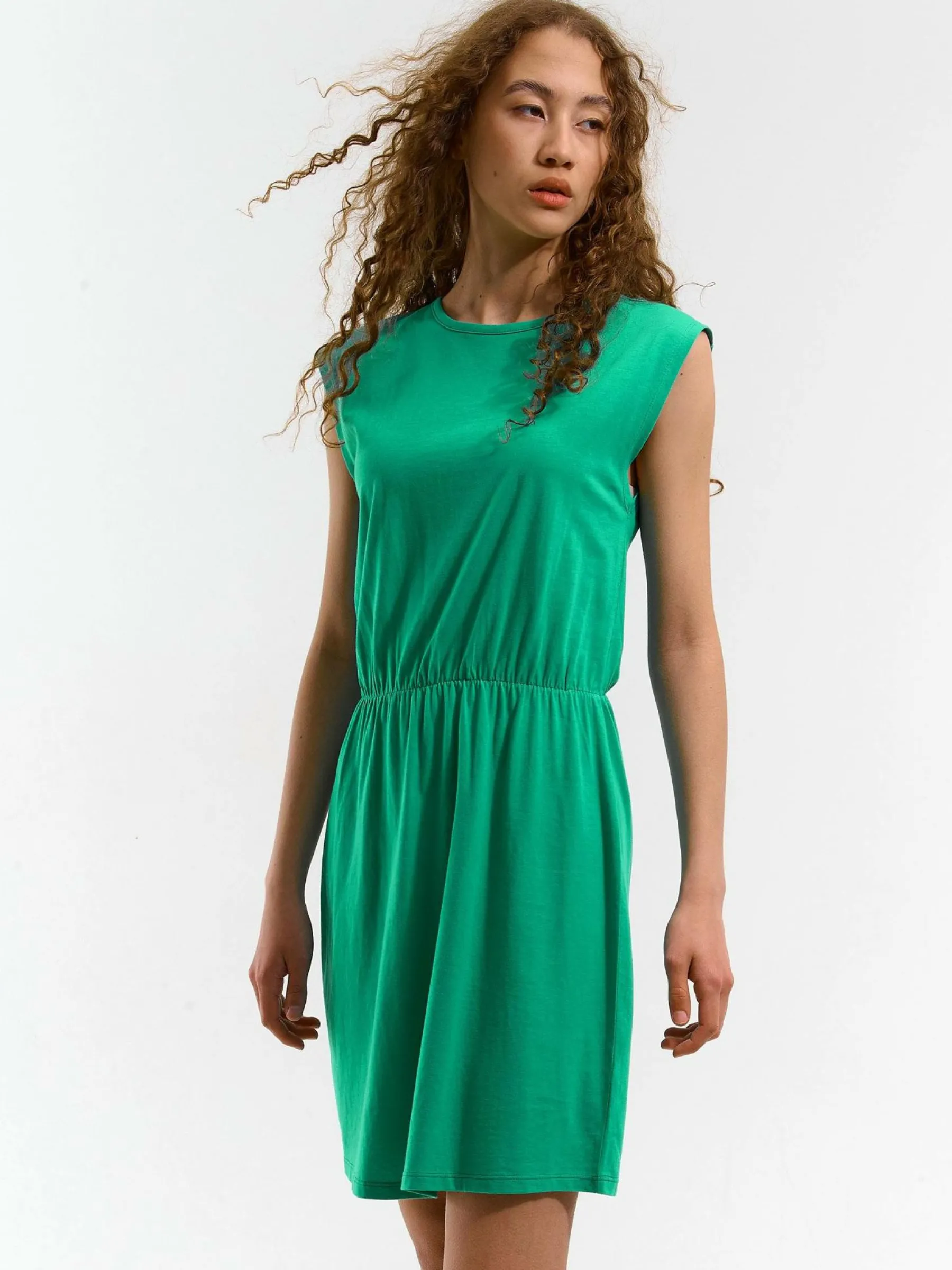Kolor: zielonyKrój: asyTyp: sukienkaRekaw: bez rękawówDługość: miniPattern style: pojedynczy kolorDetal: nad głow…