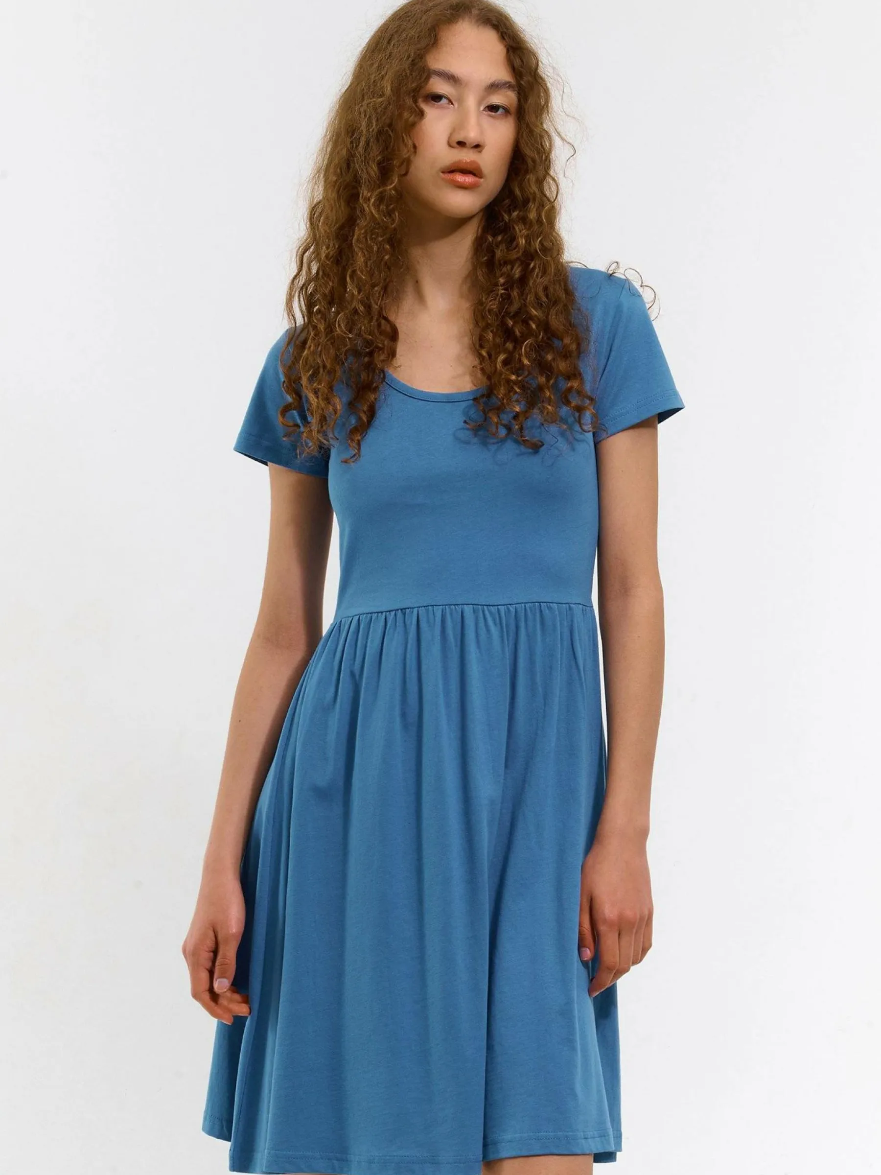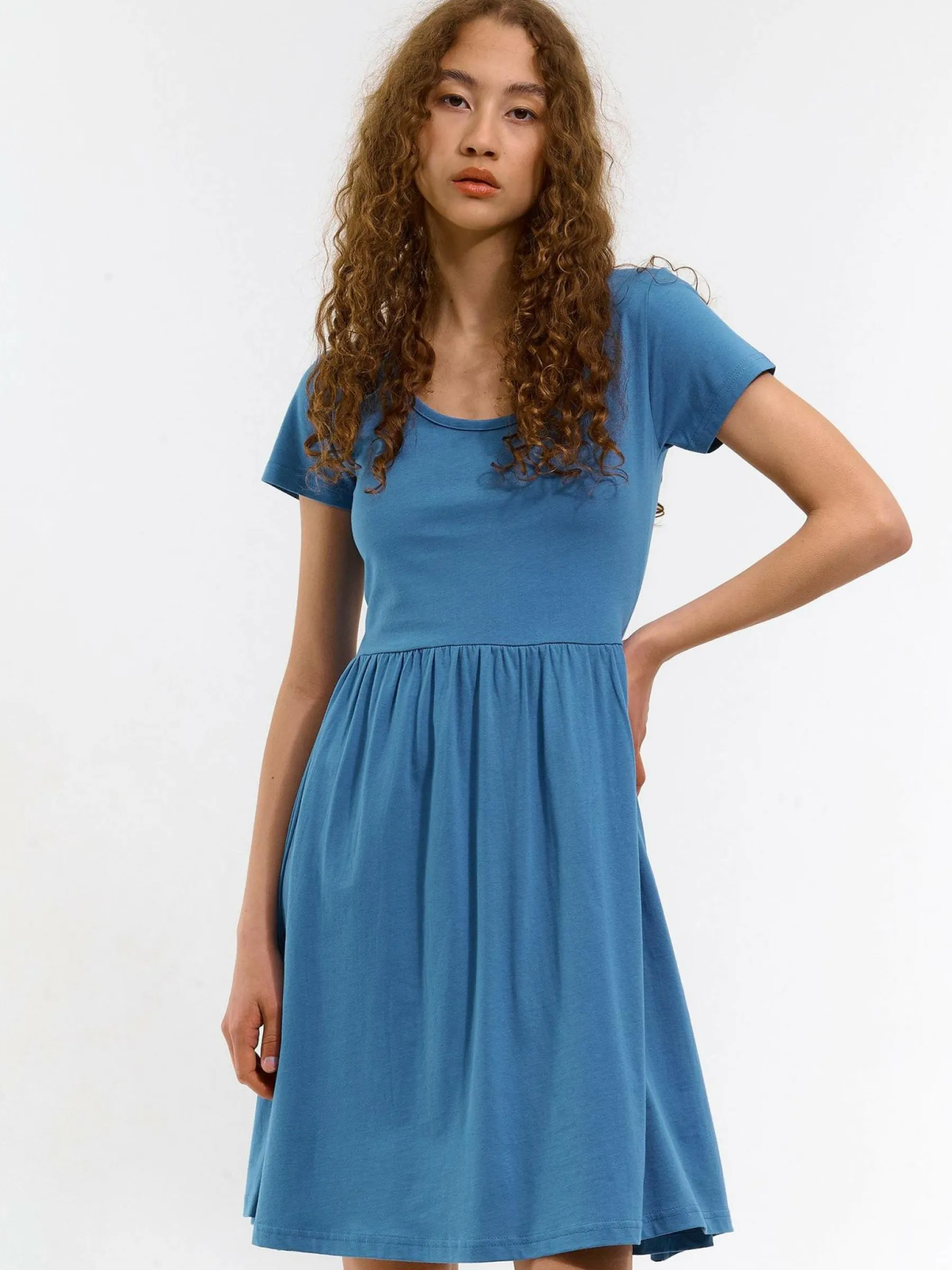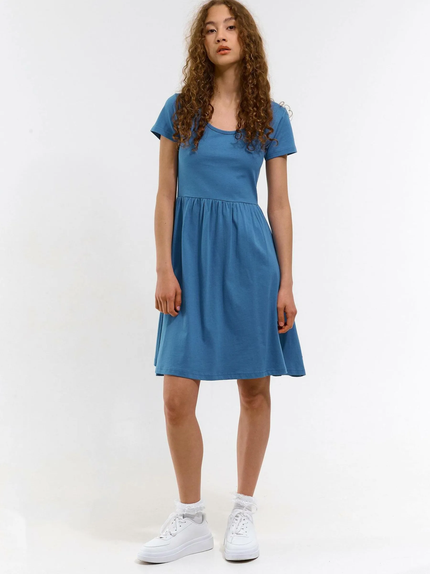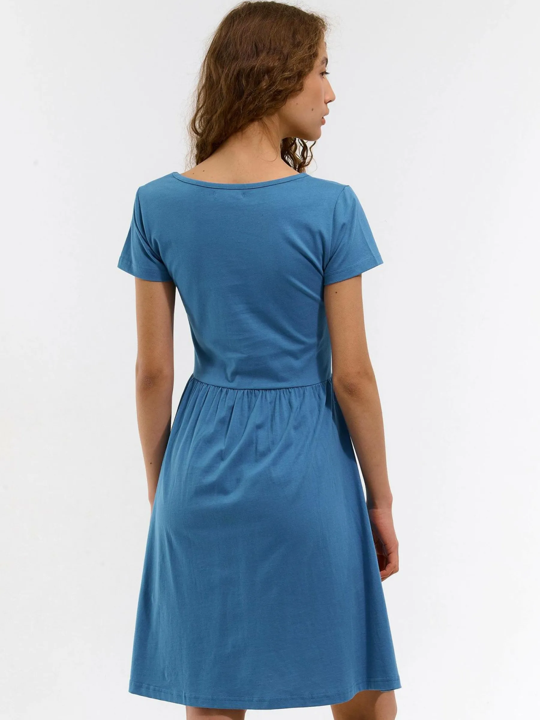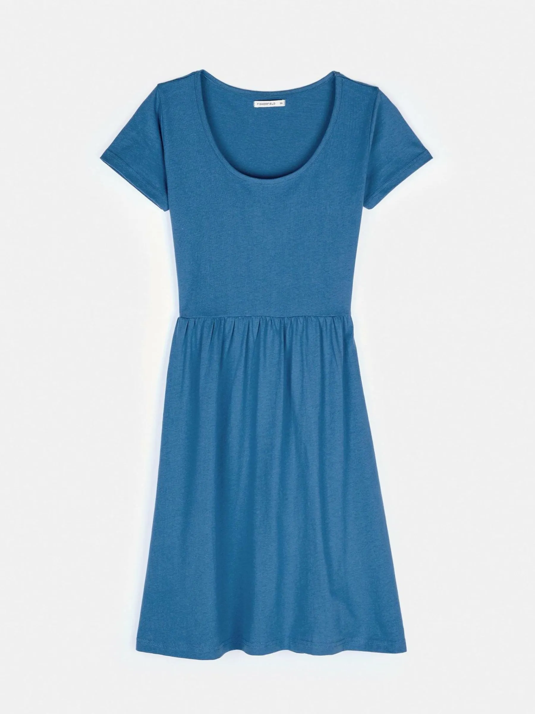 Kolor: niebieskiKrój: asyTyp: sukienkaRekaw: krótki rękawDługość: miniPattern style: pojedynczy kolorMateriał: ba…