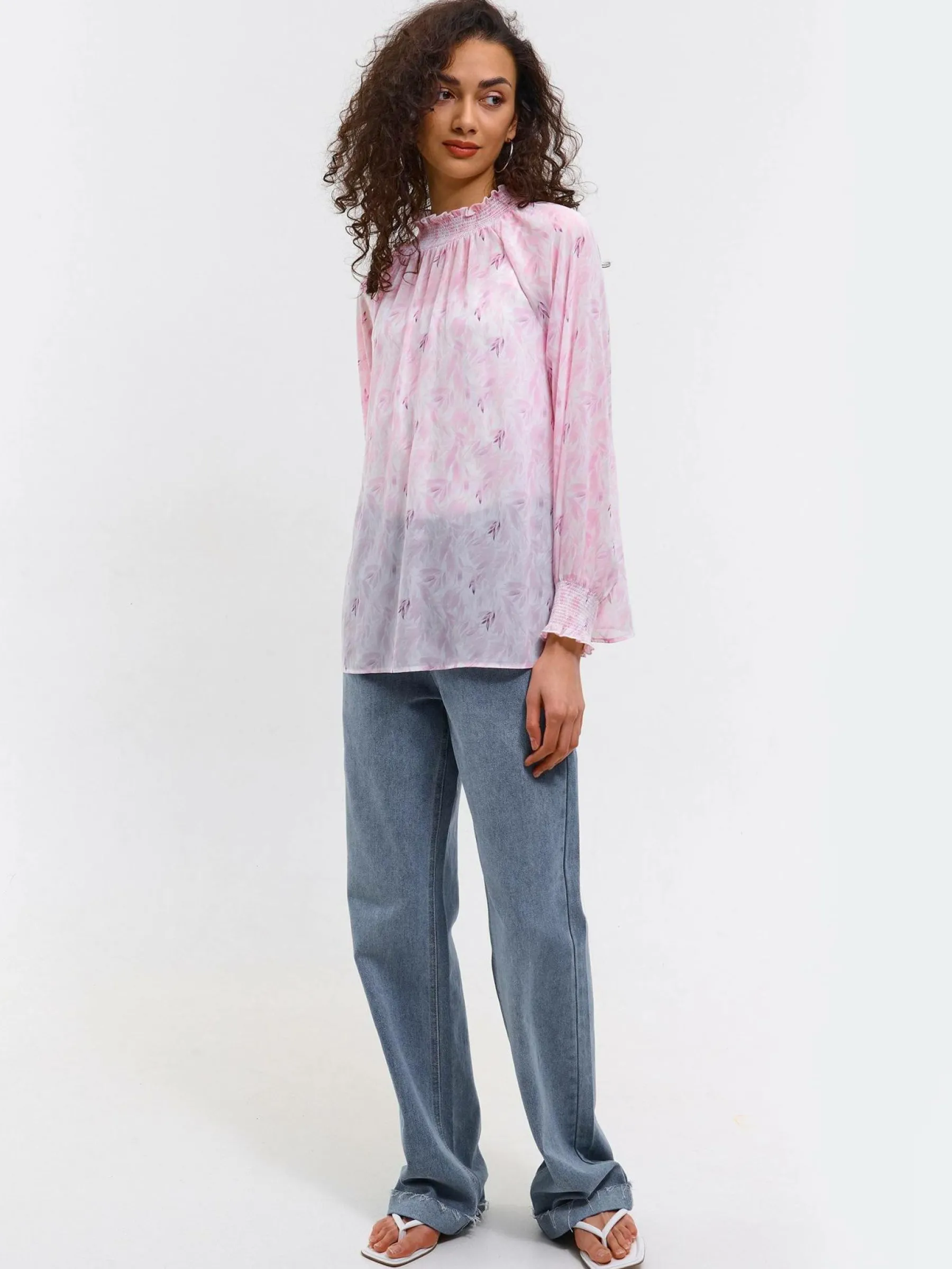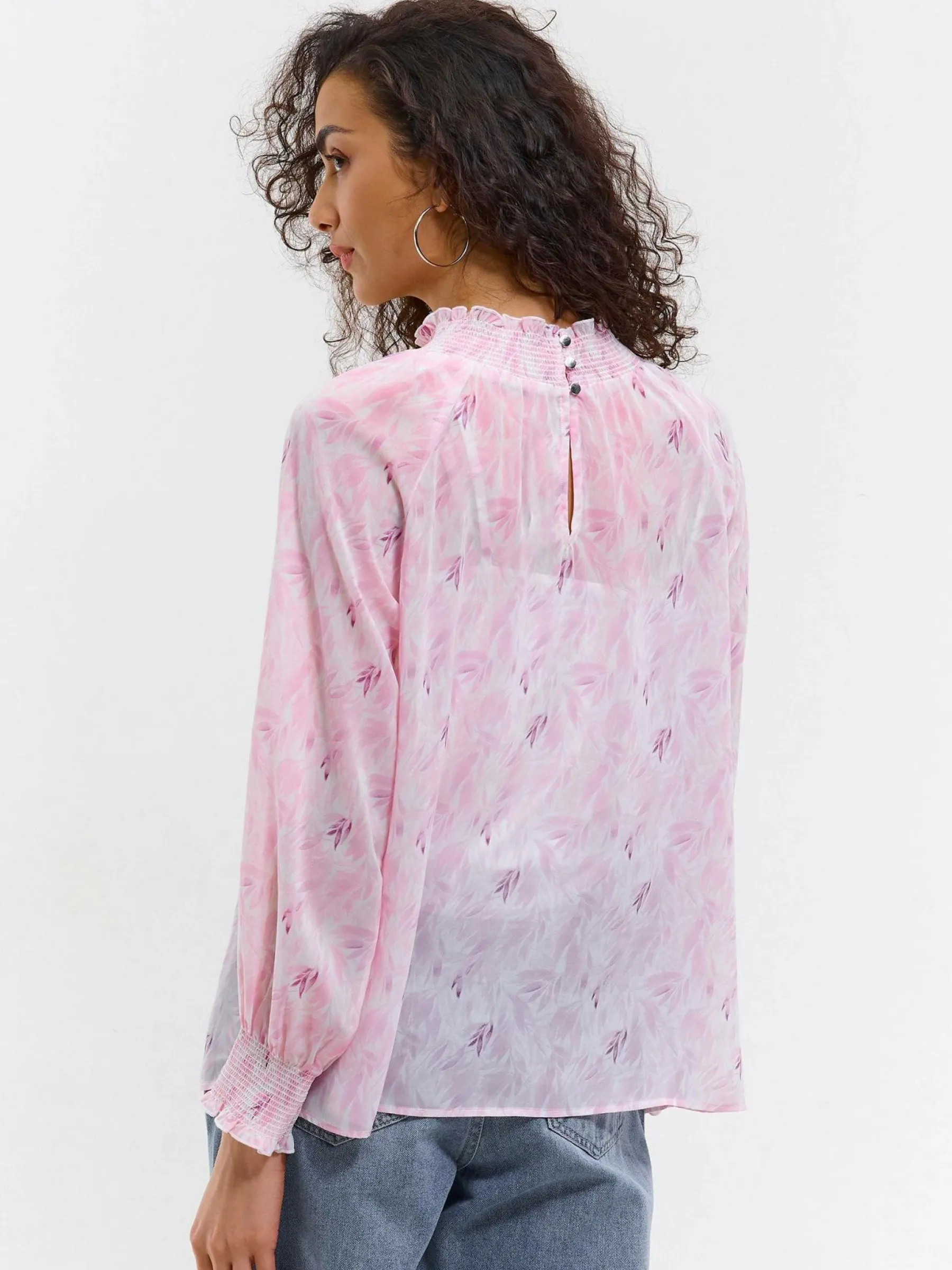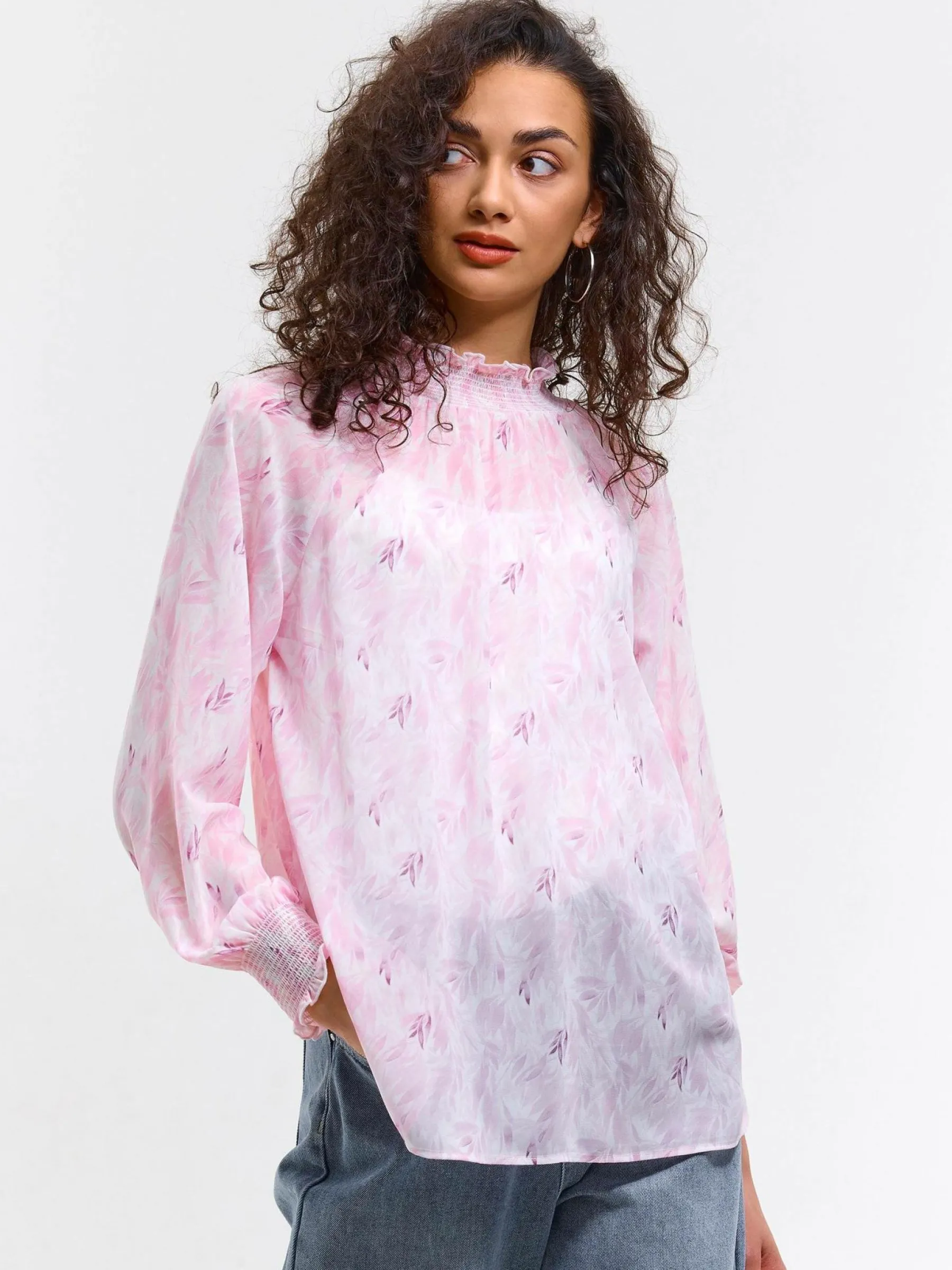 Kolor: różowyKrój: z marszczeniemTyp: bluzka, topRekaw: długi rękawDługość: dlugiePattern style: kwiatoweDetal: …