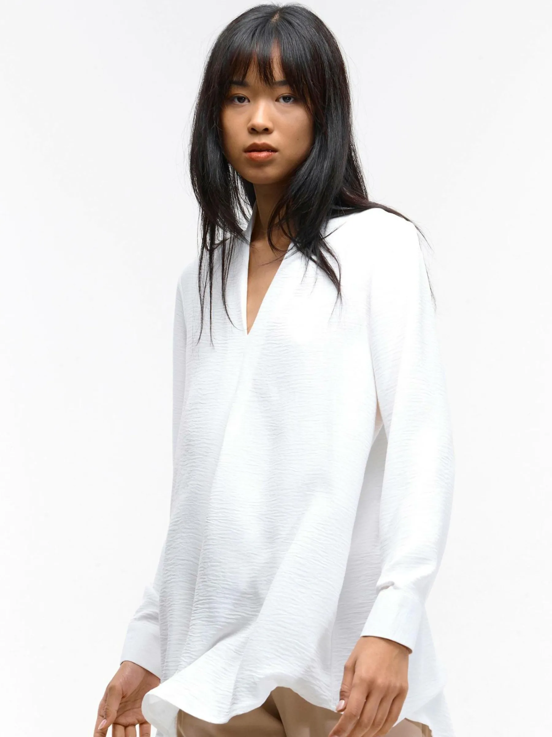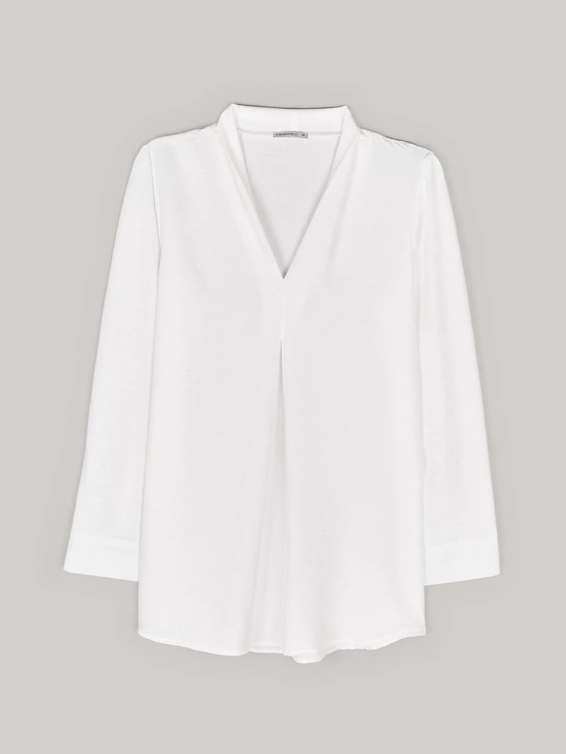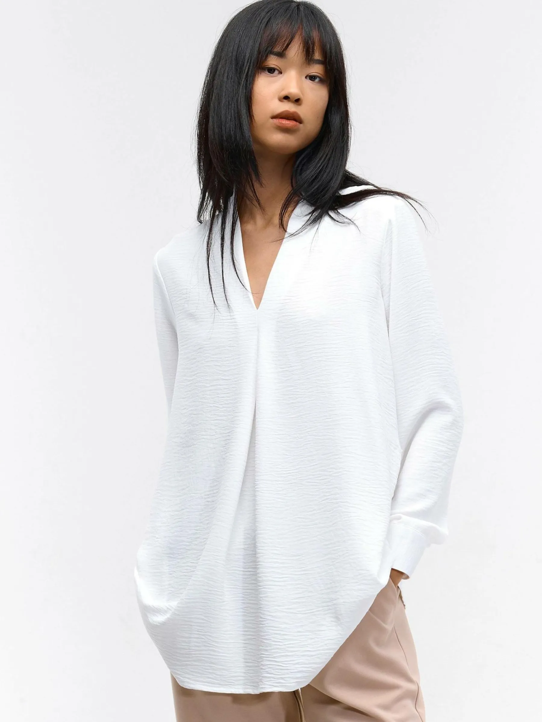 Kolor: białyKrój: regularTyp: bluzkaRekaw: długi rękawDługość: krótkiPattern style: pojedynczy kolorDetal: v-nec…