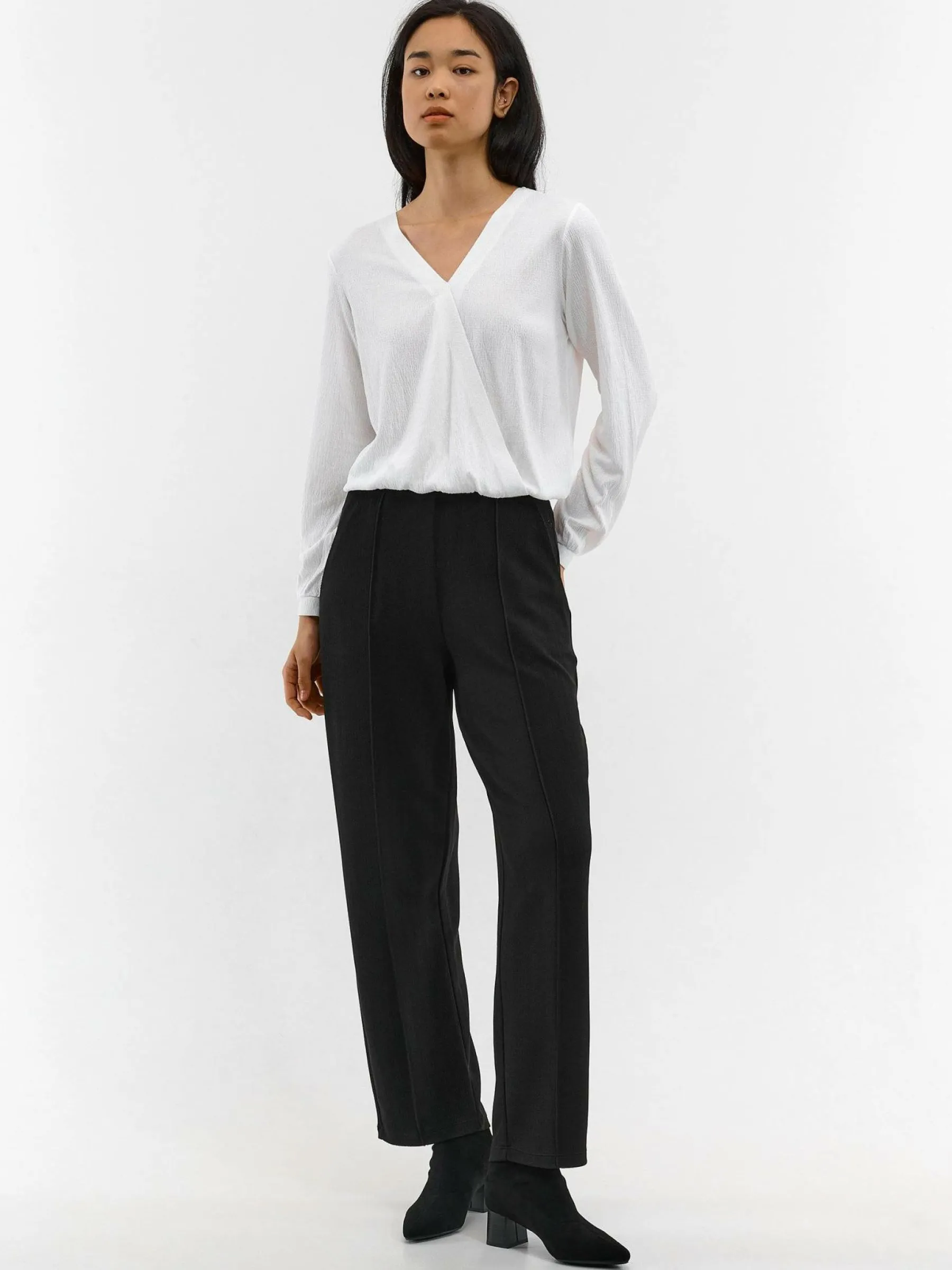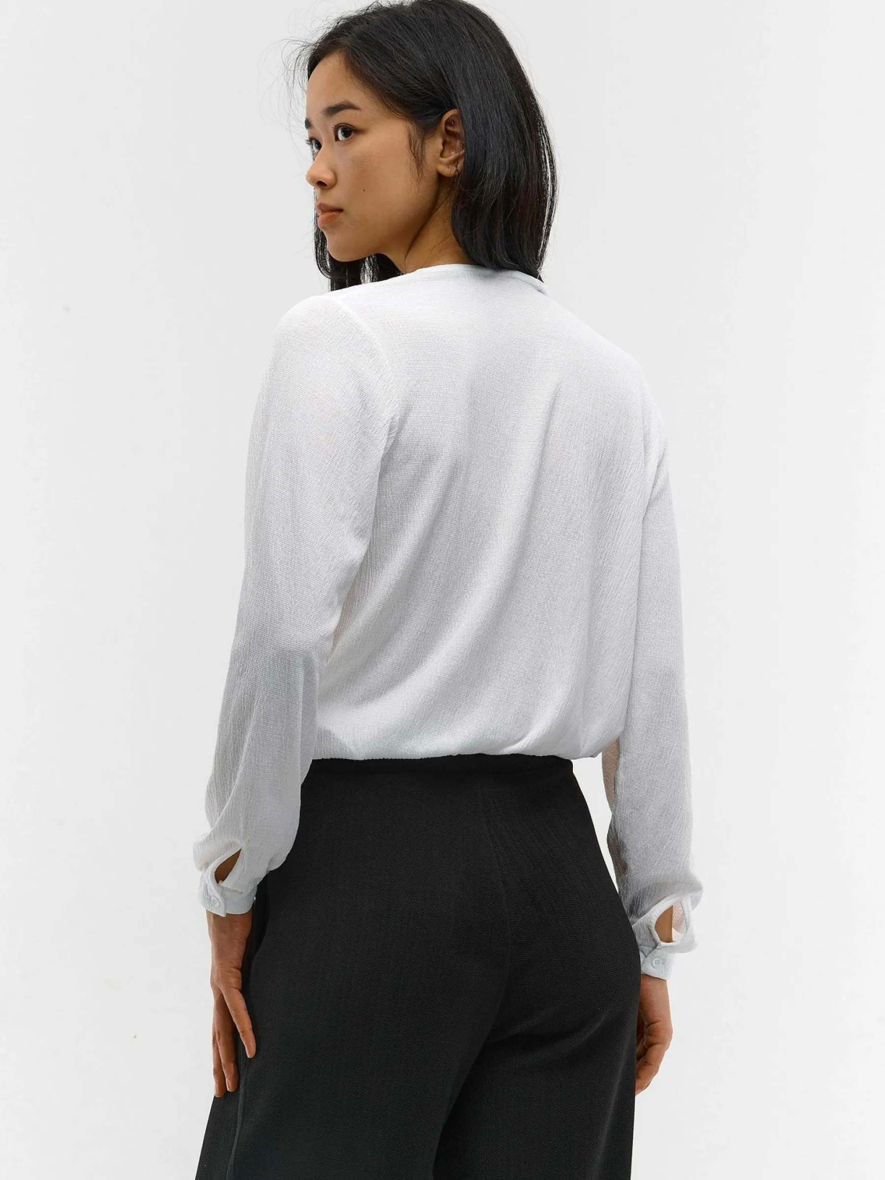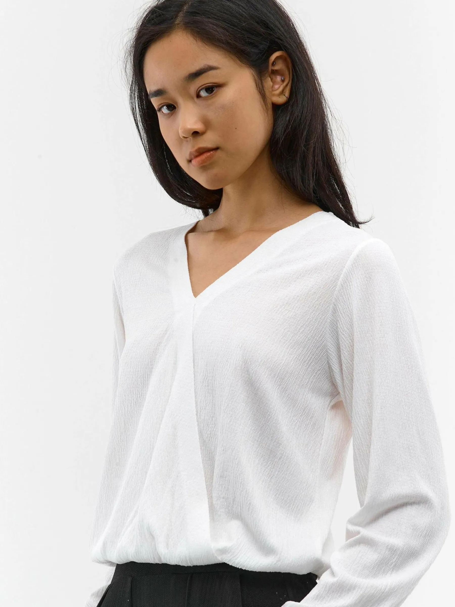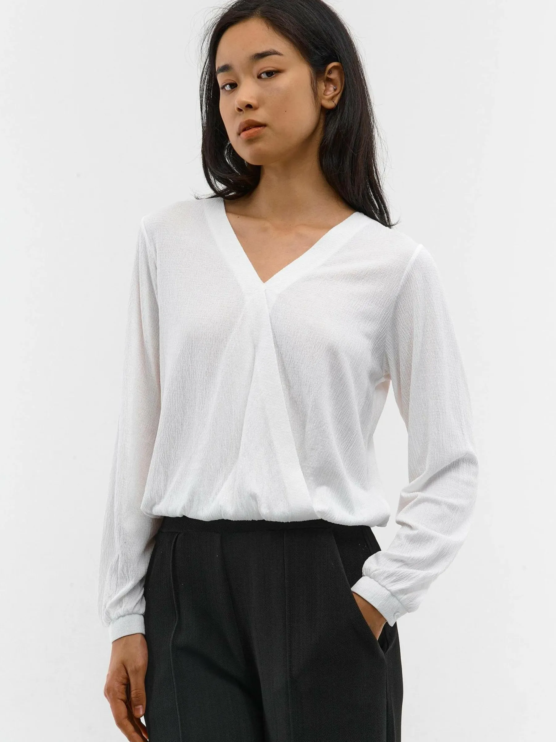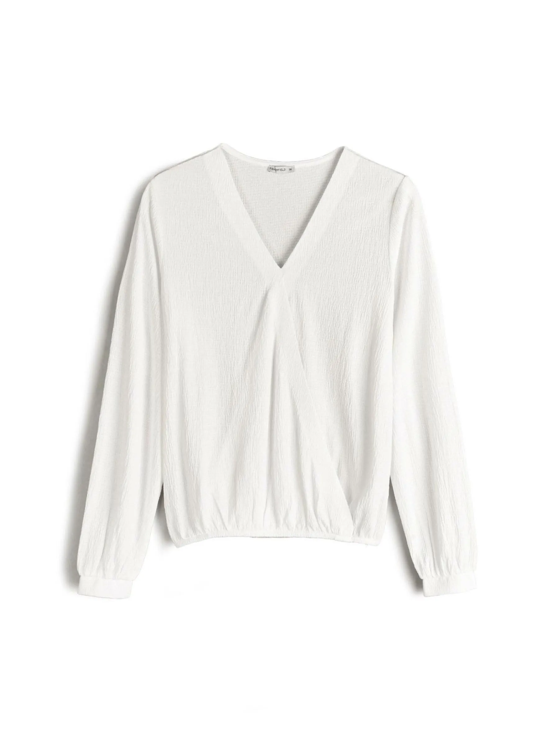Kolor: białyKrój: kopertówkiTyp: bluzka, topRekaw: długi rękawDługość: krótkiPattern style: pojedynczy kolorDet…