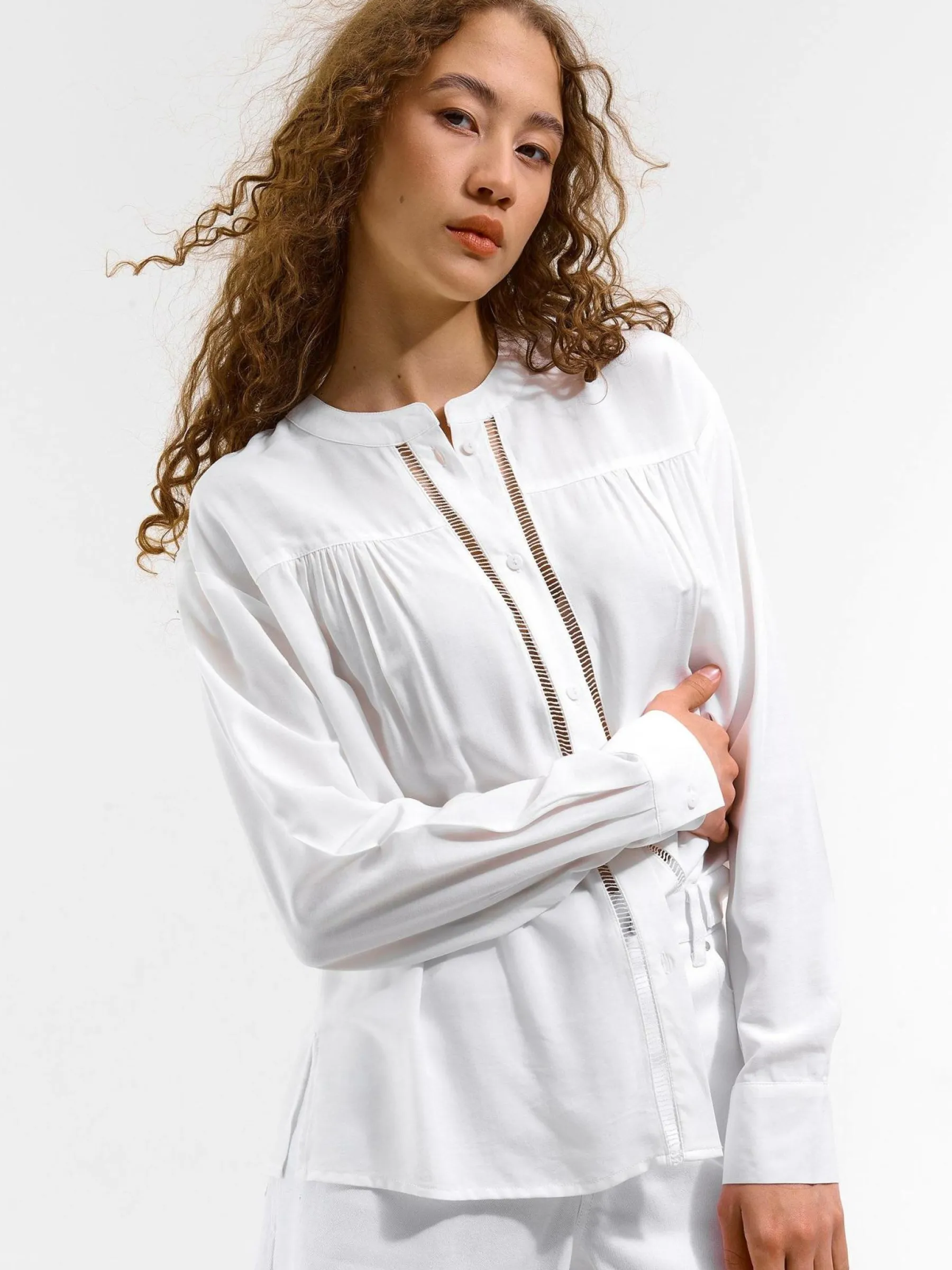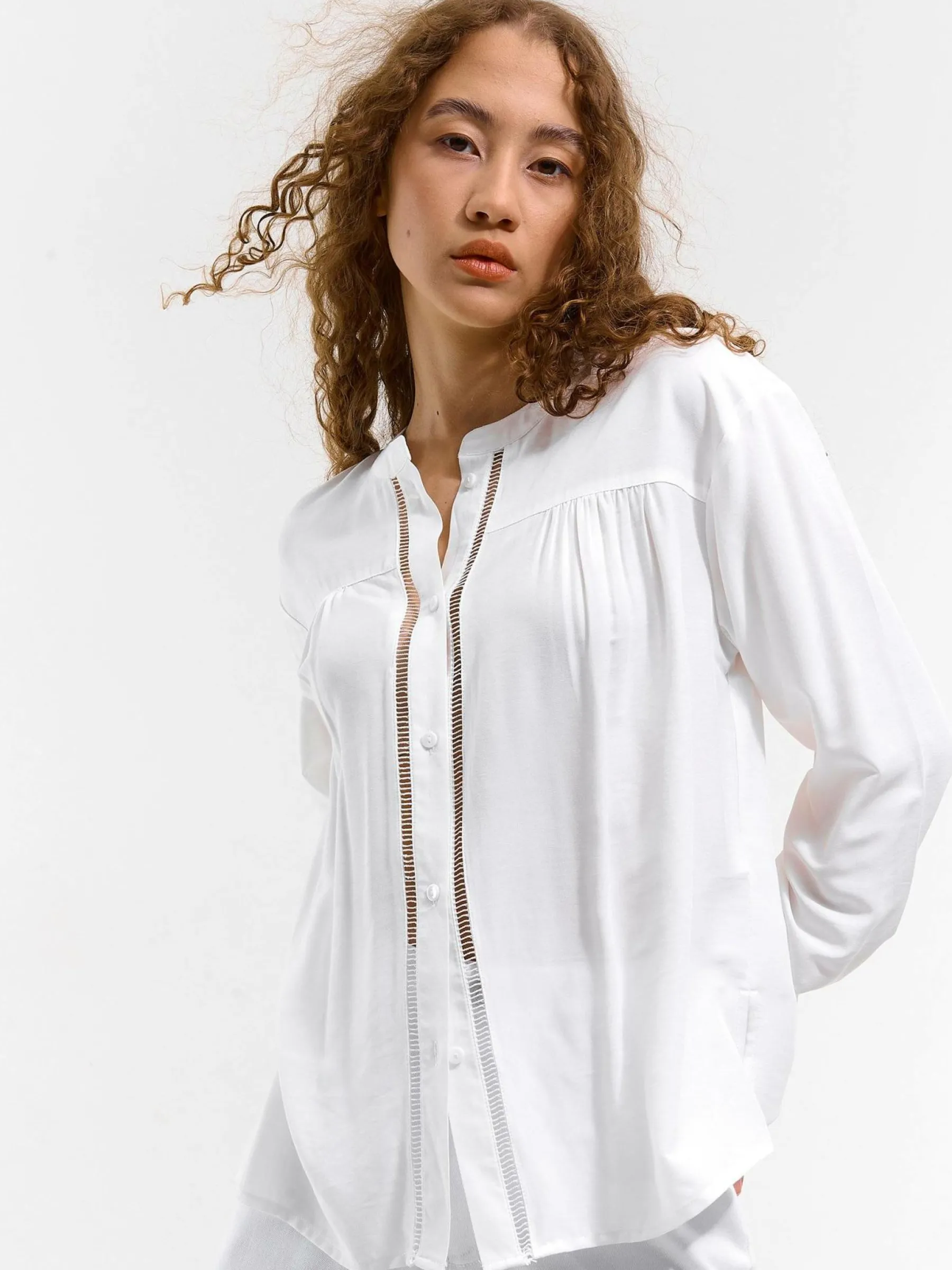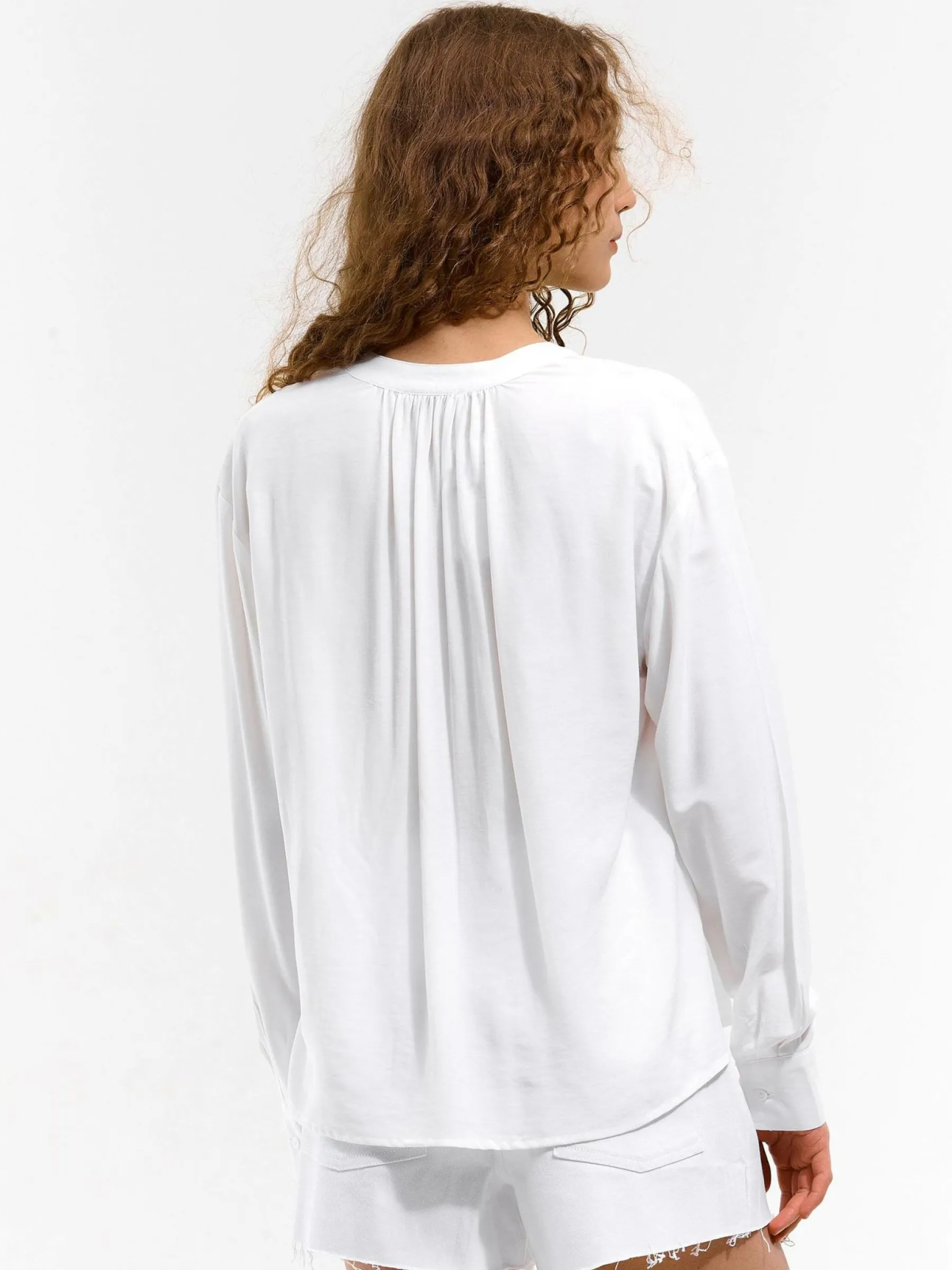 Kolor: białyKrój: regularTyp: bluzkaRekaw: długi rękawDługość: krótkiPattern style: pojedynczy kolorDetal: na gu…