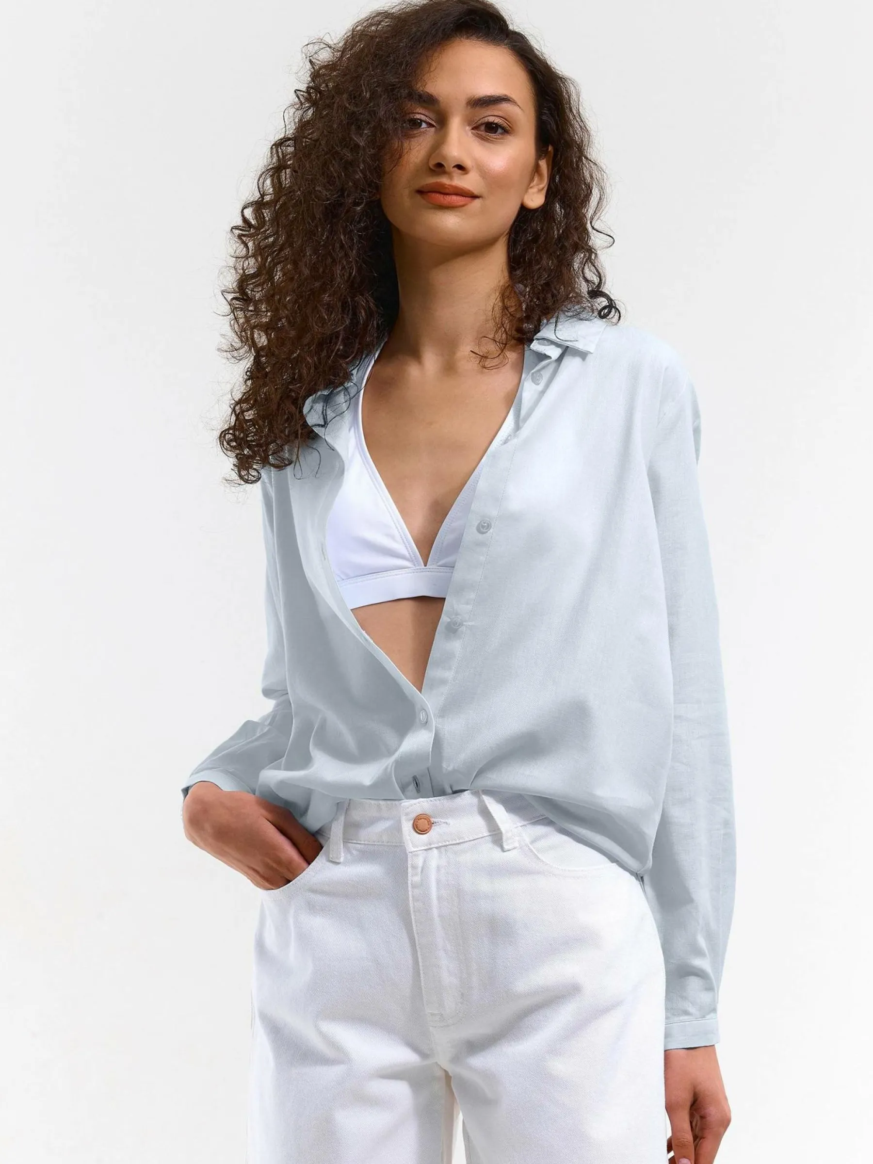 Kolor: niebieskiKrój: podstawowyTyp: bluzkaRekaw: długi rękawDługość: dlugiePattern style: pojedynczy kolorDetal: …