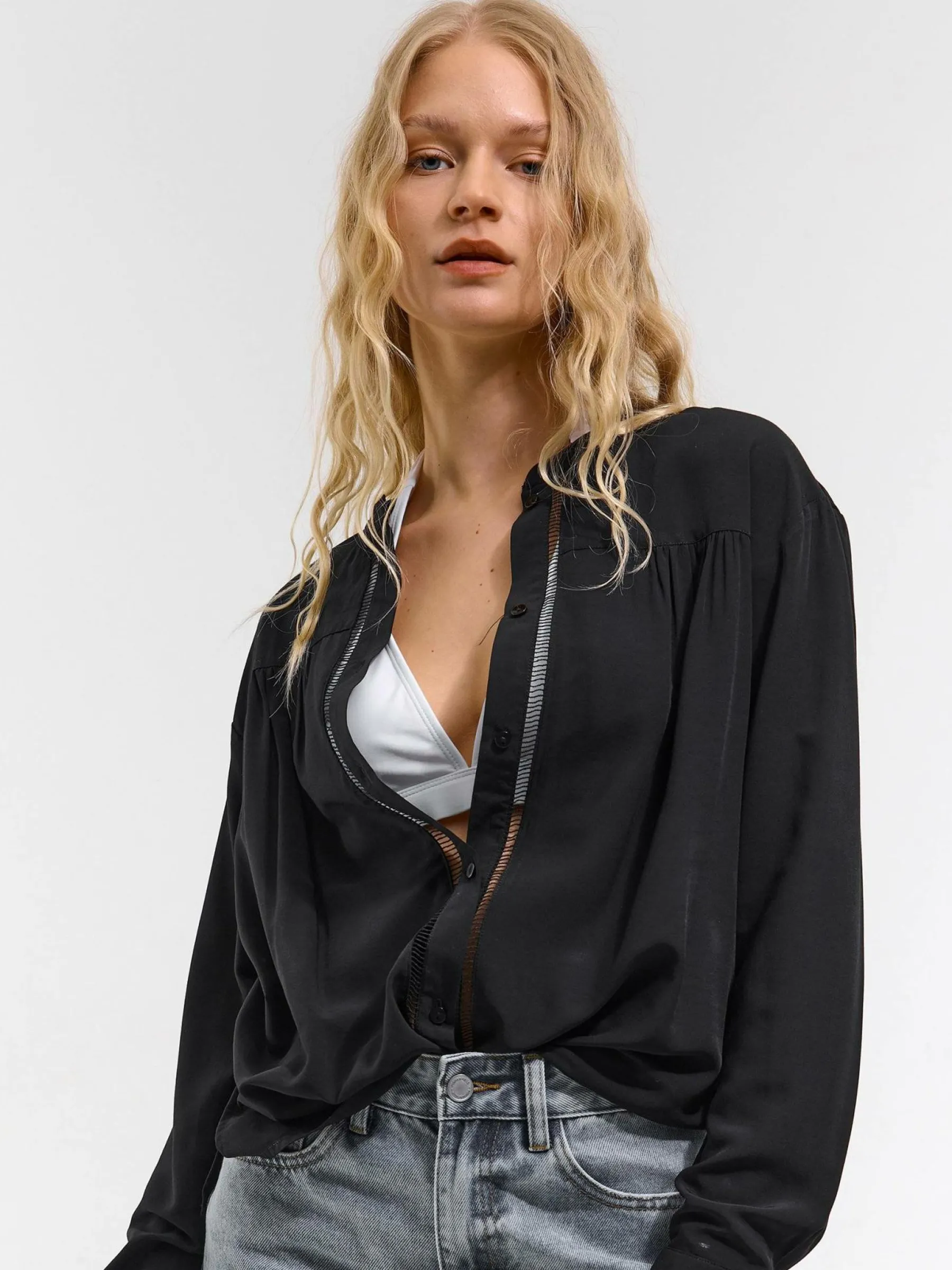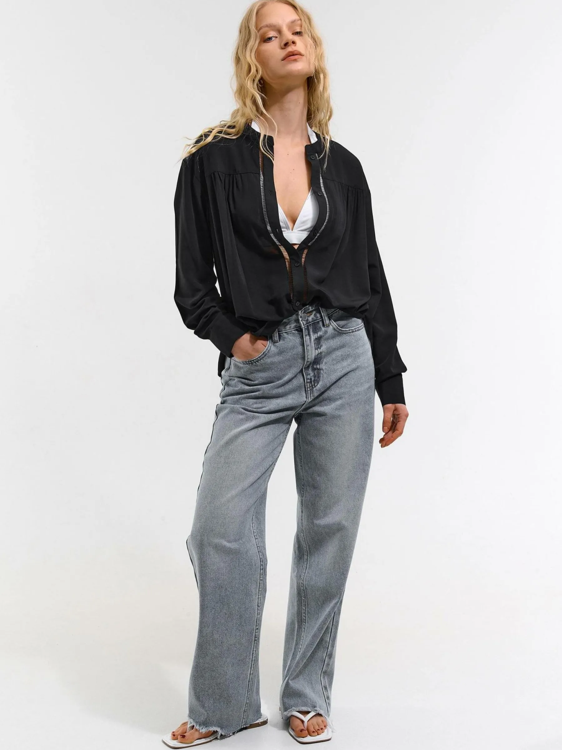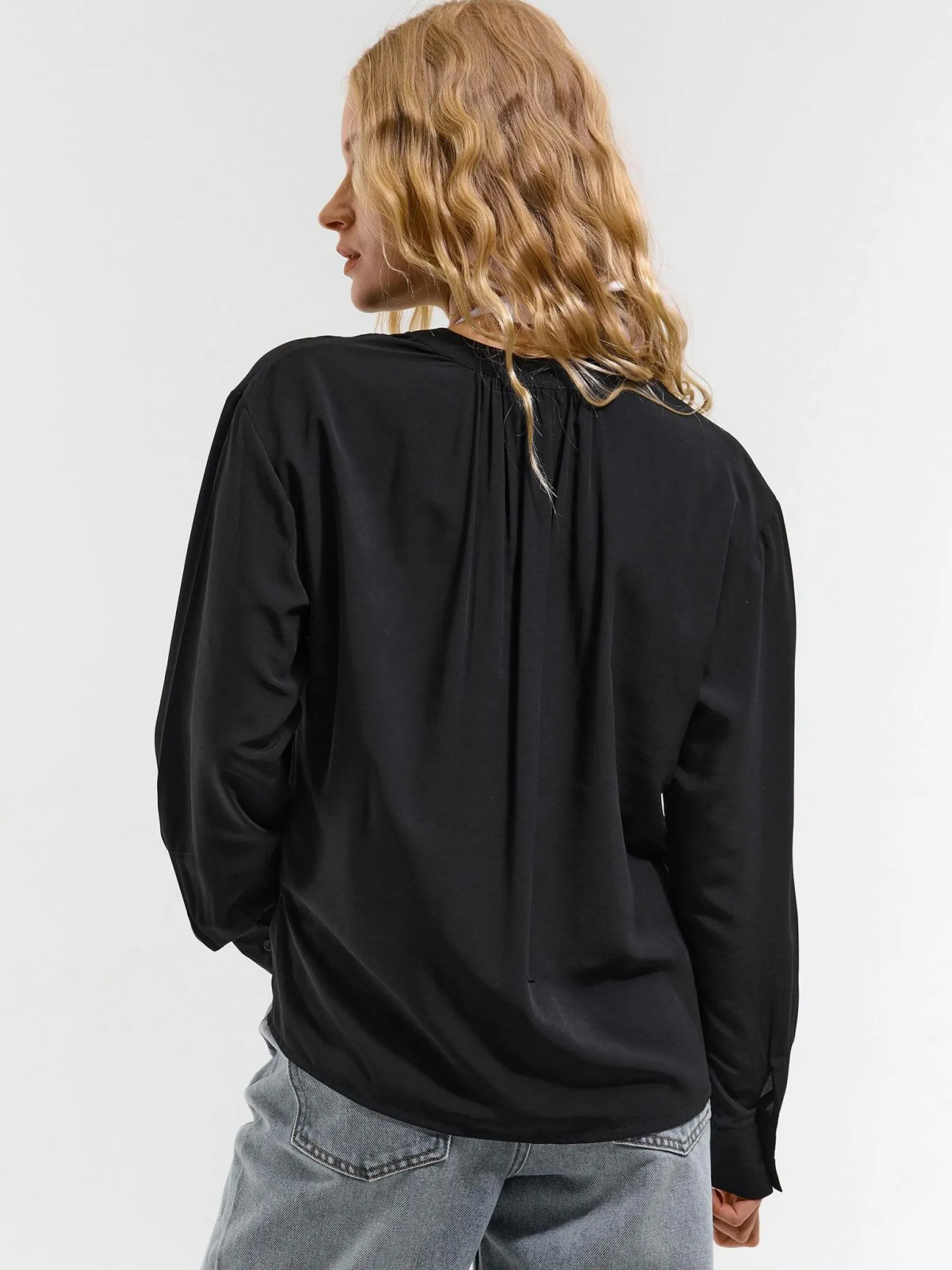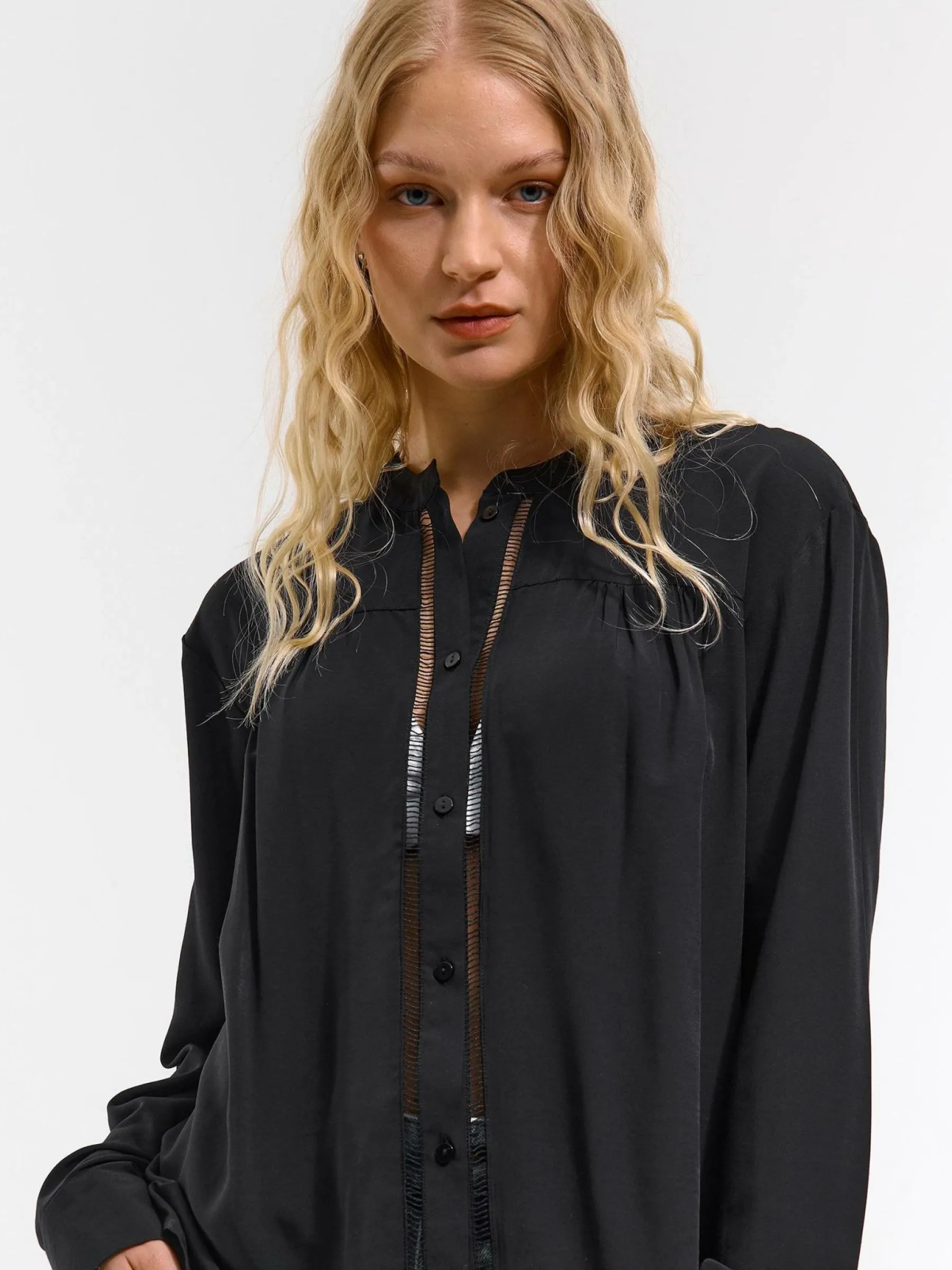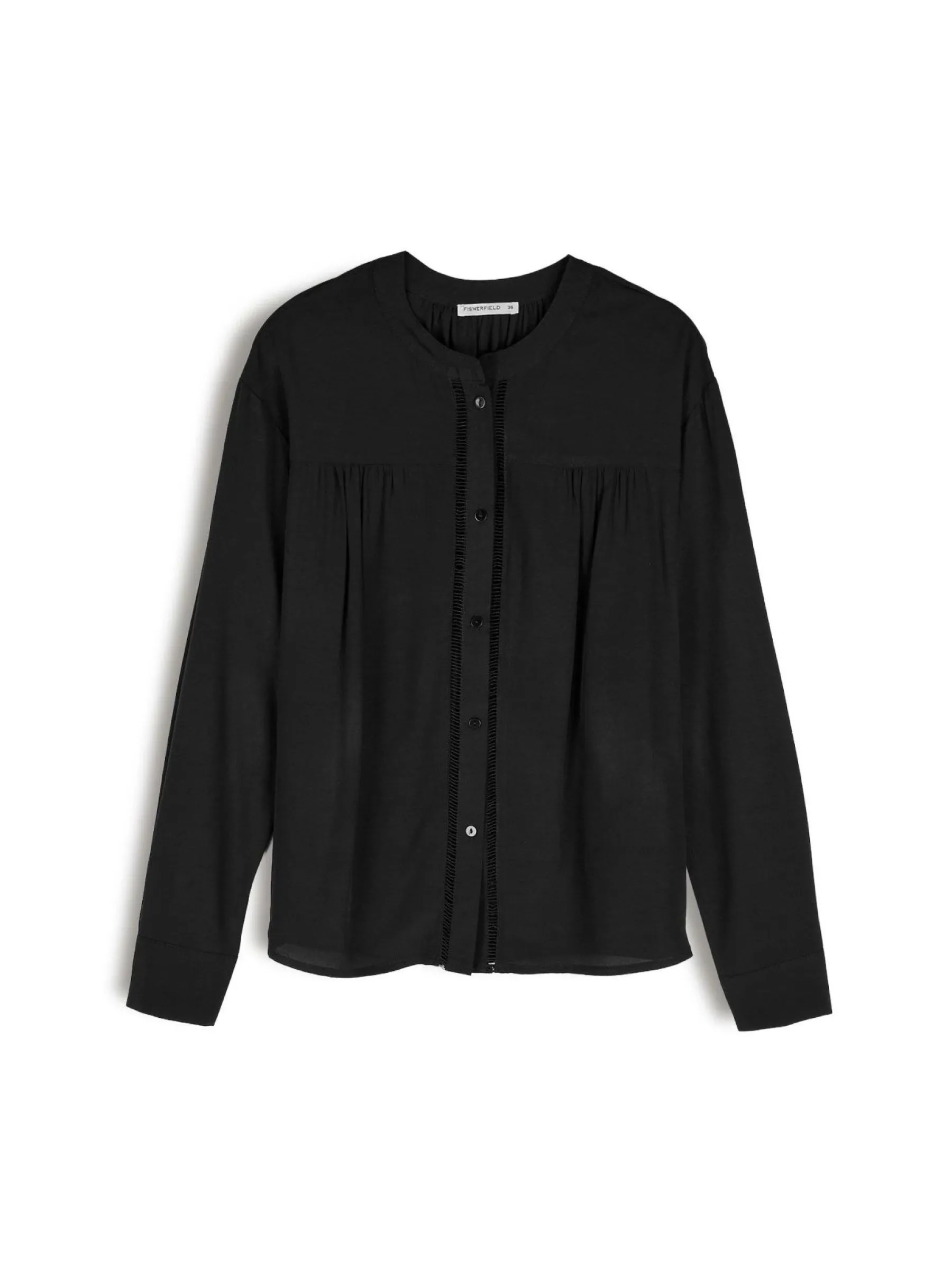 Kolor: czarnyKrój: regularTyp: bluzkaRekaw: długi rękawDługość: krótkiPattern style: pojedynczy kolorDetal: na gu…