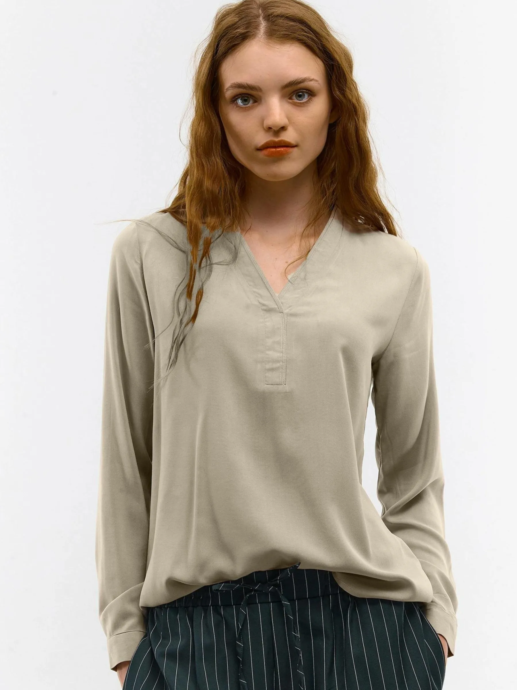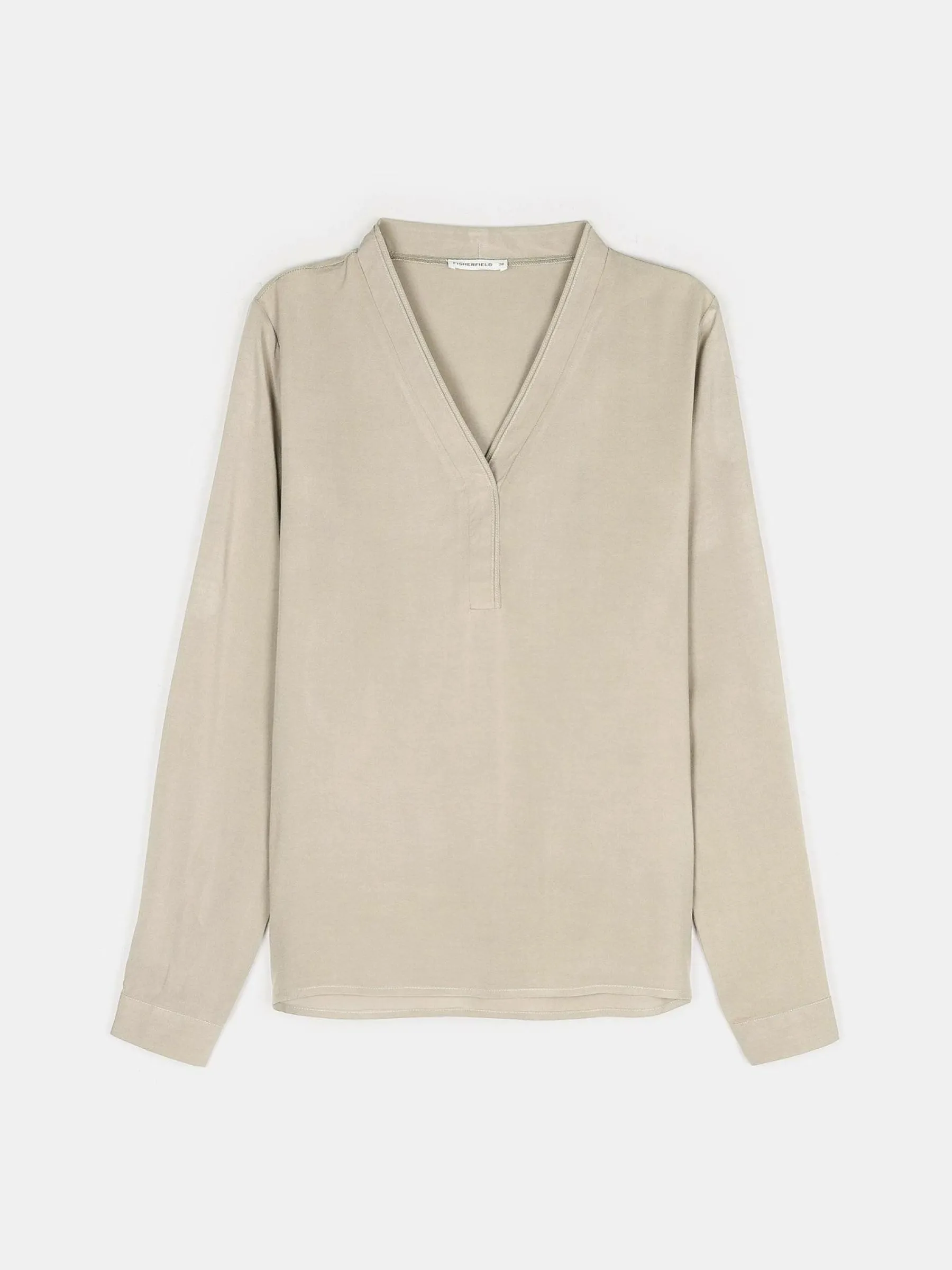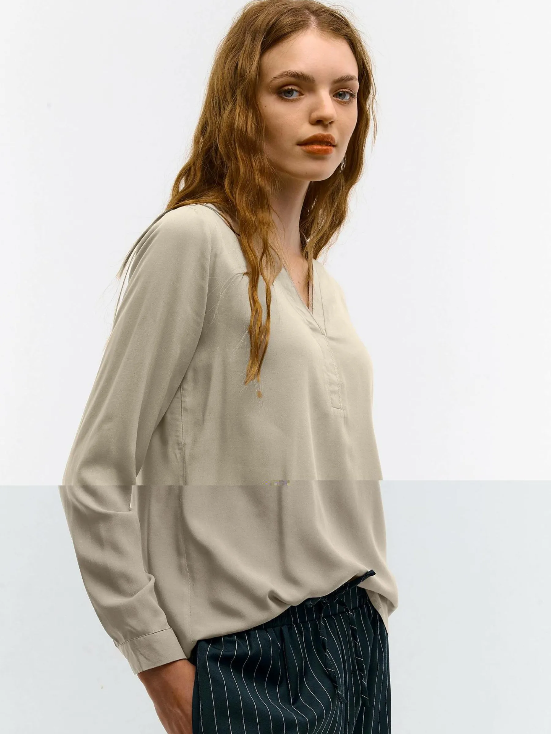 Kolor: beżowyKrój: regularTyp: bluzkaRekaw: długi rękawDługość: krótkiPattern style: pojedynczy kolorDetal: nad …