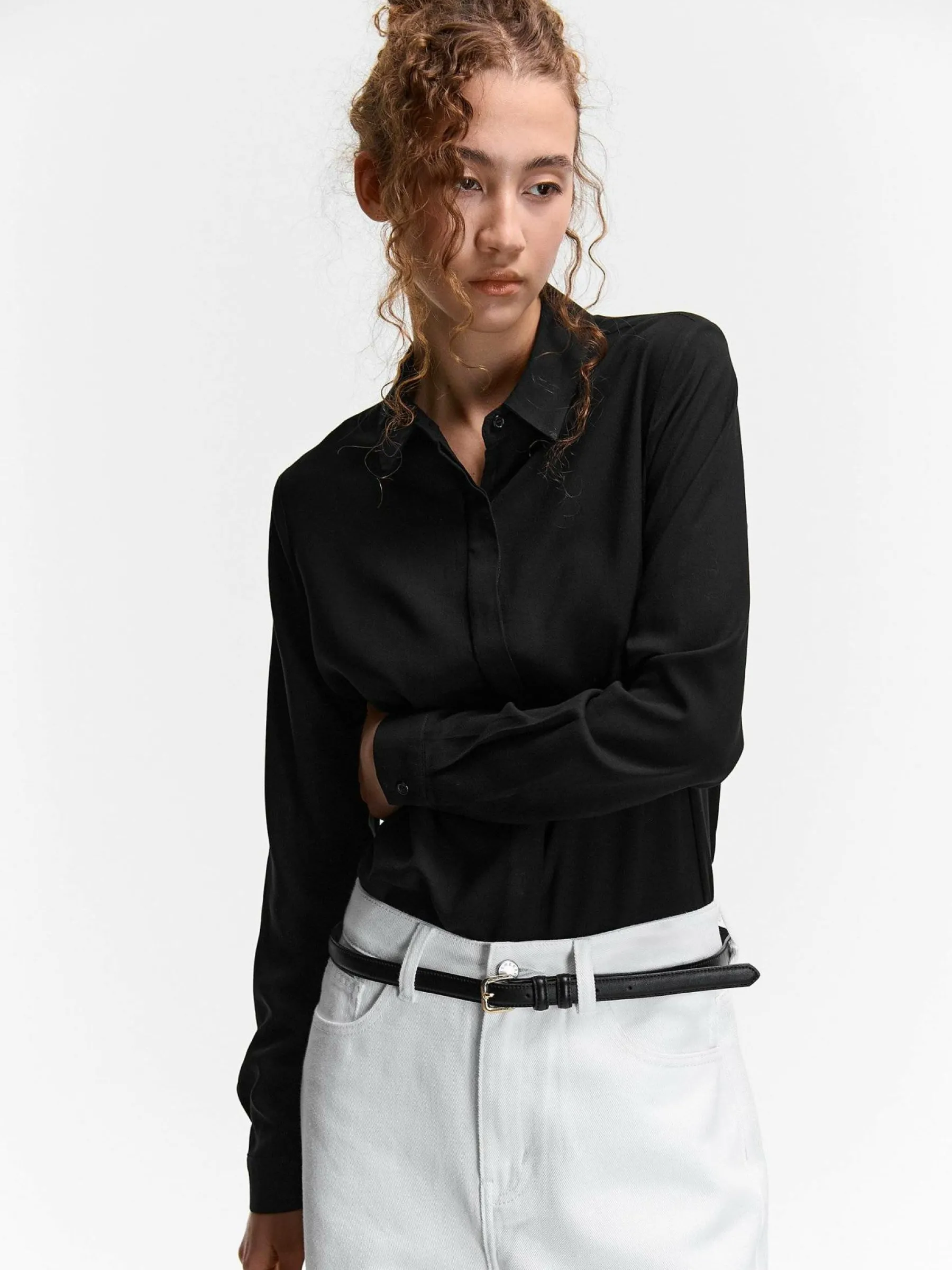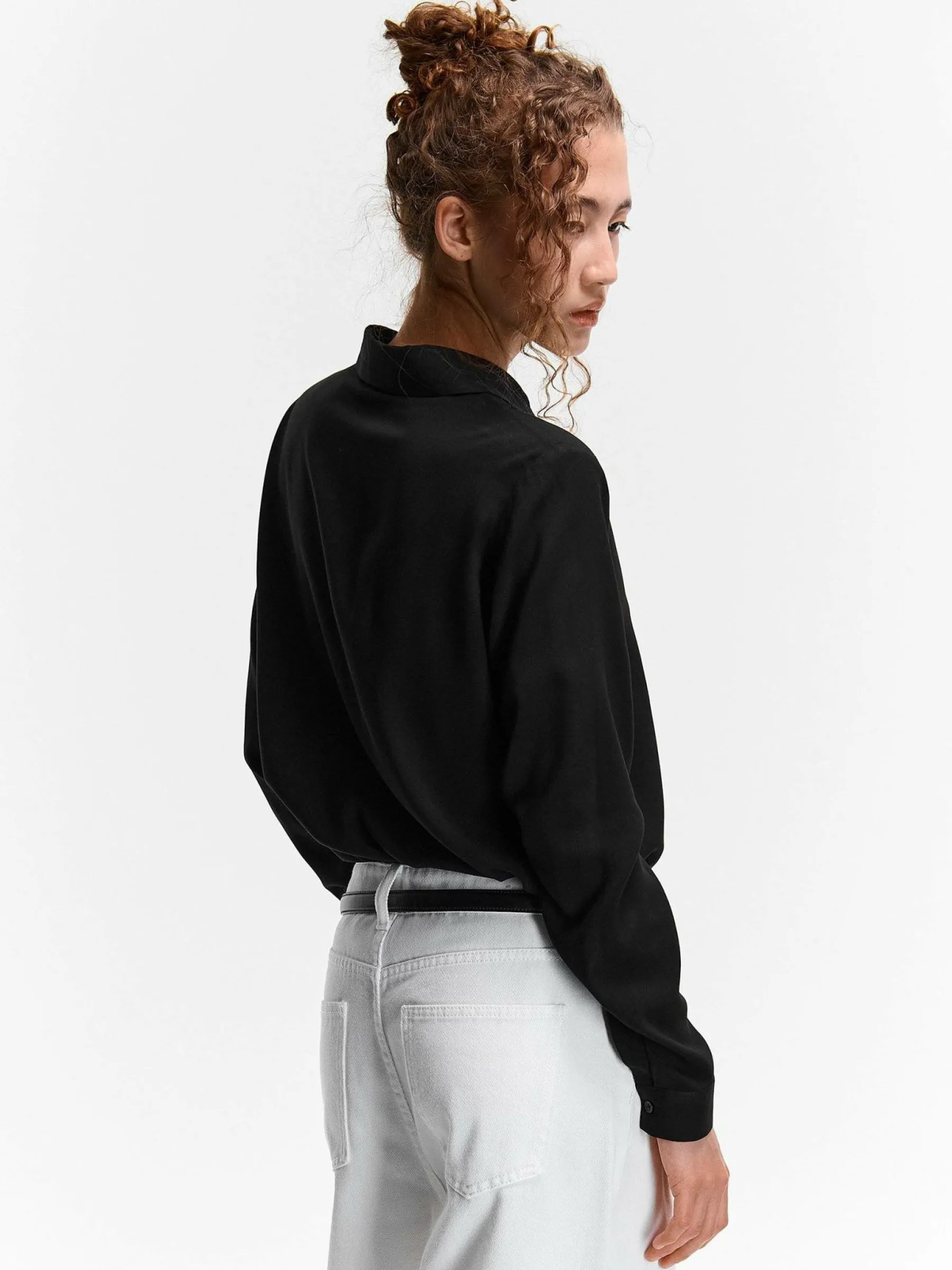 Kolor: czarnyKrój: regularTyp: bluzkaRekaw: długi rękawDługość: krótkiPattern style: pojedynczy kolorDetal: na gu…