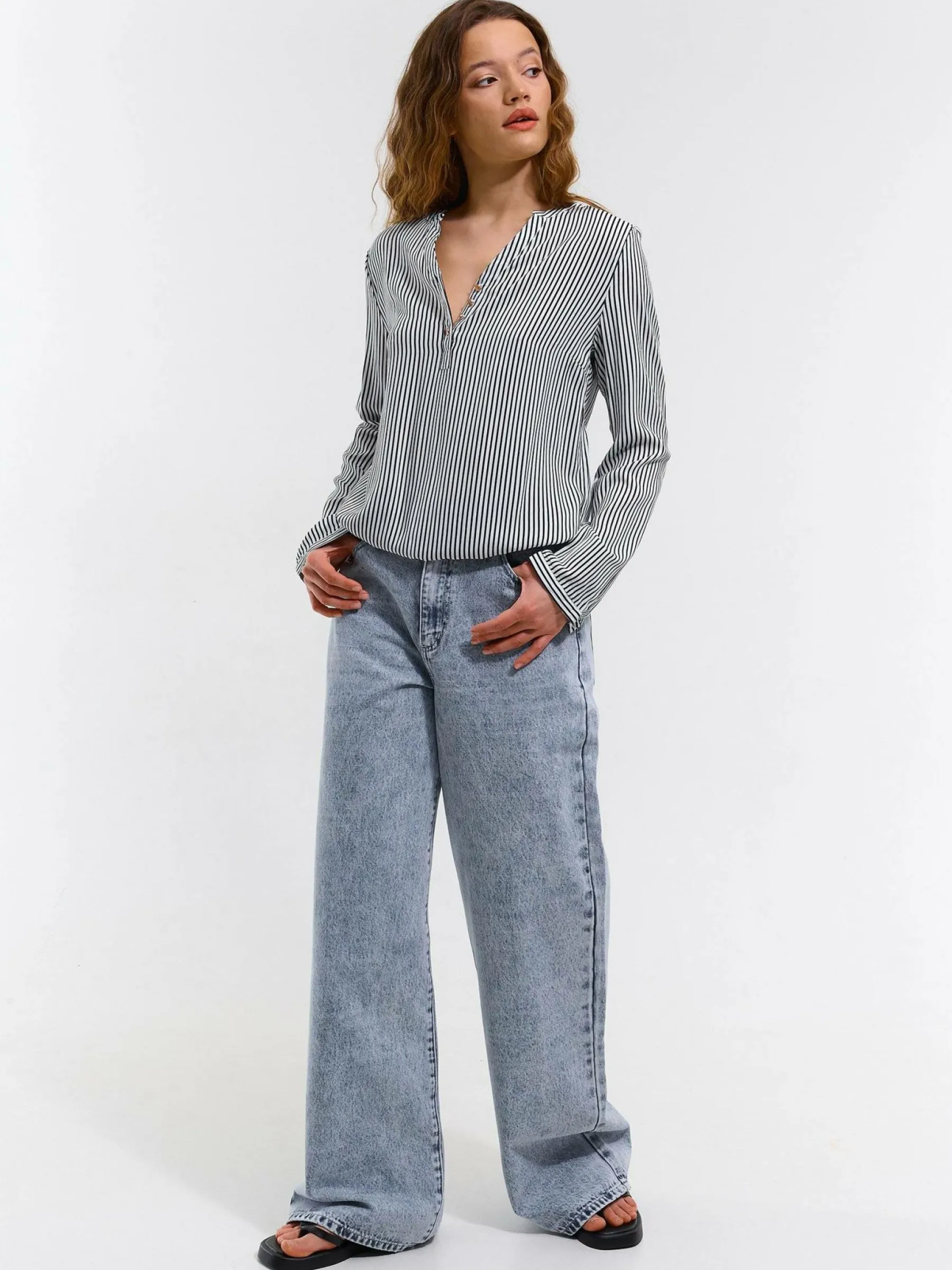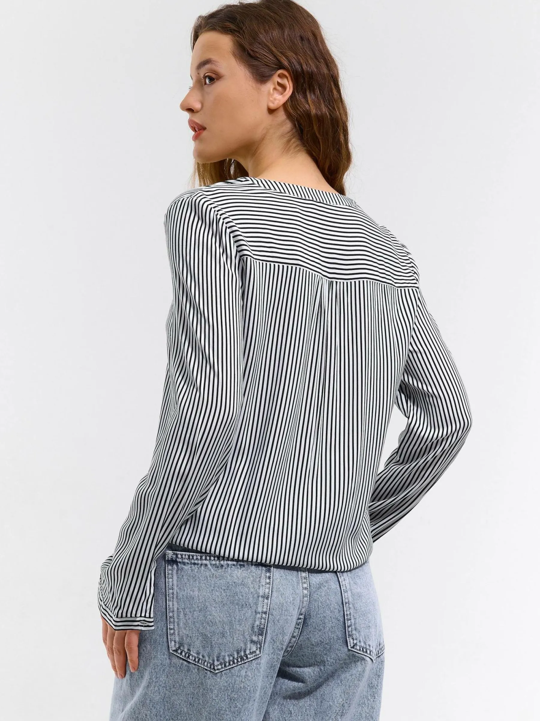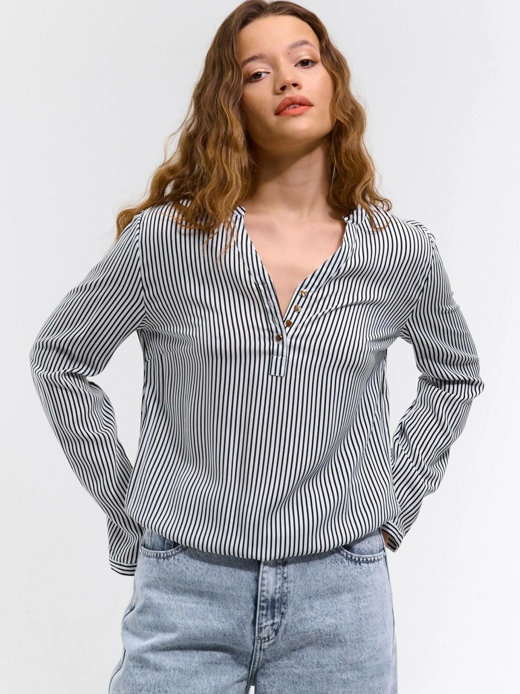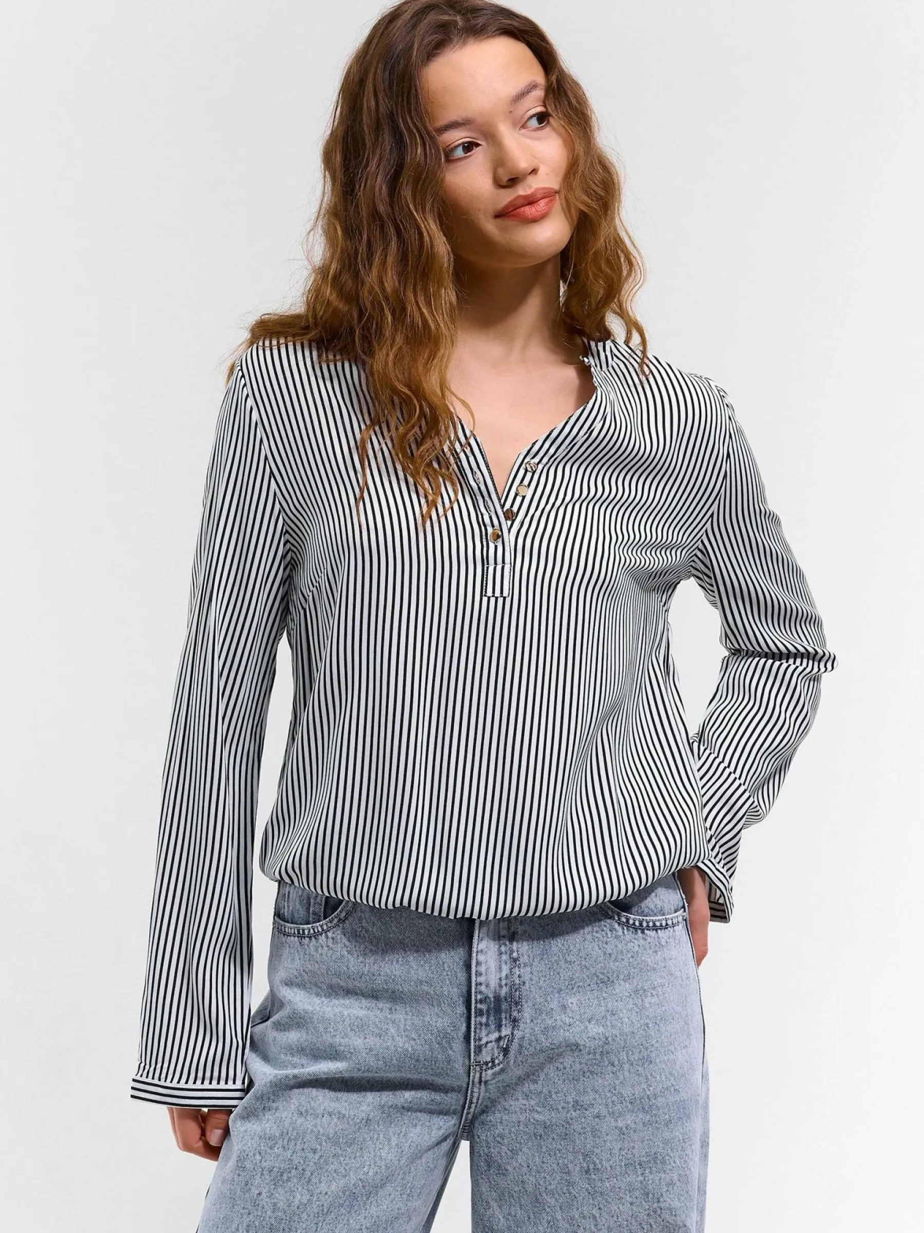 Kolor: czarnyKrój: regularTyp: bluzkaRekaw: długi rękawDługość: krótkiPattern style: w prążkiDetal: na guziki, …