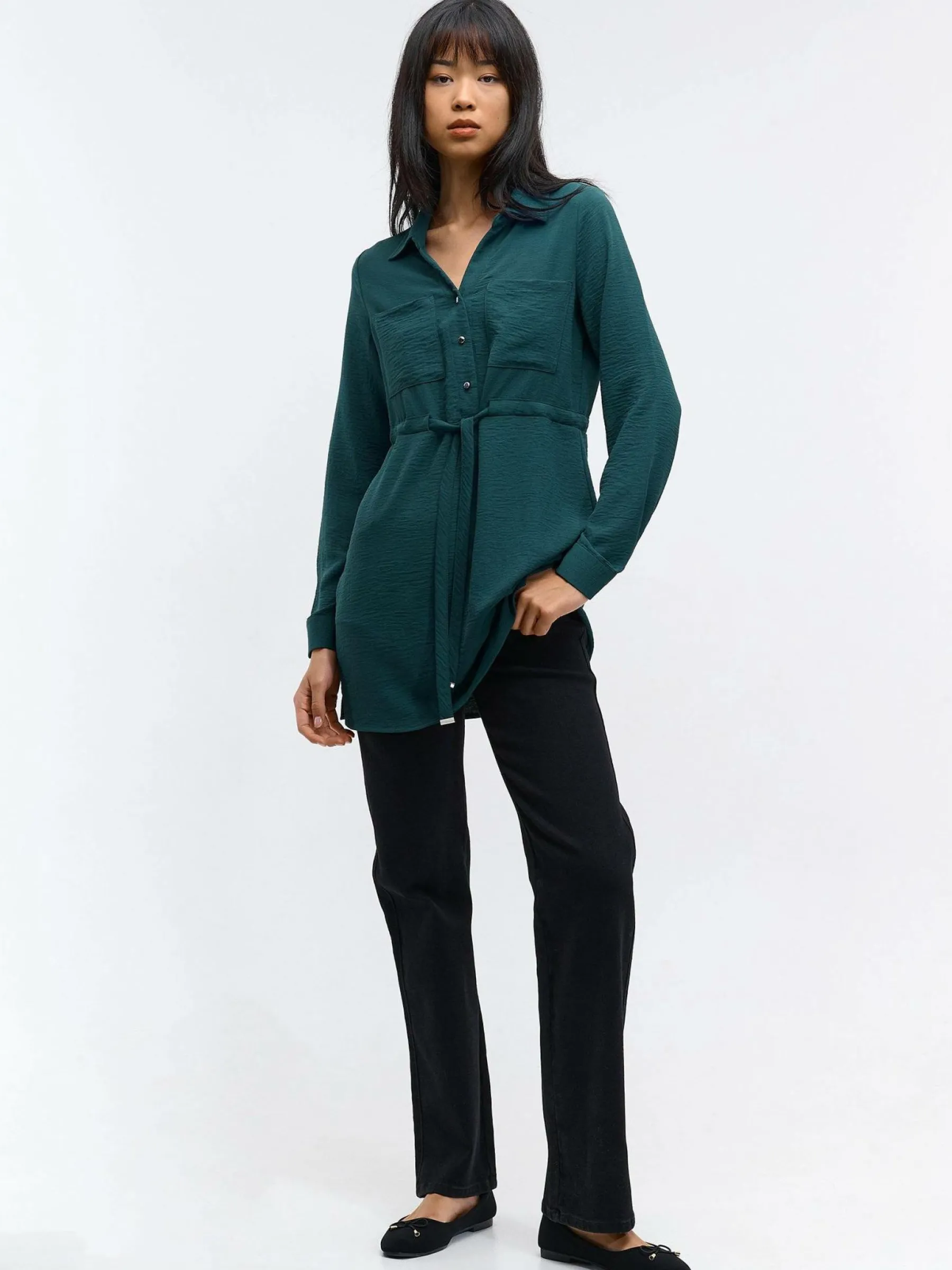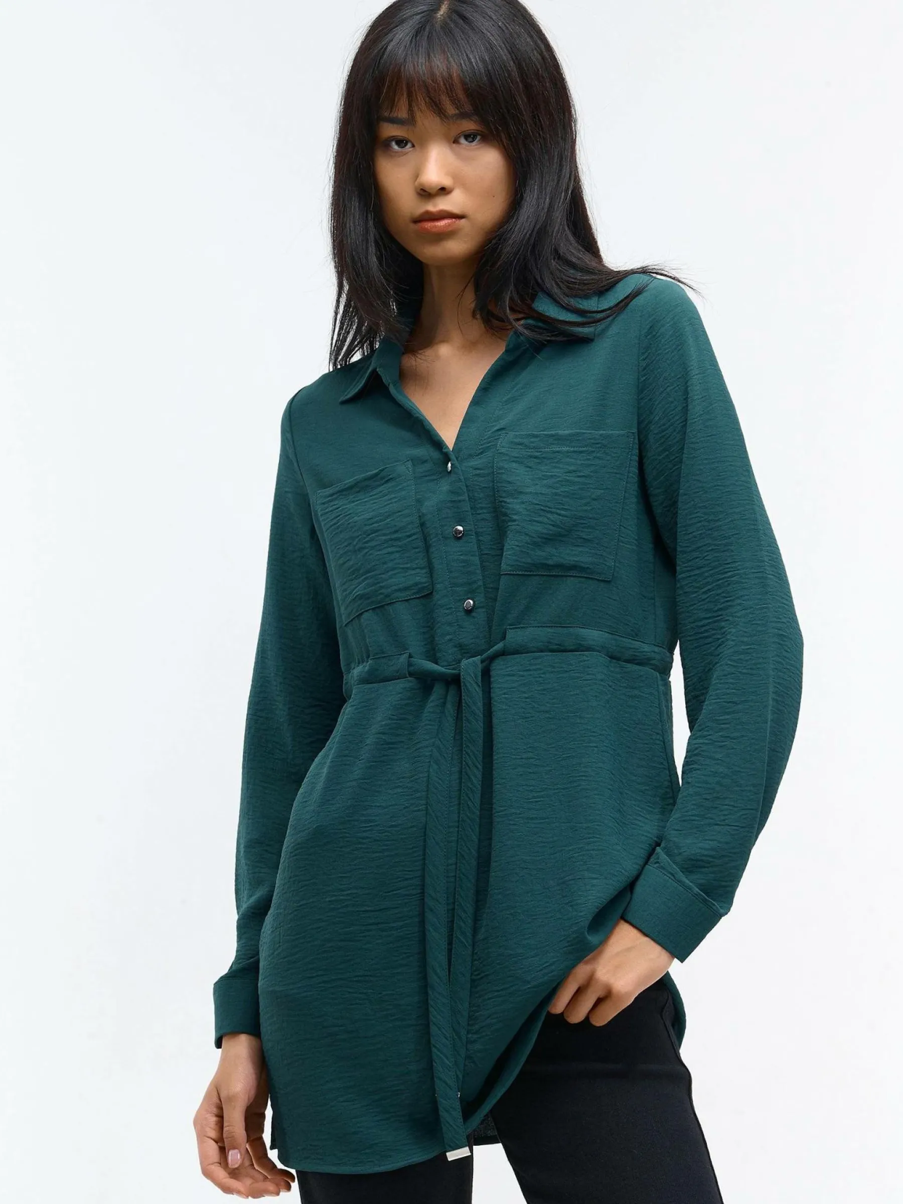 Kolor: zielonyKrój: regularTyp: bluzkaRekaw: długi rękawDługość: dlugiePattern style: pojedynczy kolorDetal: ze sz…