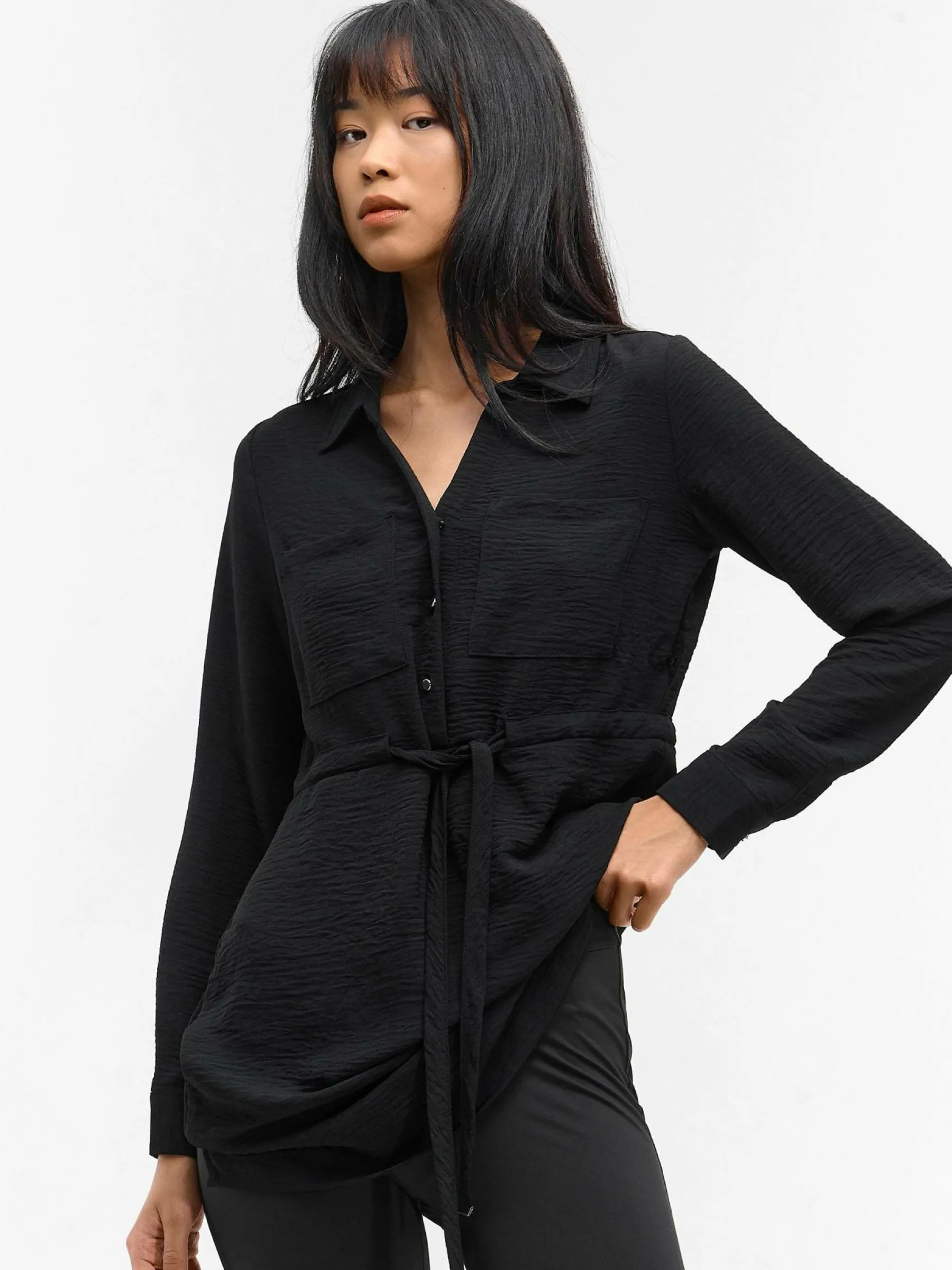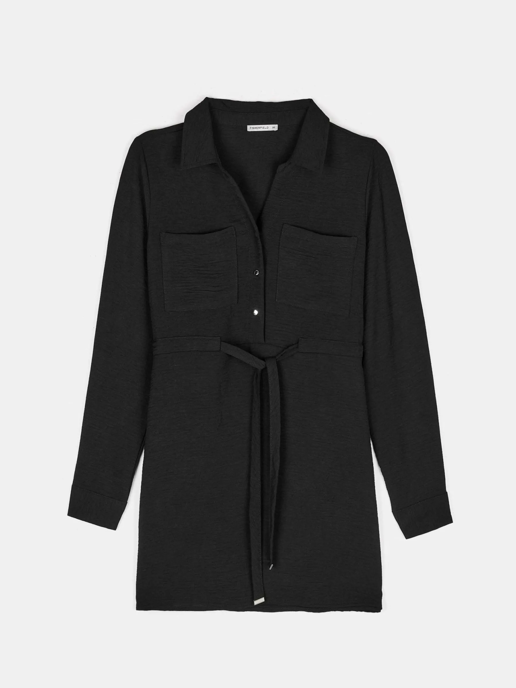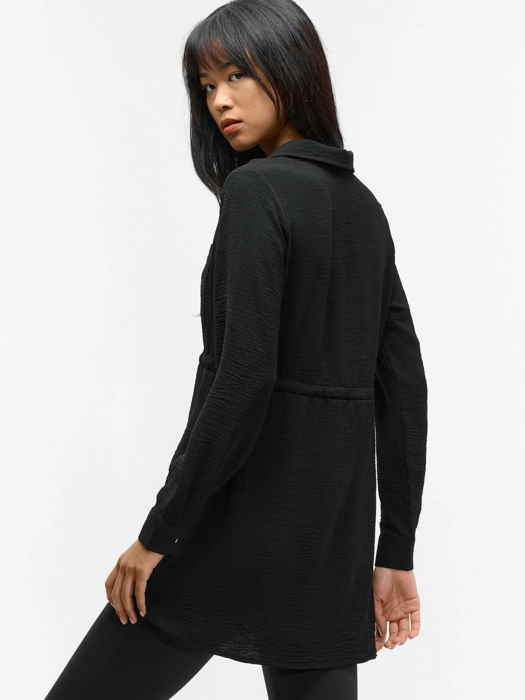 Kolor: czarnyKrój: regularTyp: bluzkaRekaw: długi rękawDługość: dlugiePattern style: pojedynczy kolorDetal: ze szn…