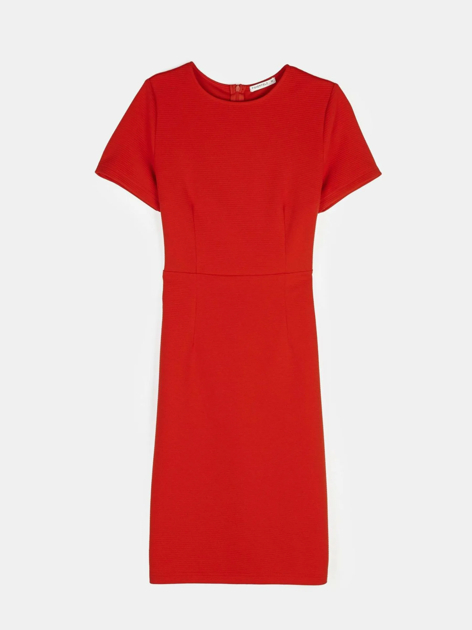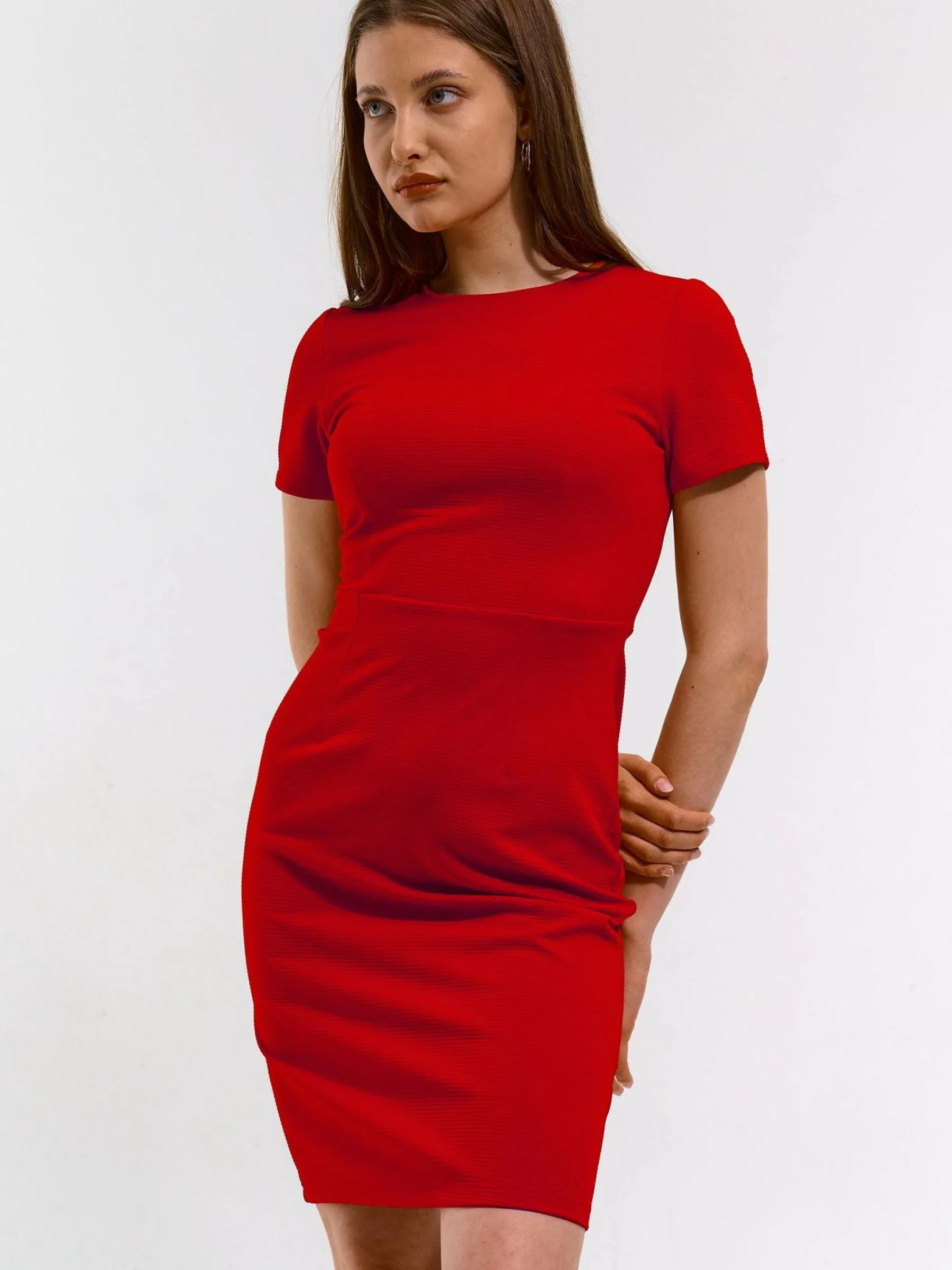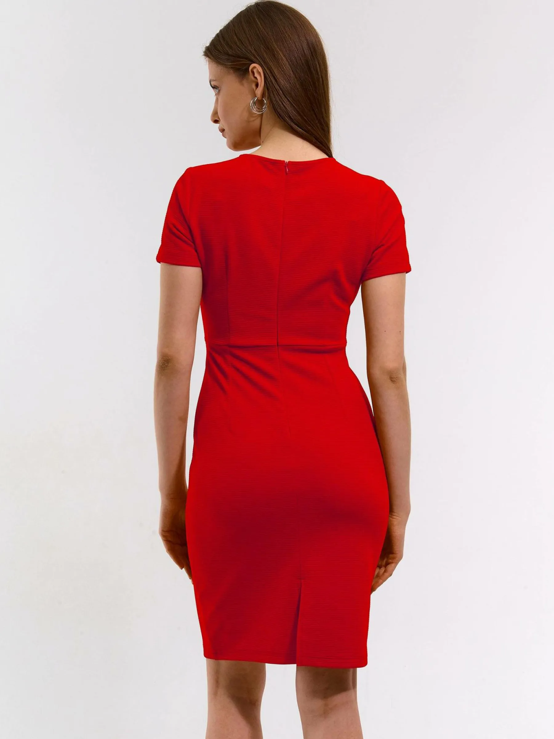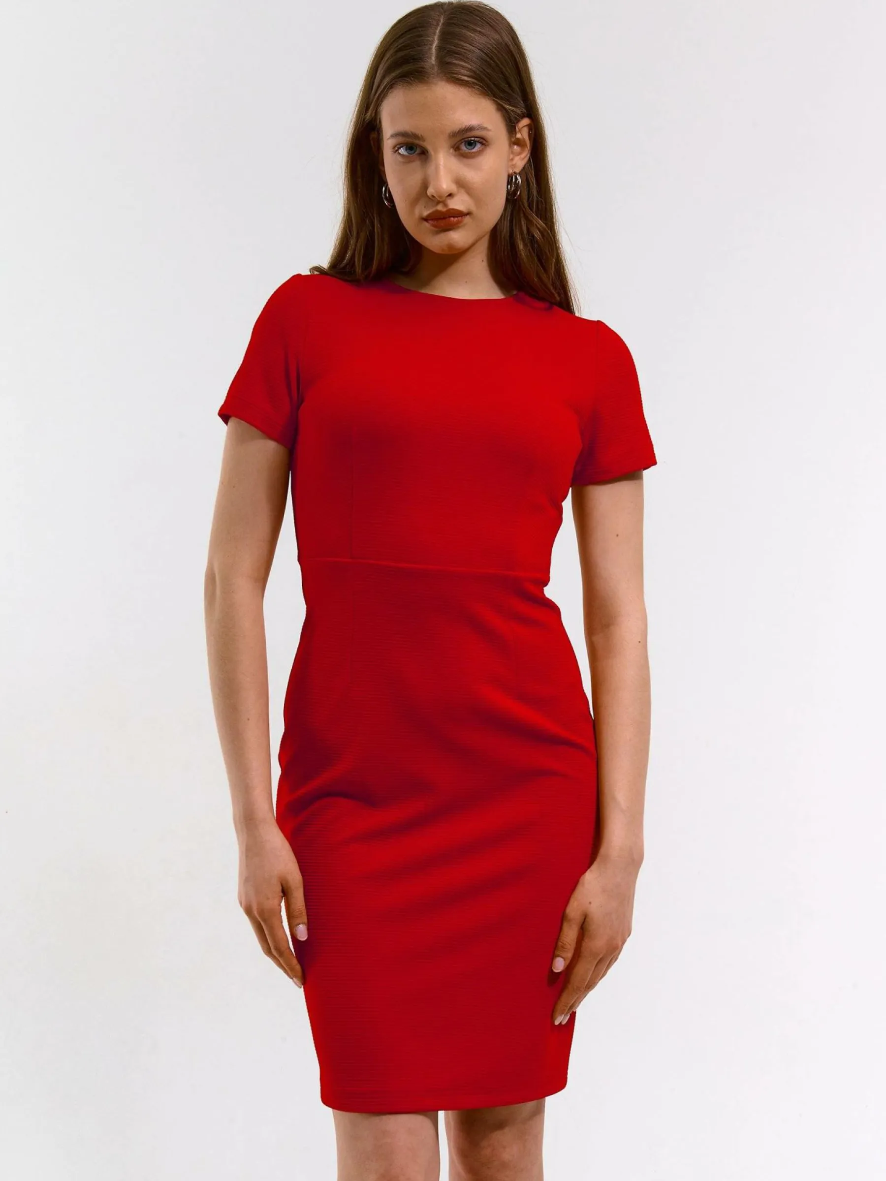 Kolor: czerwonyKrój: ołówkoweTyp: sukienkaRekaw: krótki rękawDługość: miniPattern style: pojedynczy kolor, wielo…