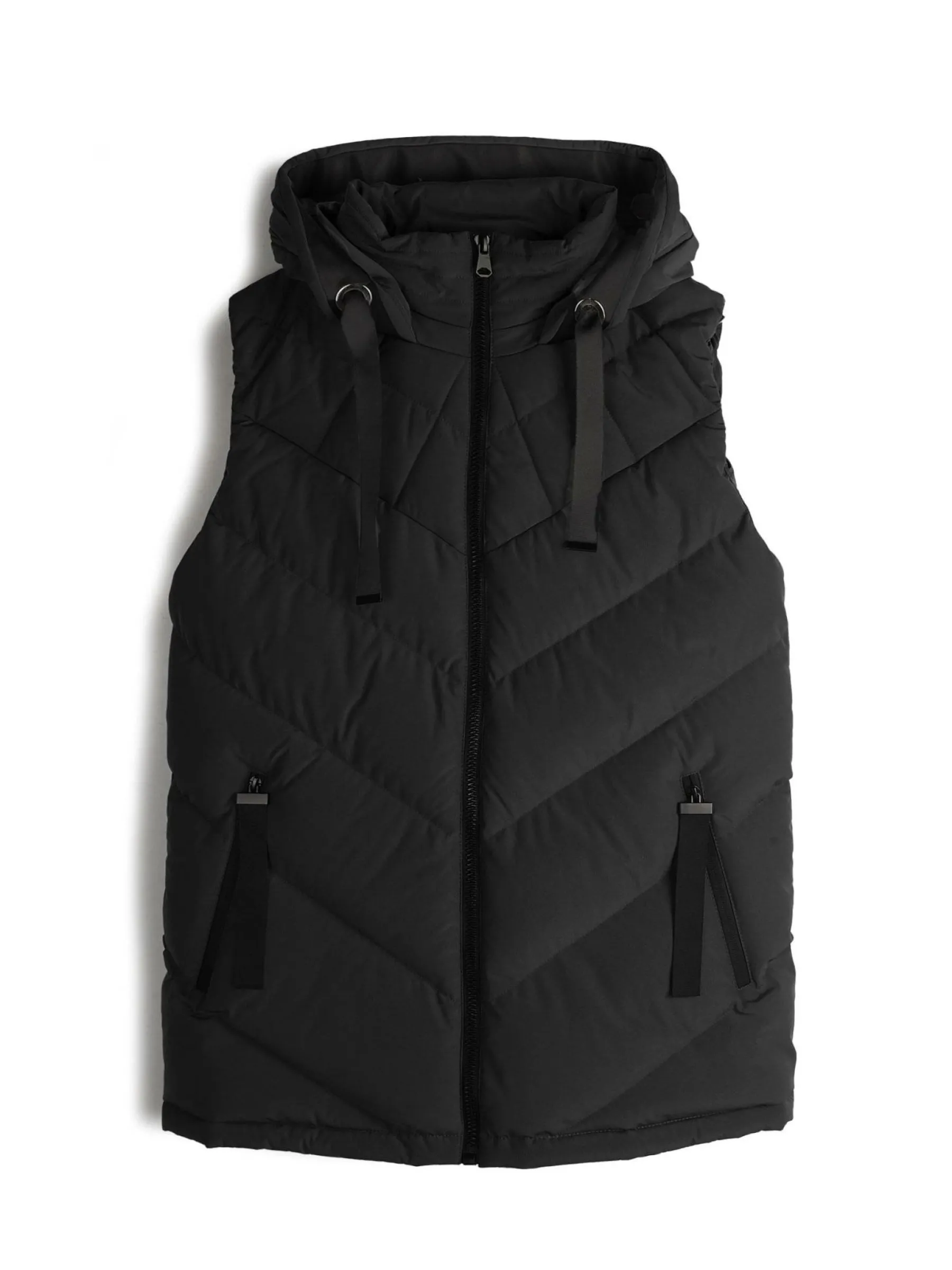 Kolor: czarnyKrój: pikowaneTyp: zimowa/przejściowa kamizelkaRekaw: bez rękawówDługość: krótkiPattern style: poje…
