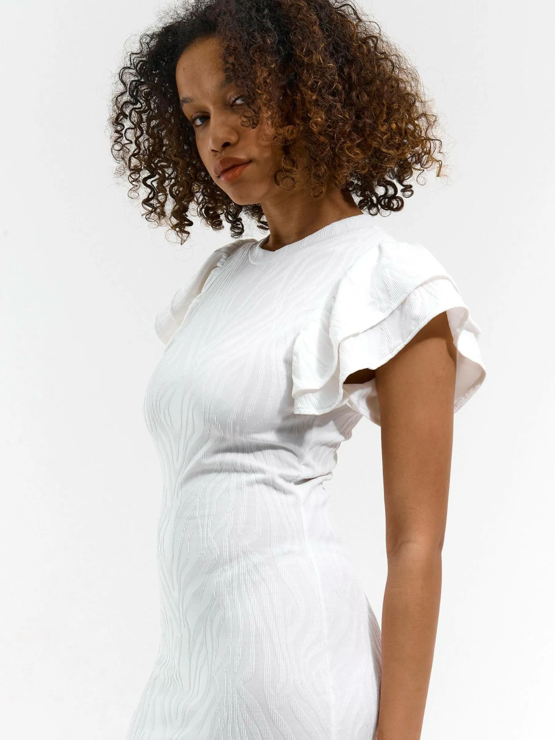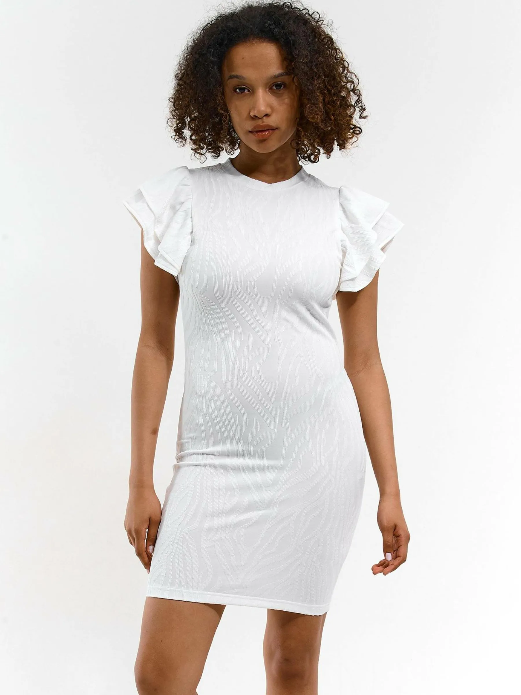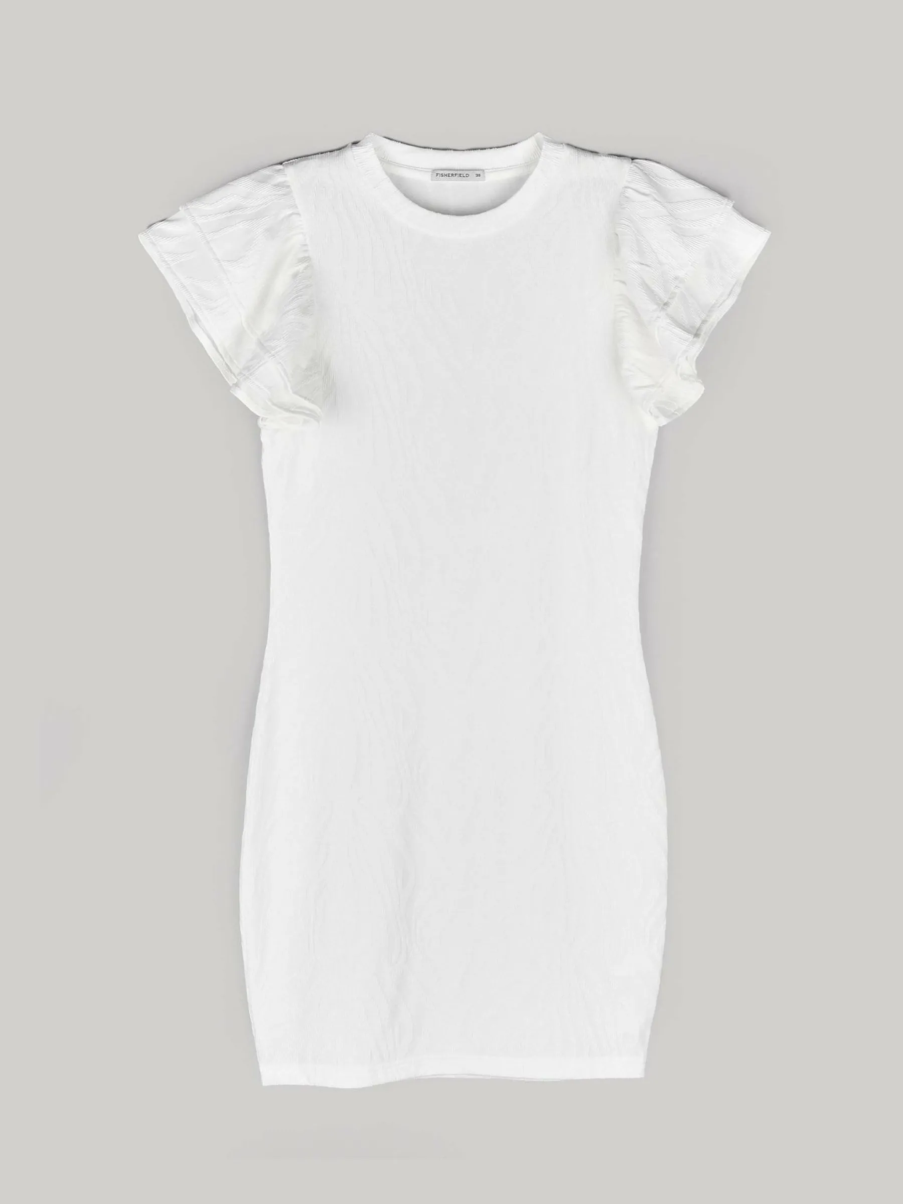 Kolor: białyKrój: ołówkoweTyp: sukienkaRekaw: krótki rękawDługość: miniPattern style: pojedynczy kolorMateriał…
