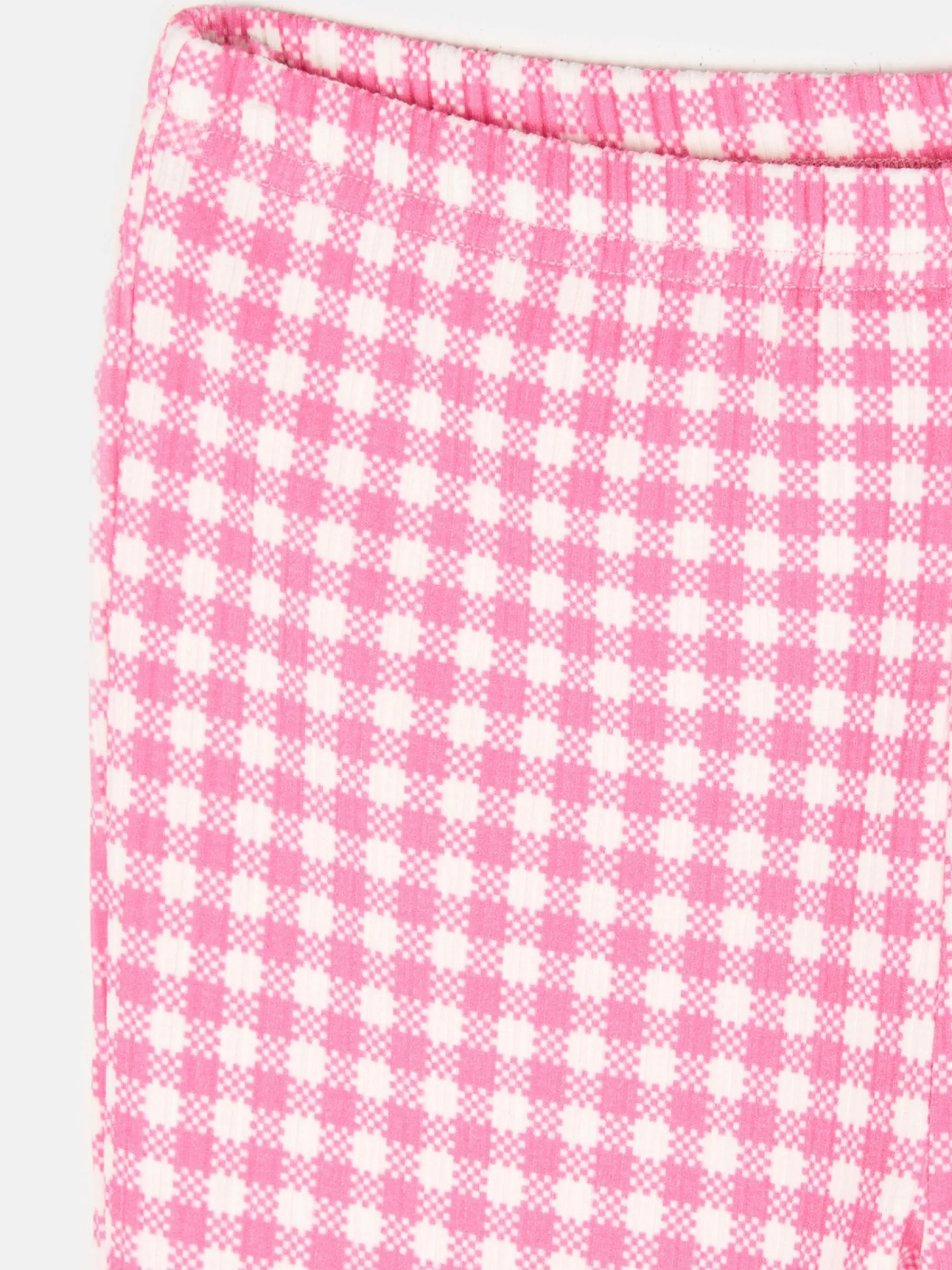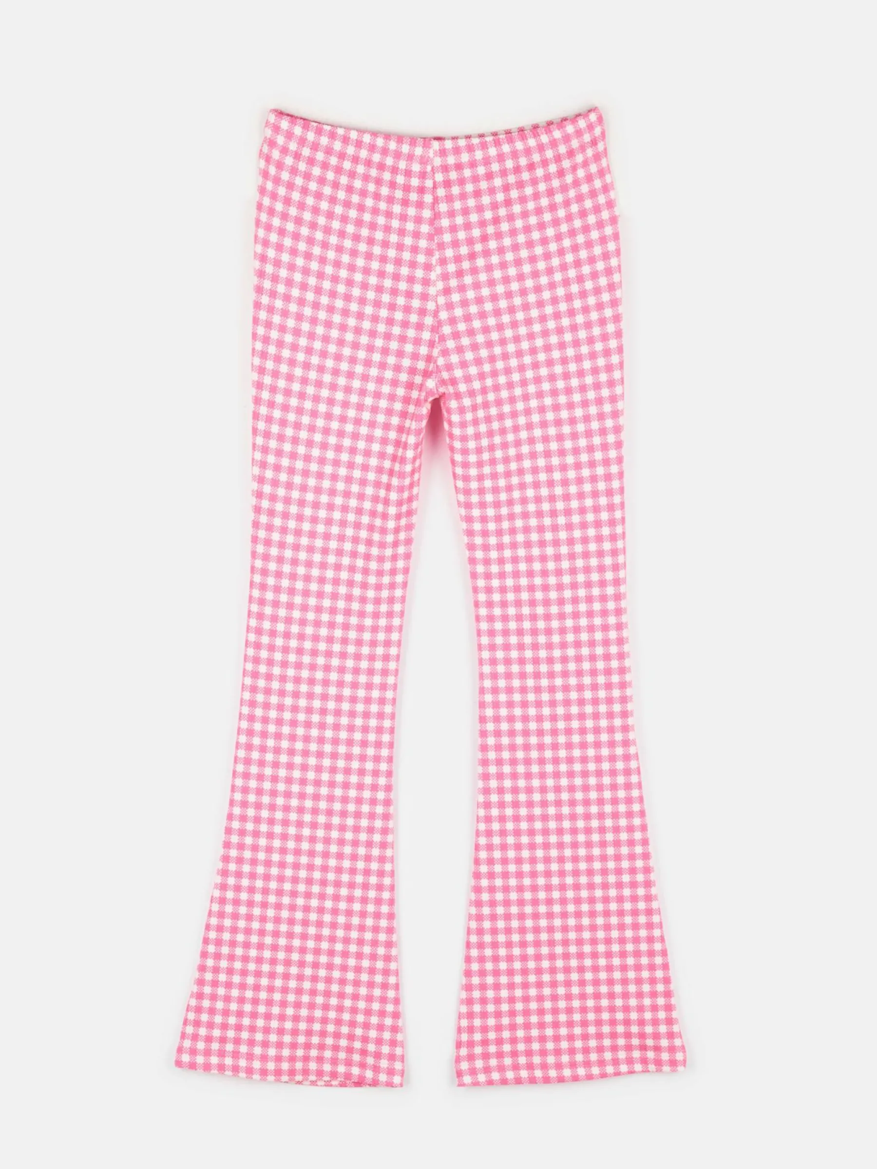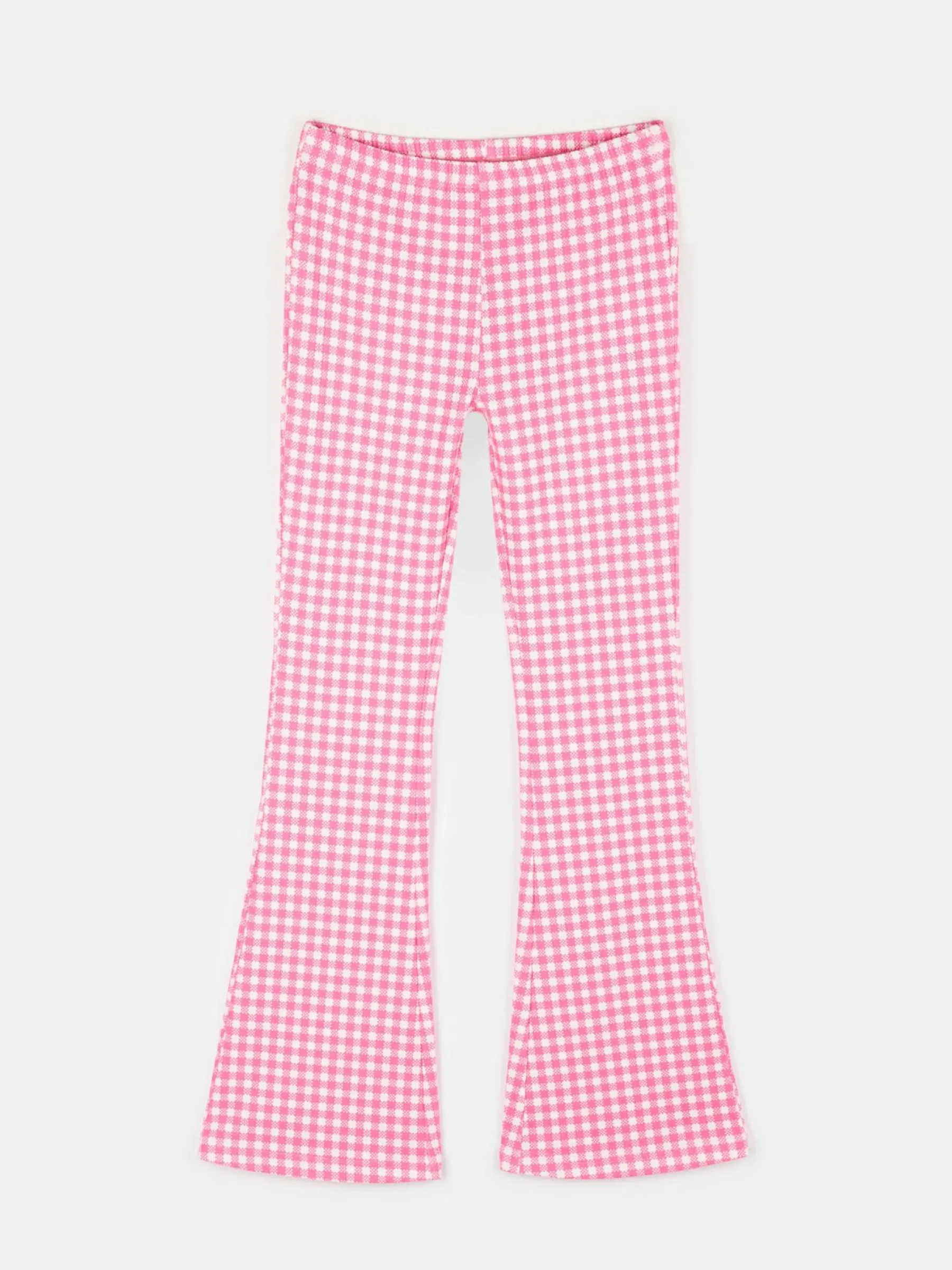 Kolor: różowyKrój: dzwonTyp: spodnieDługość: dlugiePattern style: w kratkęMateriał: syntetycznePłeć: dziewczyn…