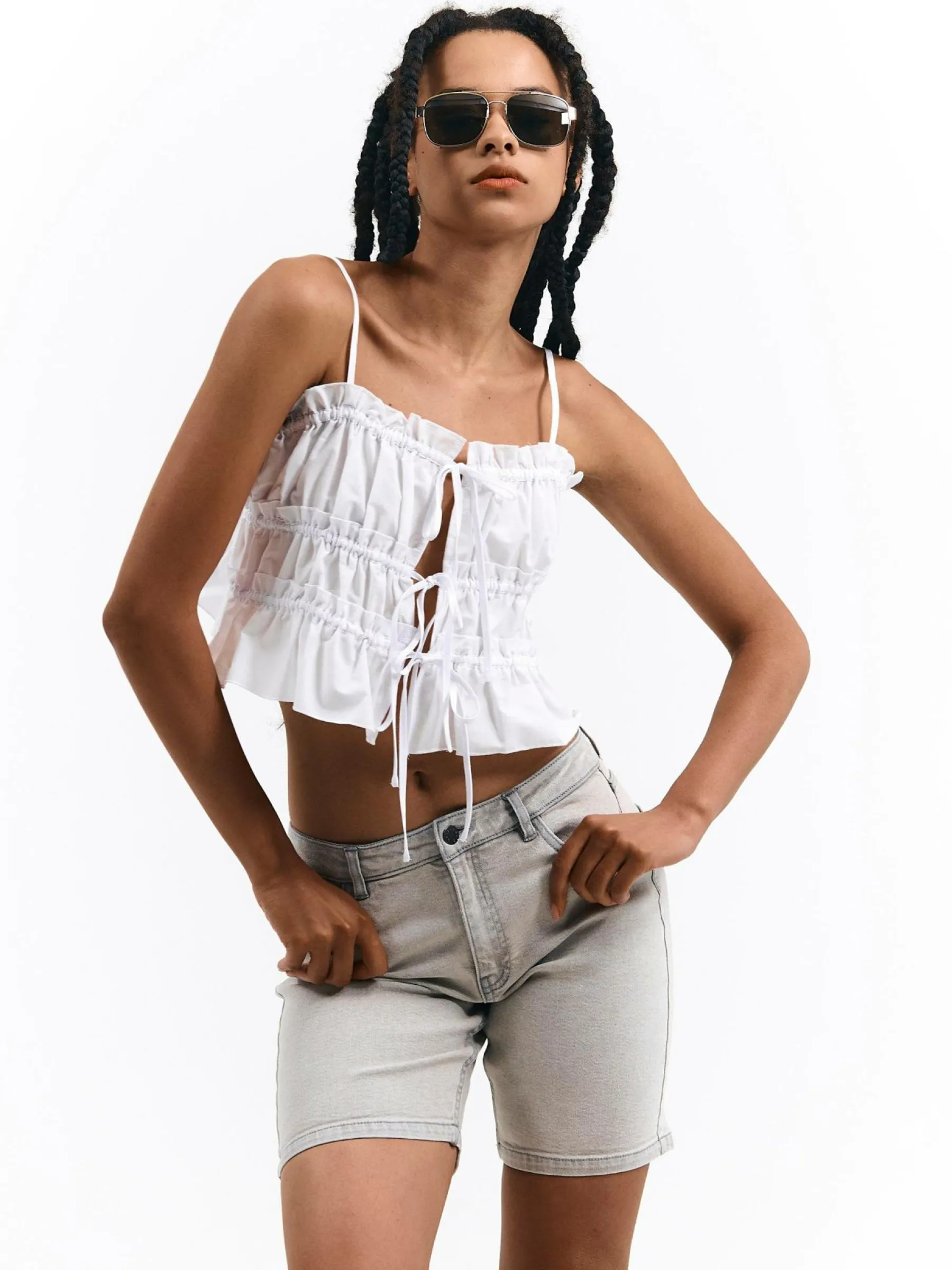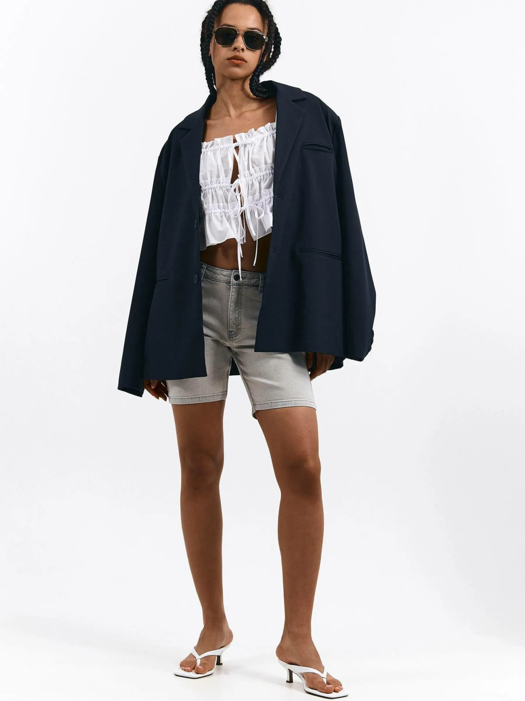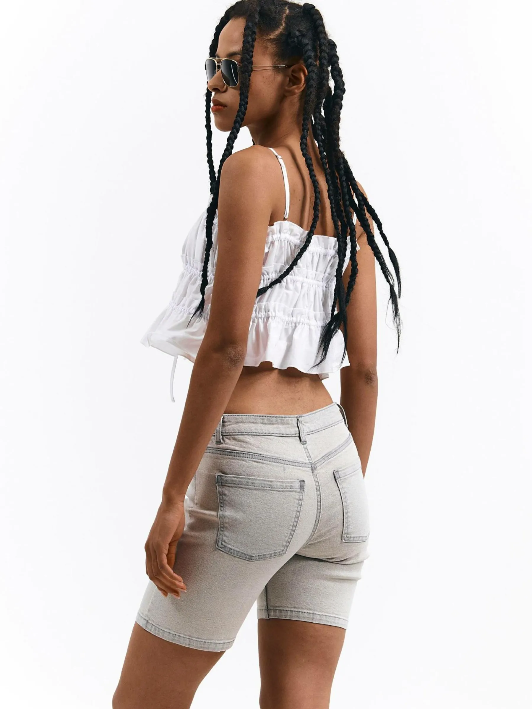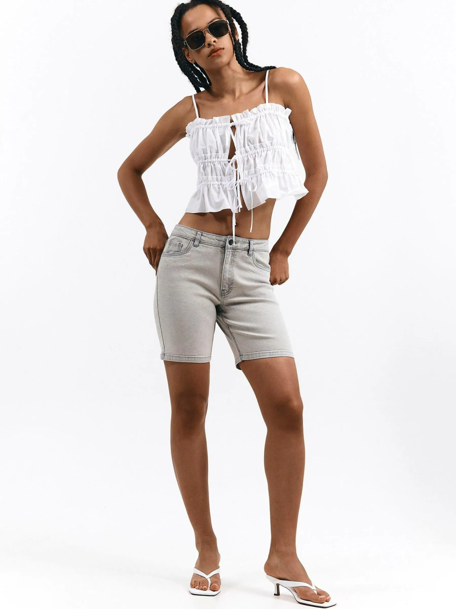 Kolor: szaryKrój: skinnyTyp: spodenkiDługość: krótkiPattern style: pojedynczy kolorDetal: na zamek, z kieszeniamiMa…