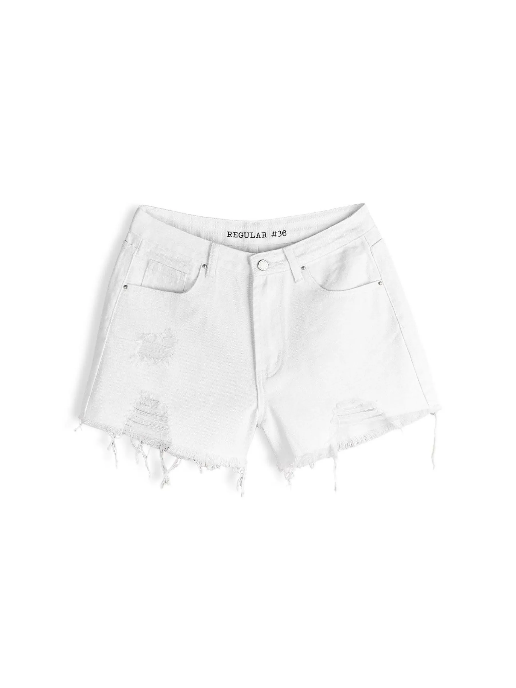 Kolor: białyKrój: straightTyp: spodenkiDługość: krótkiPattern style: pojedynczy kolorDetal: na zamek, z kieszeniam…