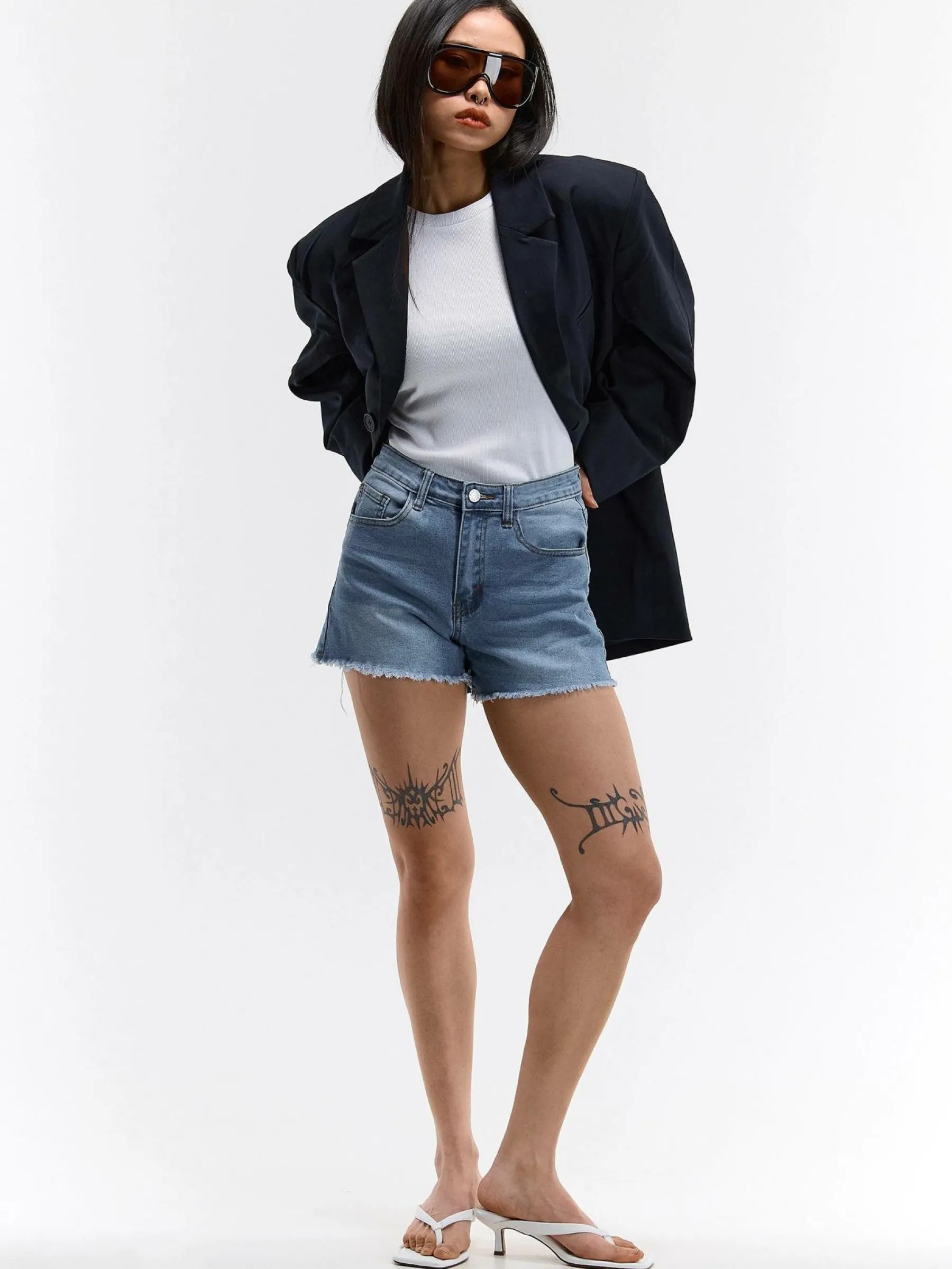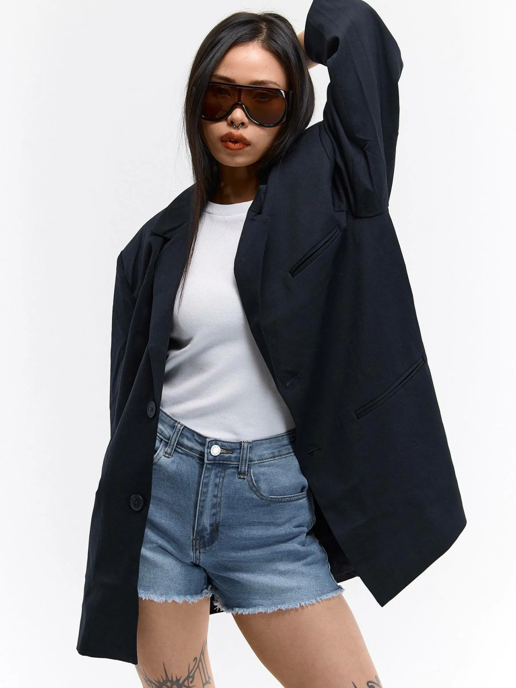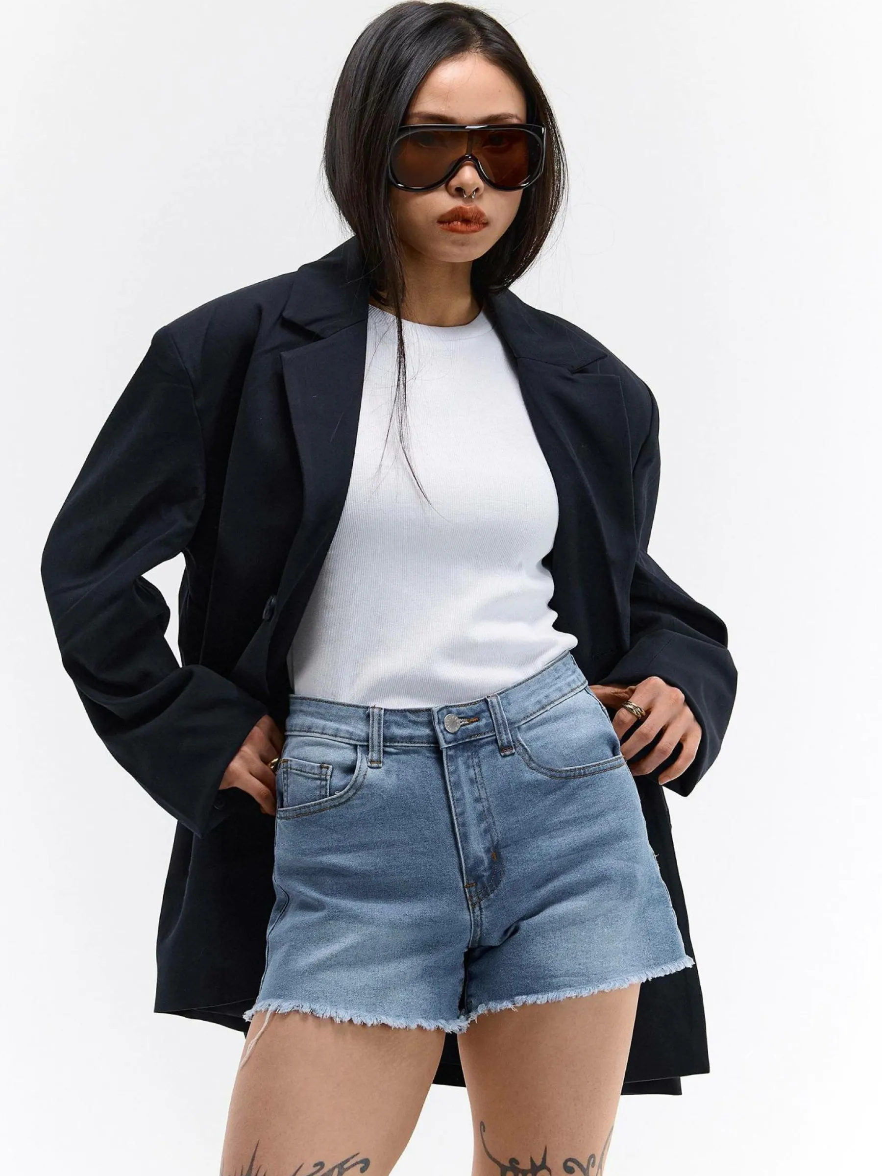 Kolor: niebieskiKrój: skinnyTyp: spodenkiDługość: krótkiPattern style: pojedynczy kolorDetal: na zamek, z kieszenia…