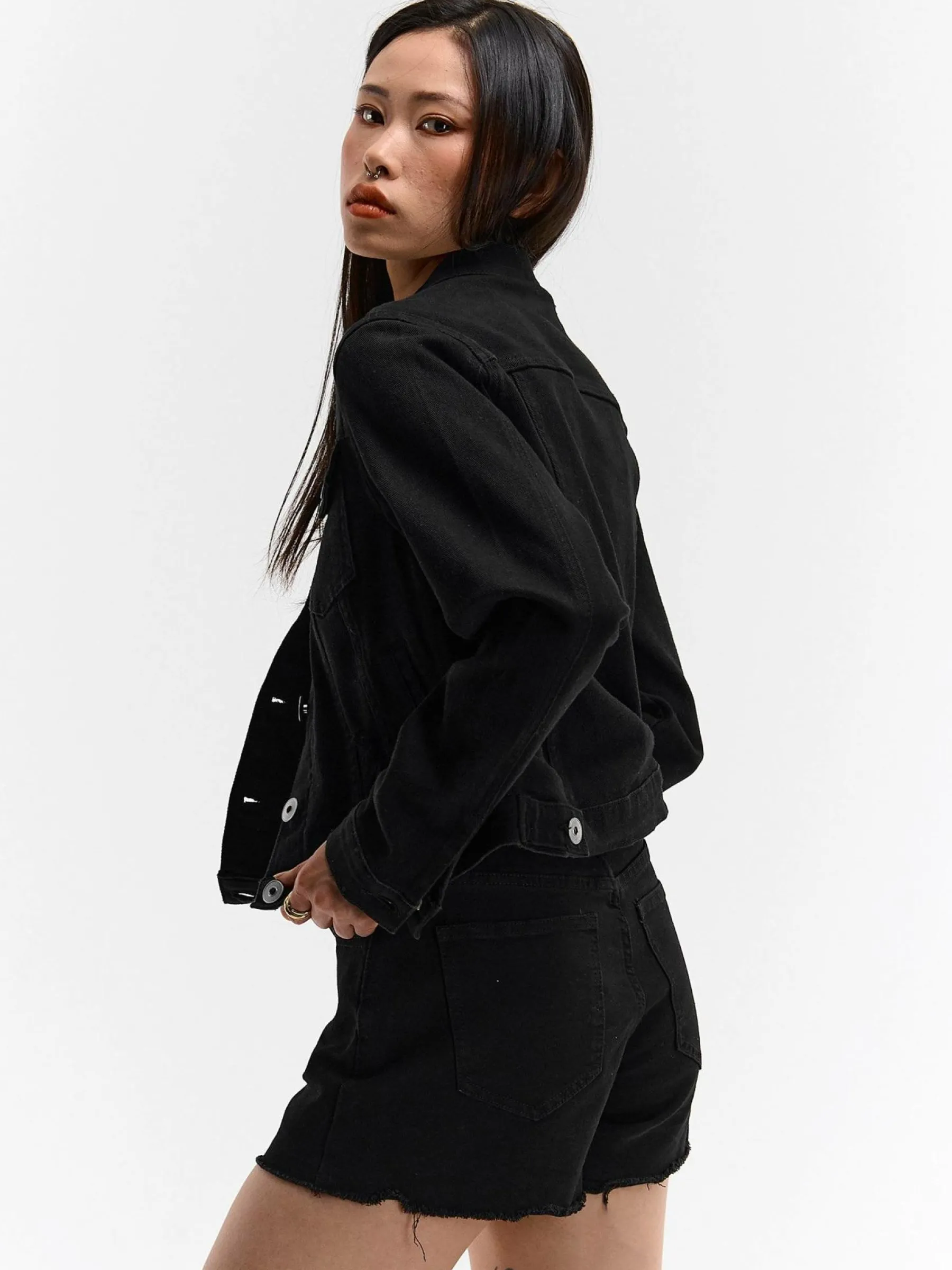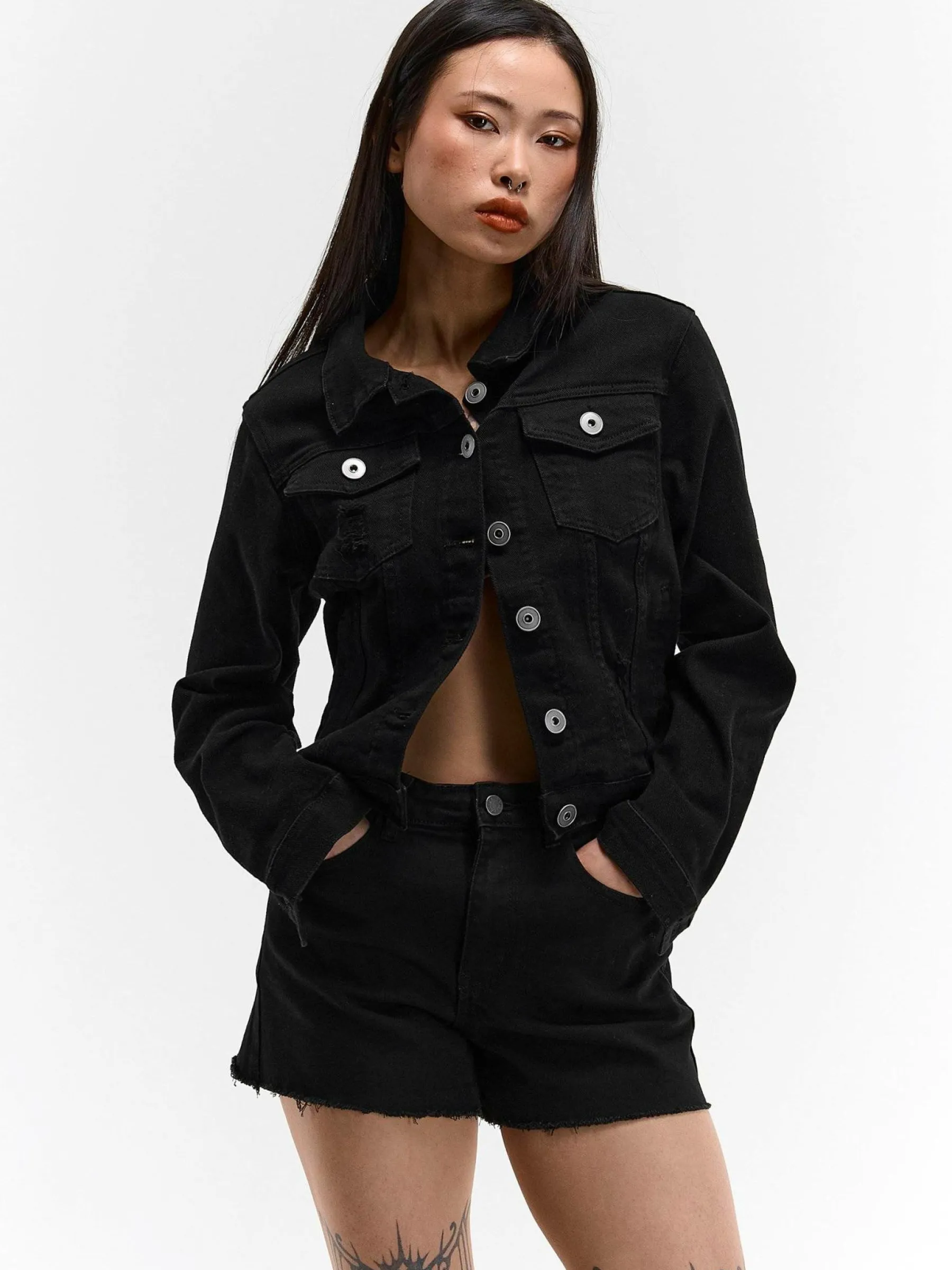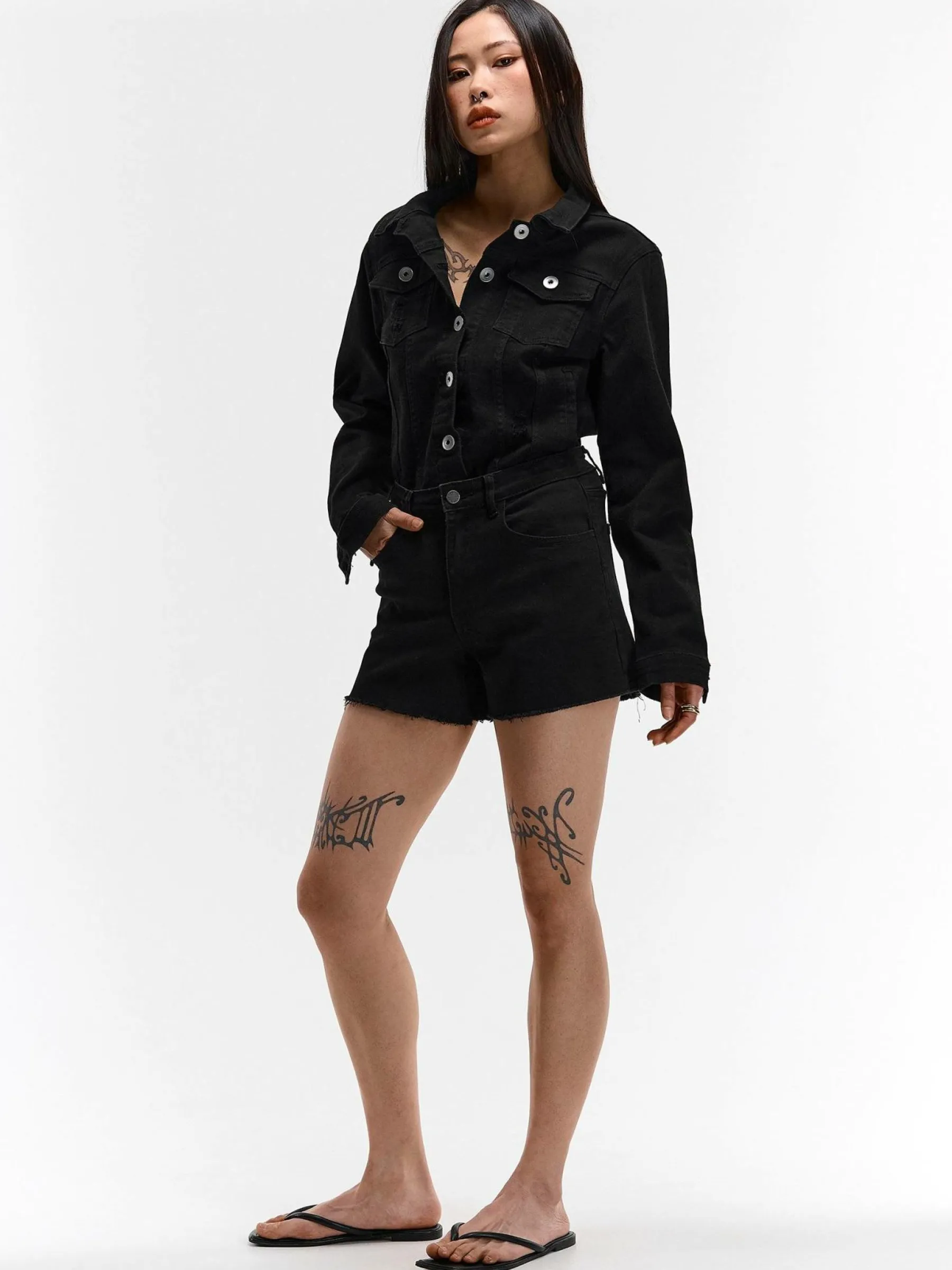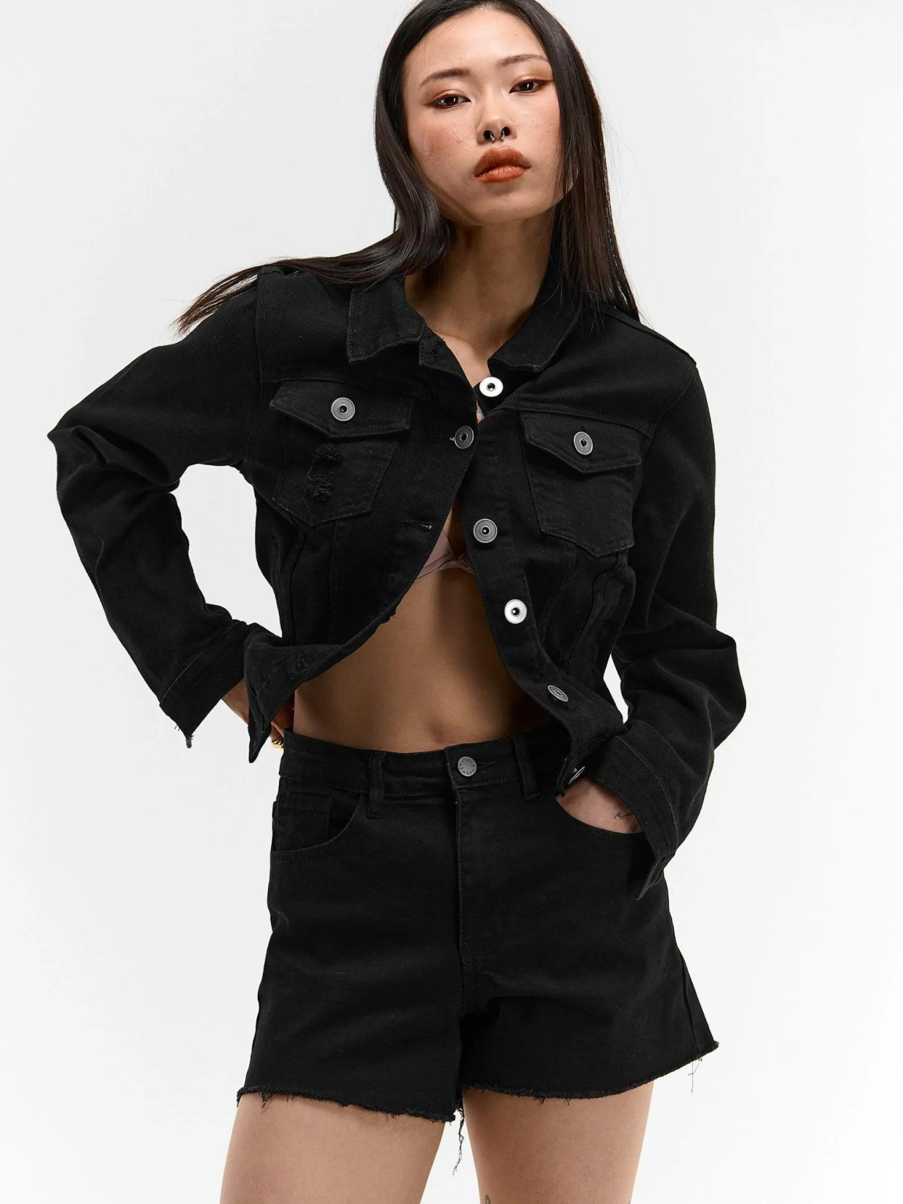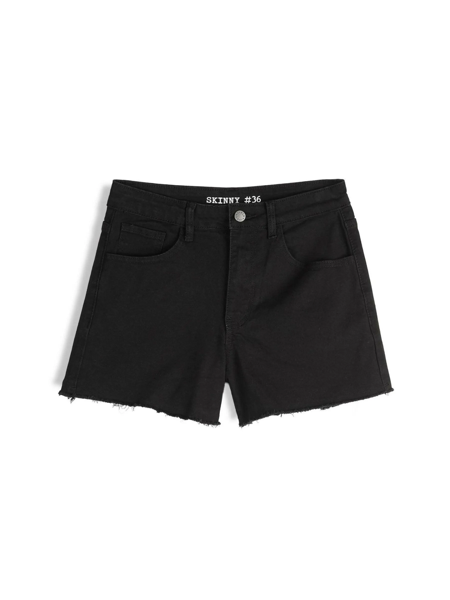 Kolor: czarnyKrój: skinny, z wysokim stanemTyp: spodenkiDługość: krótkiPattern style: pojedynczy kolorDetal: na zam…