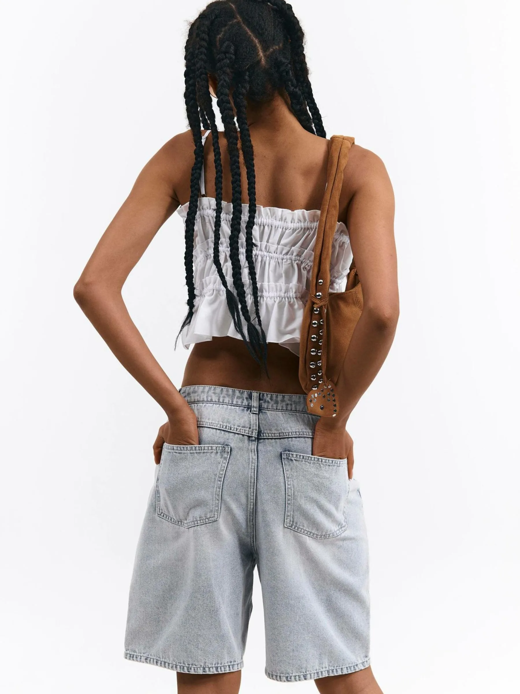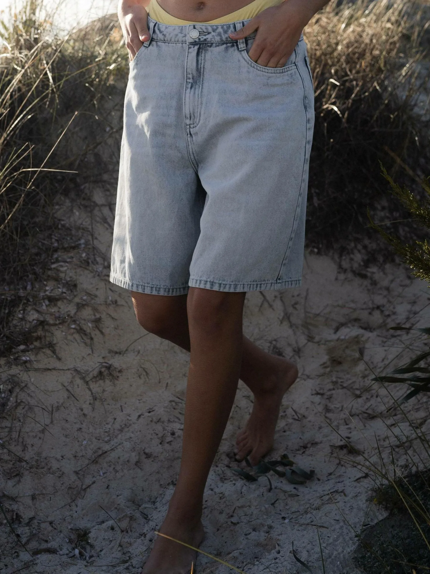 Kolor: niebieskiKrój: szerokieTyp: spodenkiDługość: krótkiPattern style: pojedynczy kolorDetal: z kieszeniami, na z…