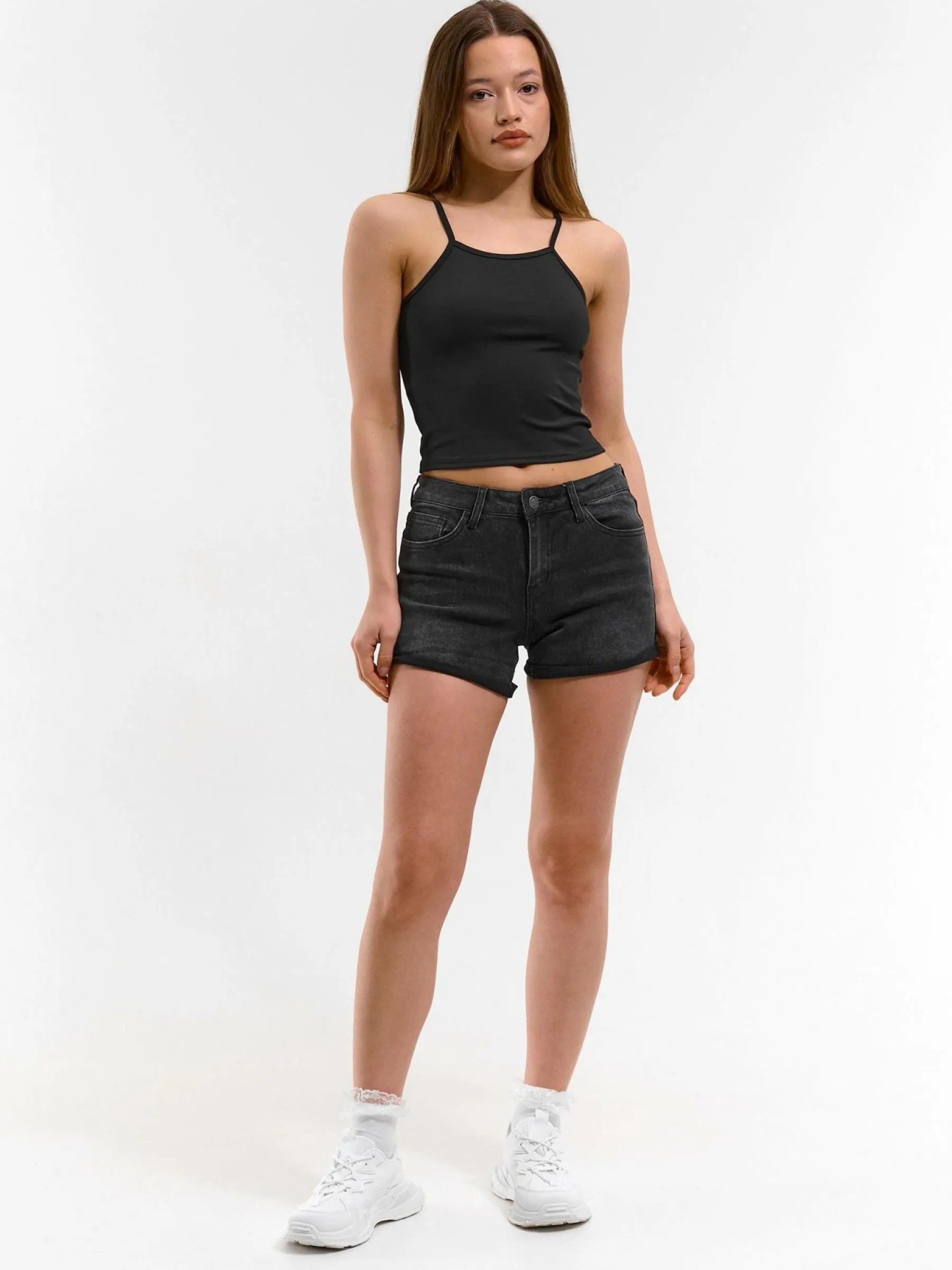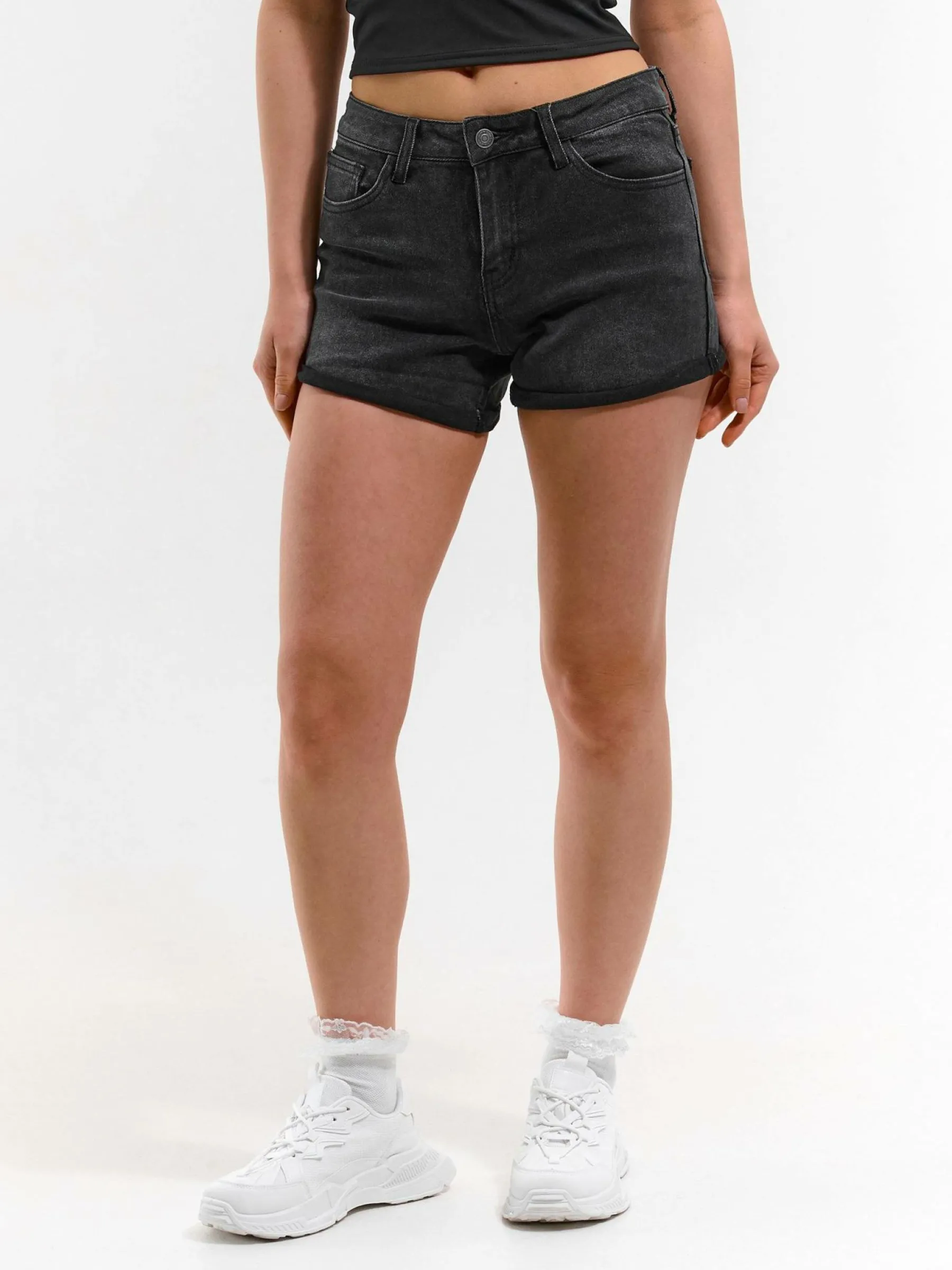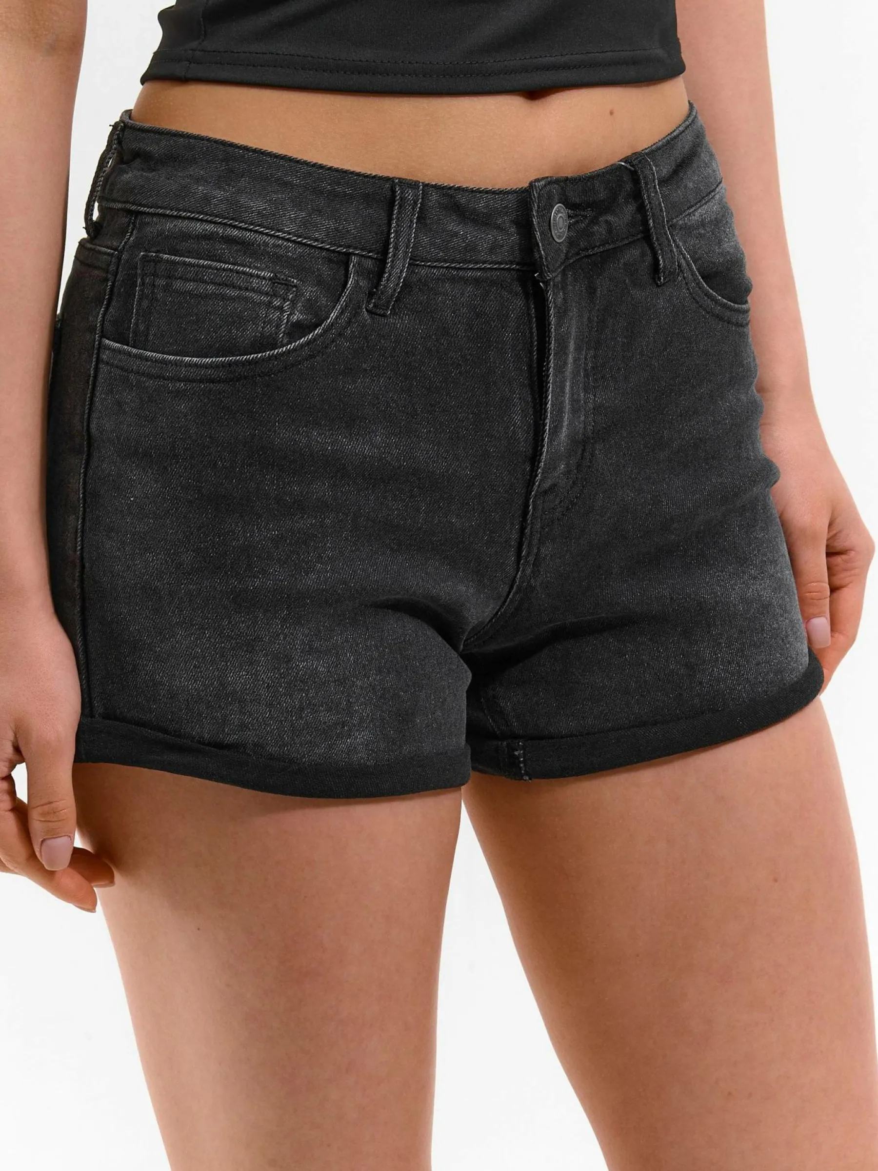 Kolor: czarnyKrój: straightTyp: spodenkiDługość: krótkiPattern style: pojedynczy kolorDetal: na zamek, z kieszeniam…