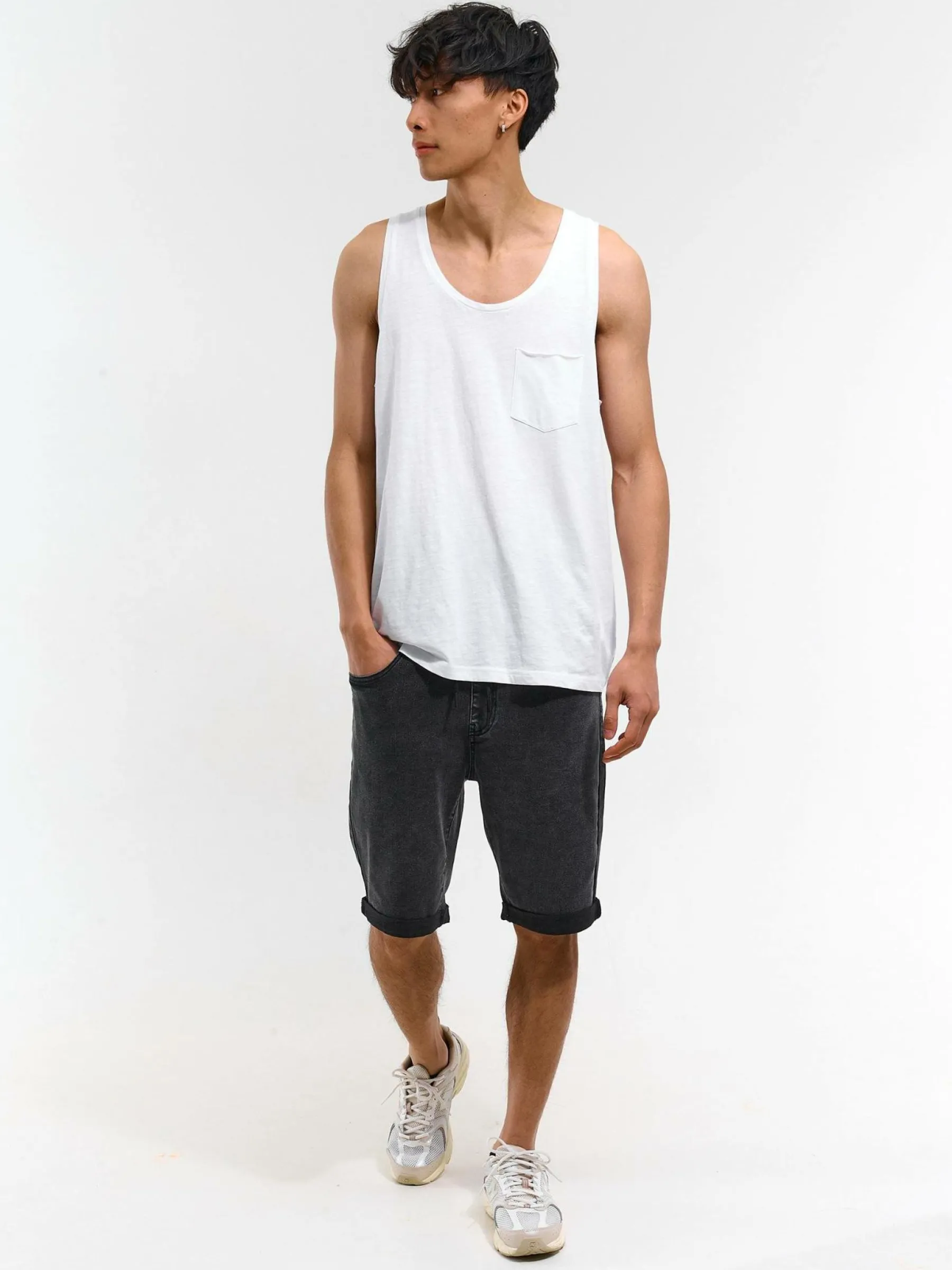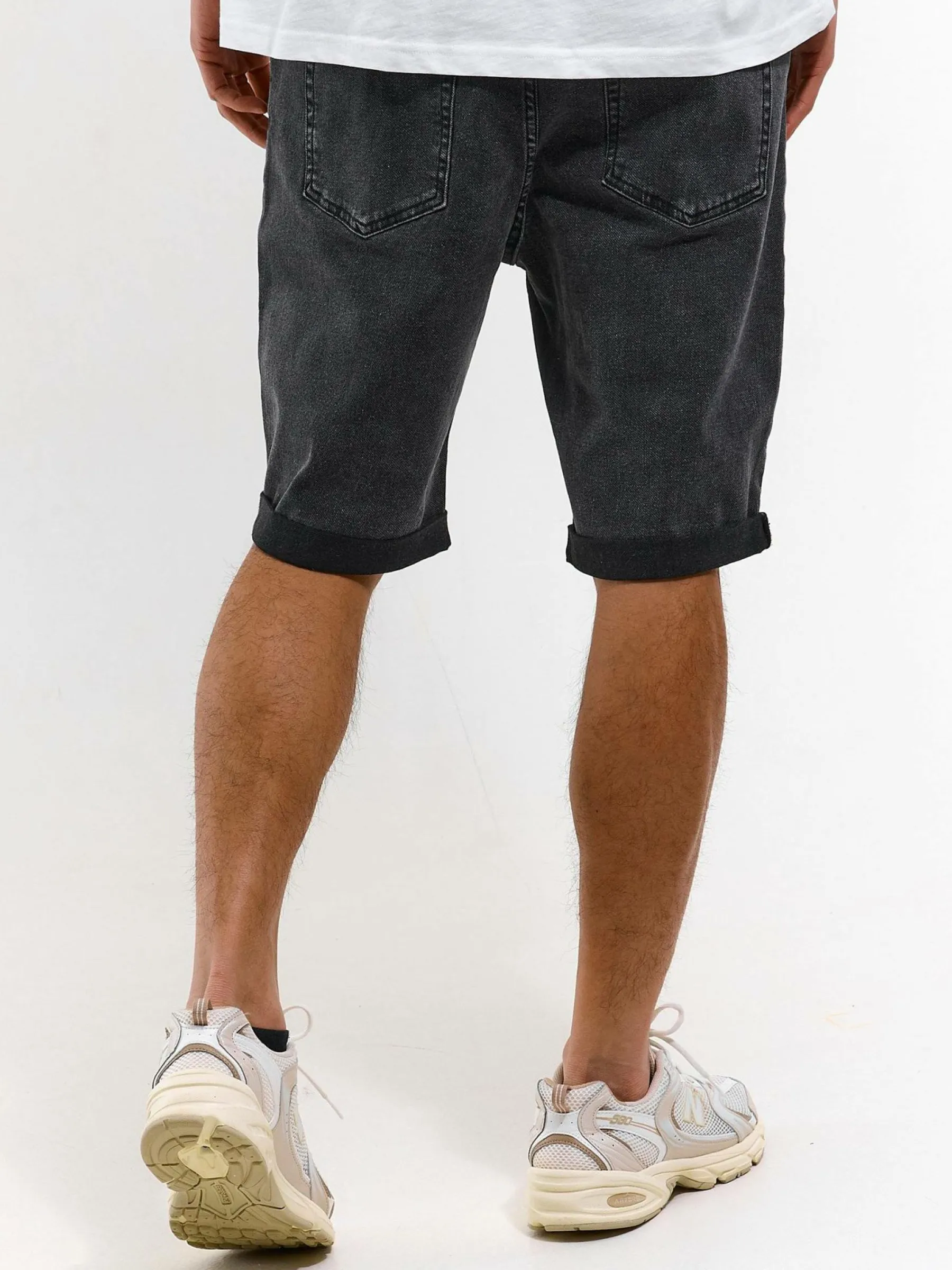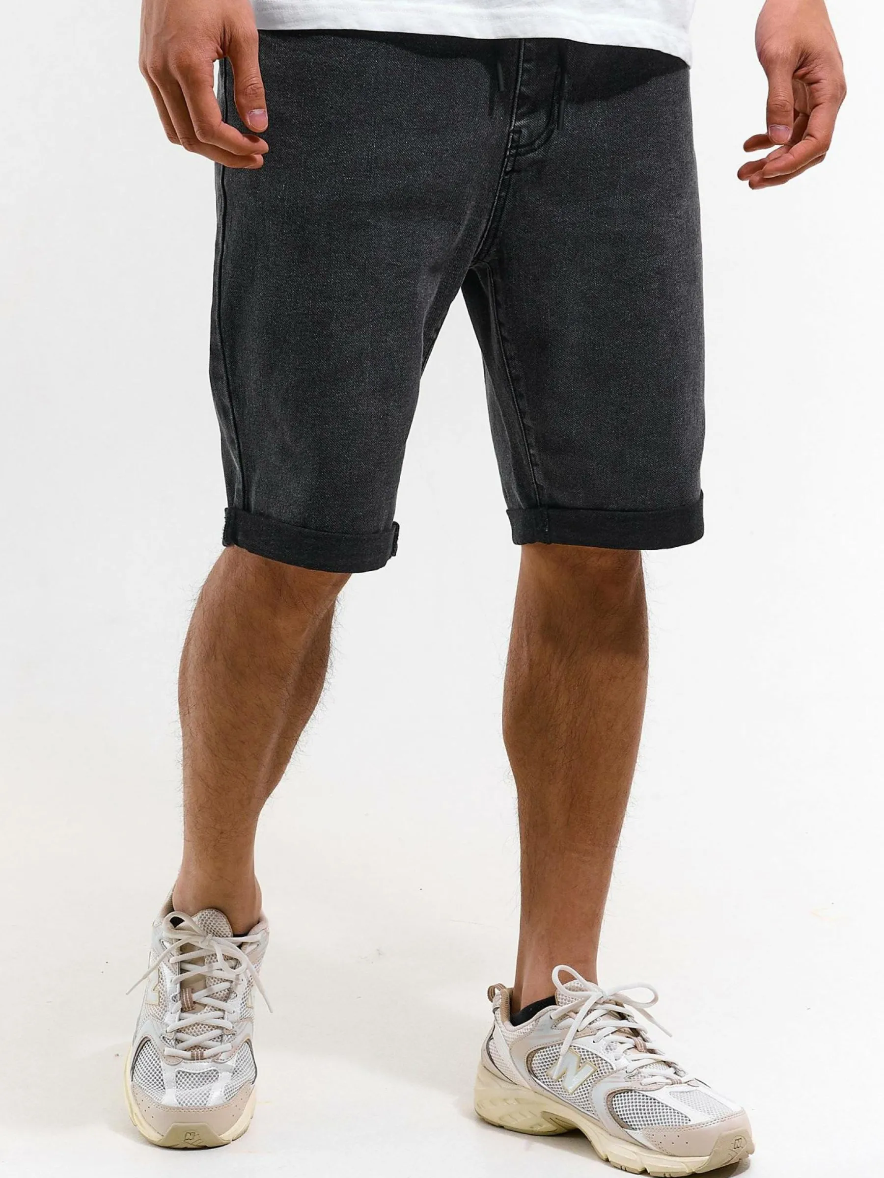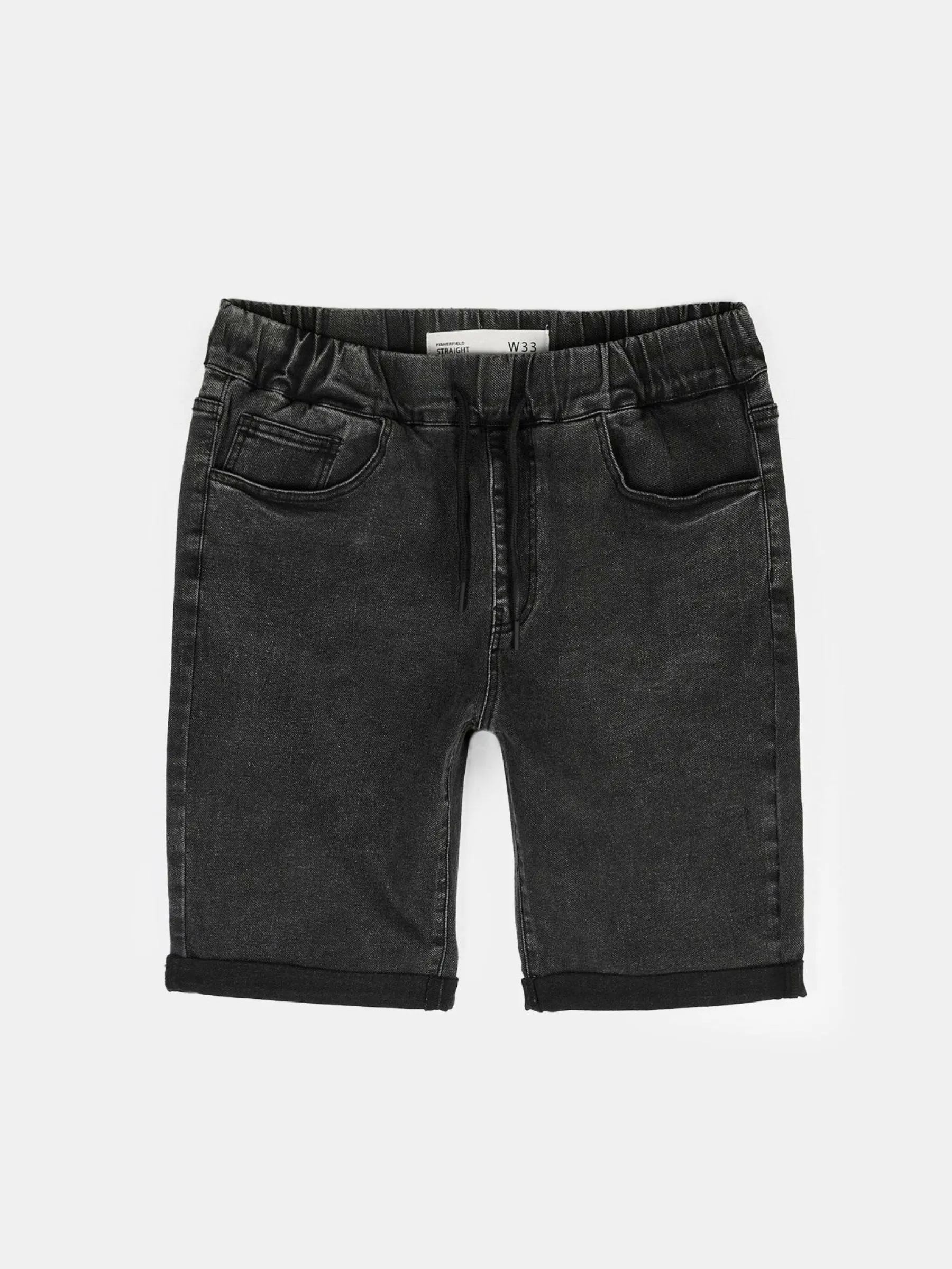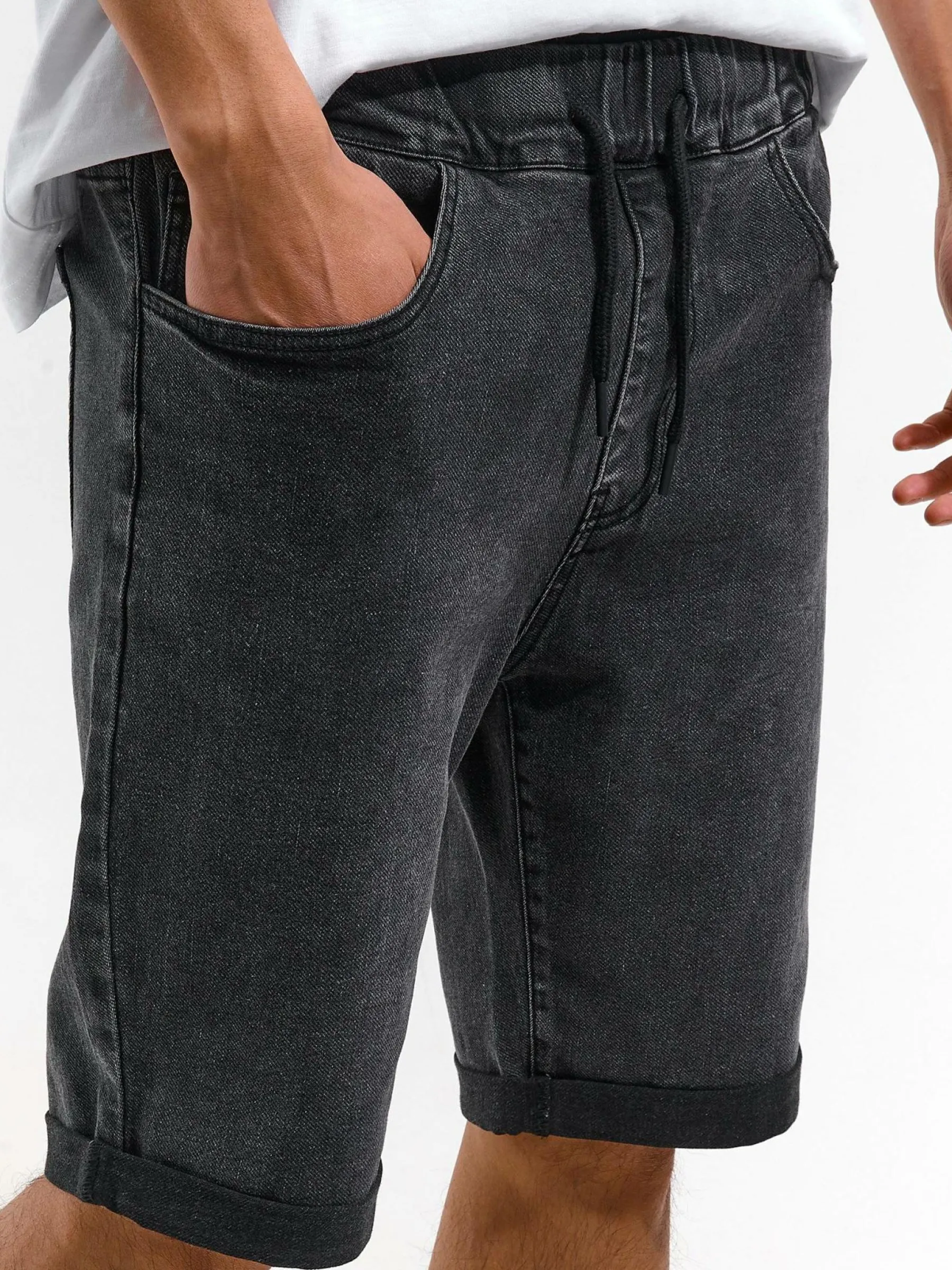 Kolor: czarnyKrój: prosty slimTyp: spodenkiDługość: krótkiPattern style: pojedynczy kolorDetal: ze sznurowaniemMate…