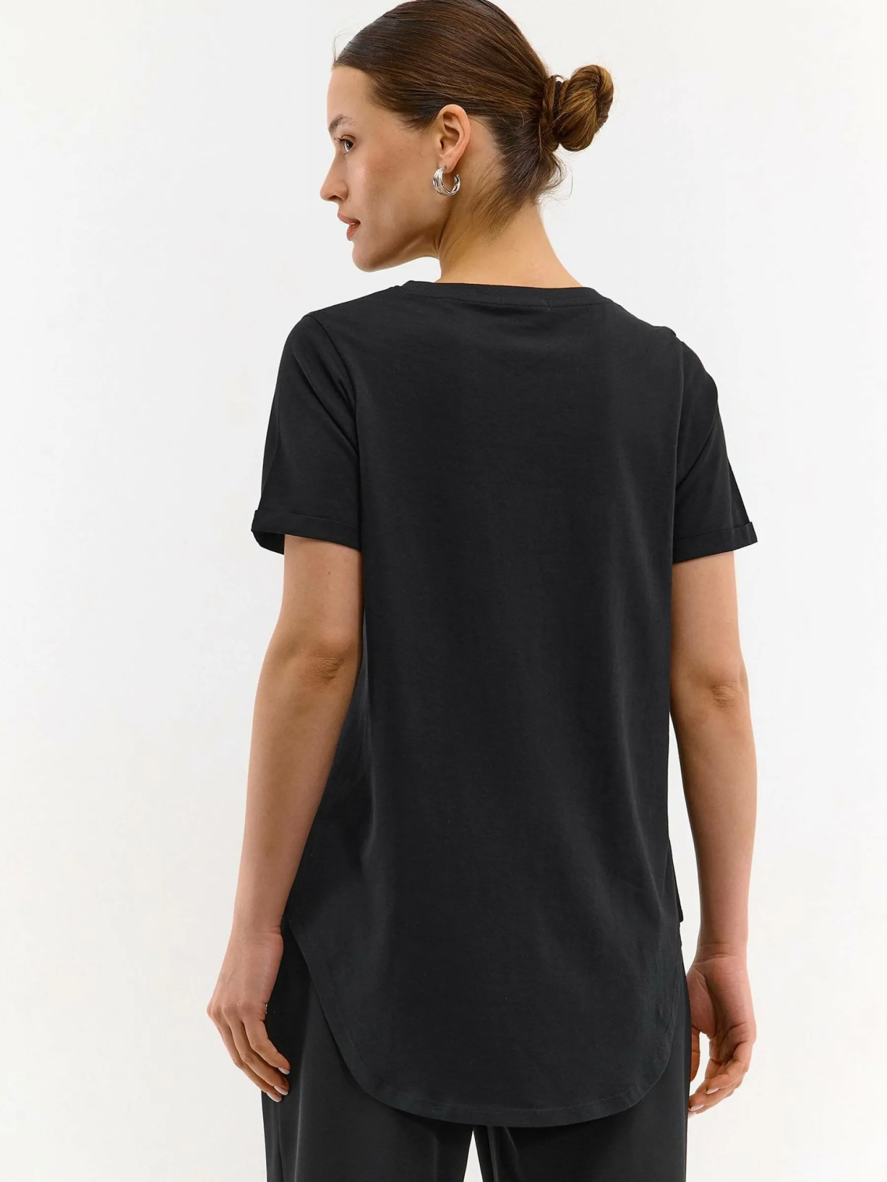 Kolor: czarnyKrój: asymetryczneTyp: koszulkaRekaw: krótki rękawDługość: dlugiePattern style: z nadrukiemDetal: nad…