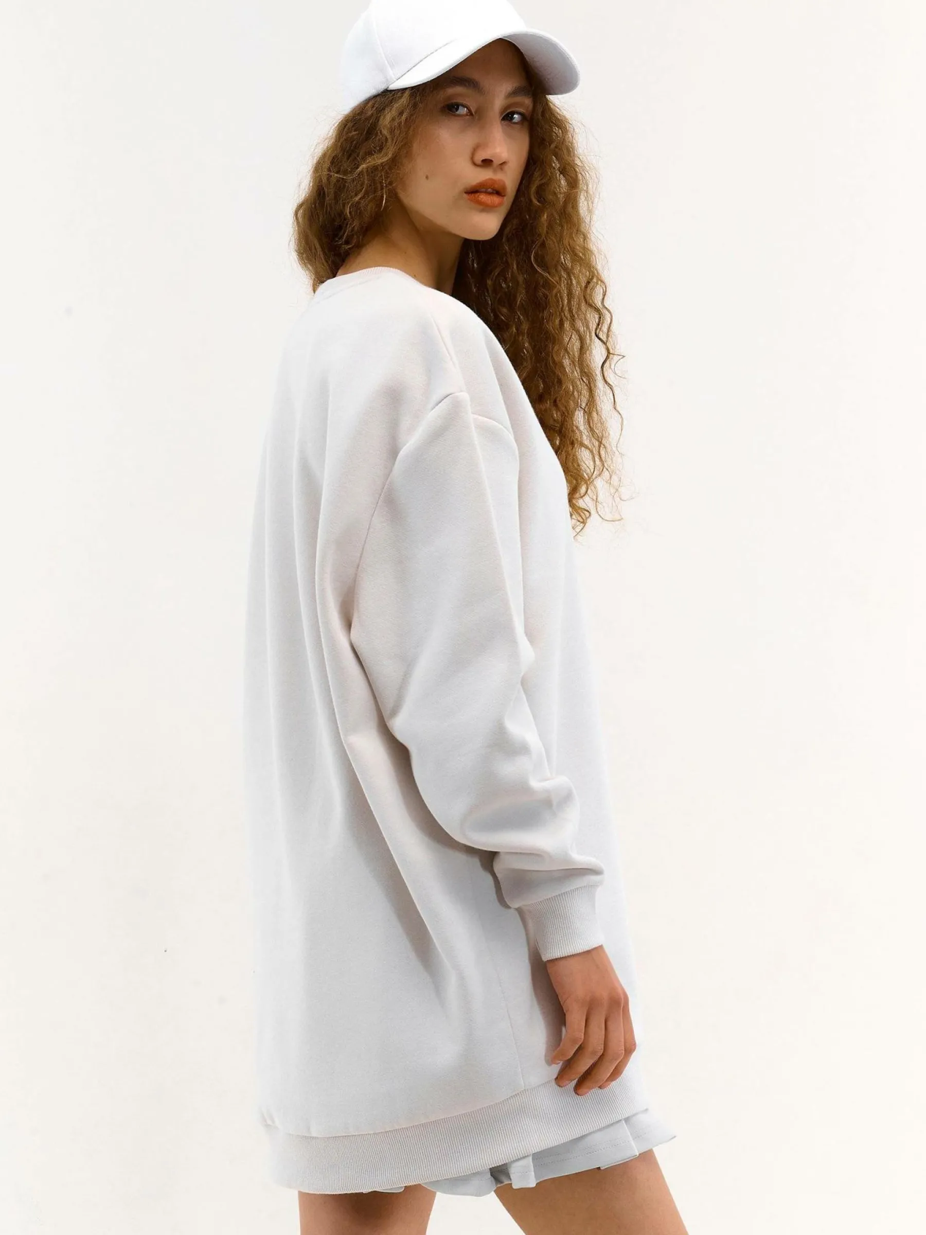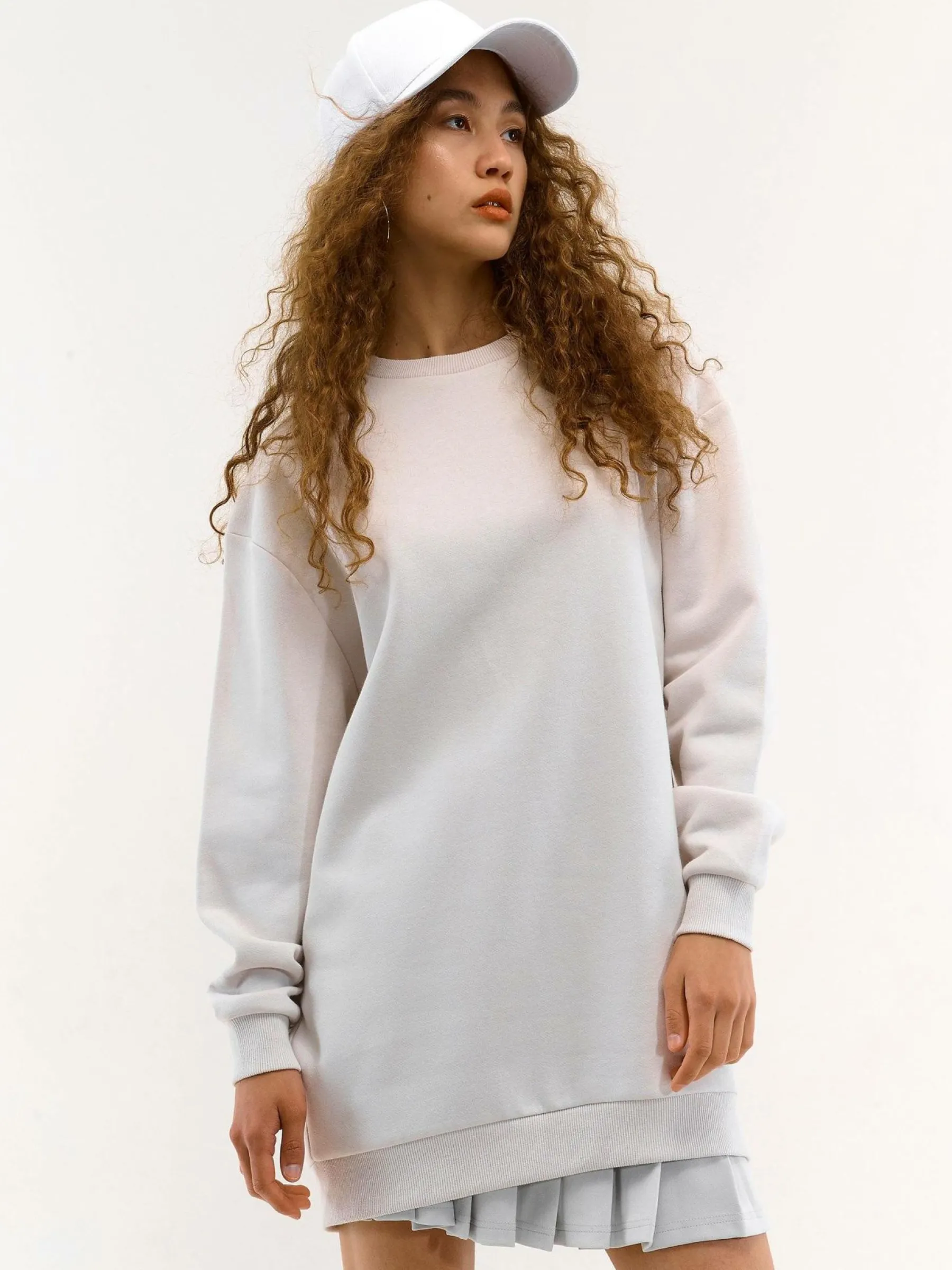 Kolor: beżowyKrój: oversizedTyp: bluzaRekaw: długi rękawDługość: dlugiePattern style: pojedynczy kolorDetal: nad …