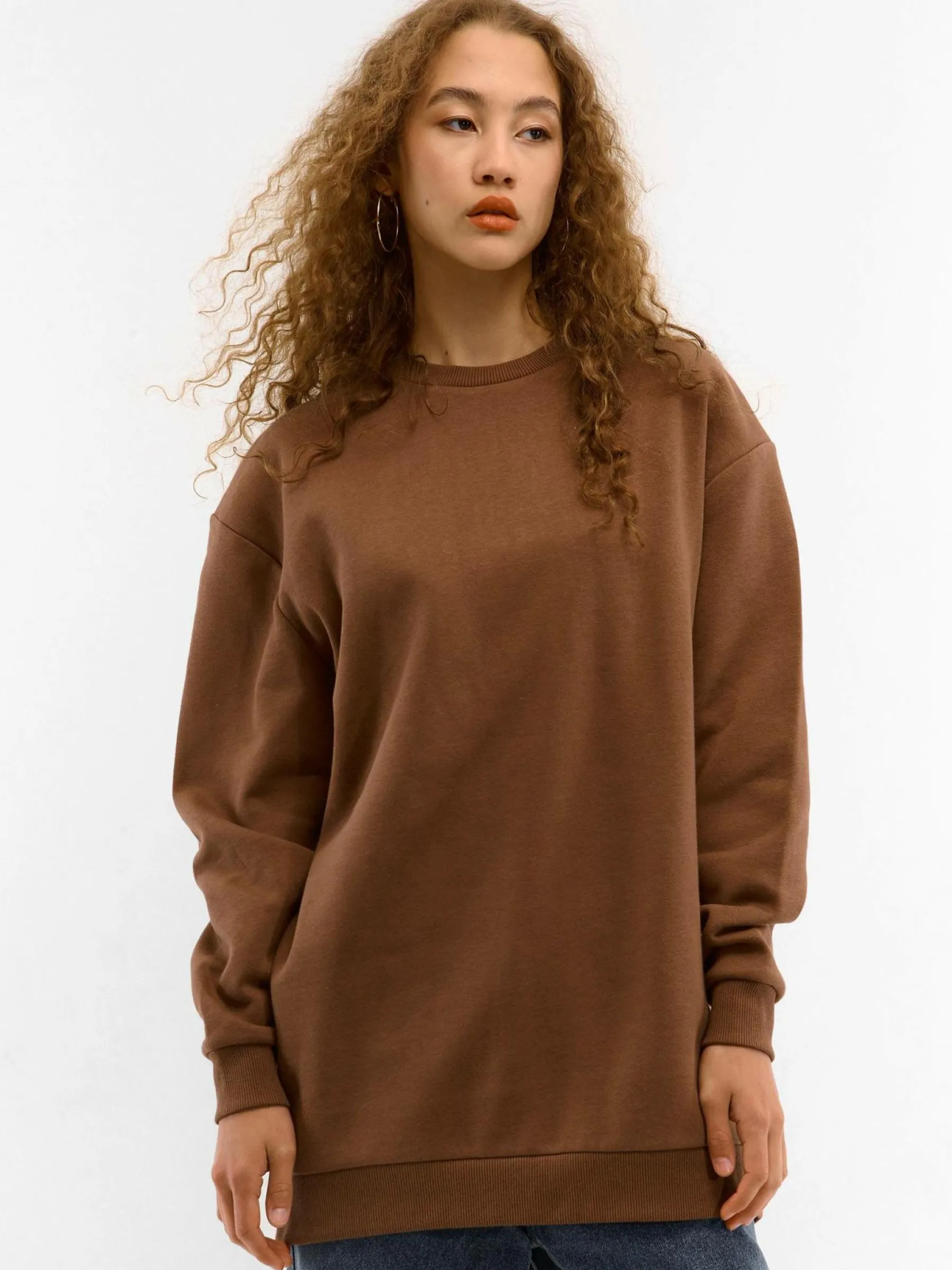 Kolor: brązowyKrój: oversizedTyp: bluzaRekaw: długi rękawDługość: dlugiePattern style: pojedynczy kolorDetal: nad…