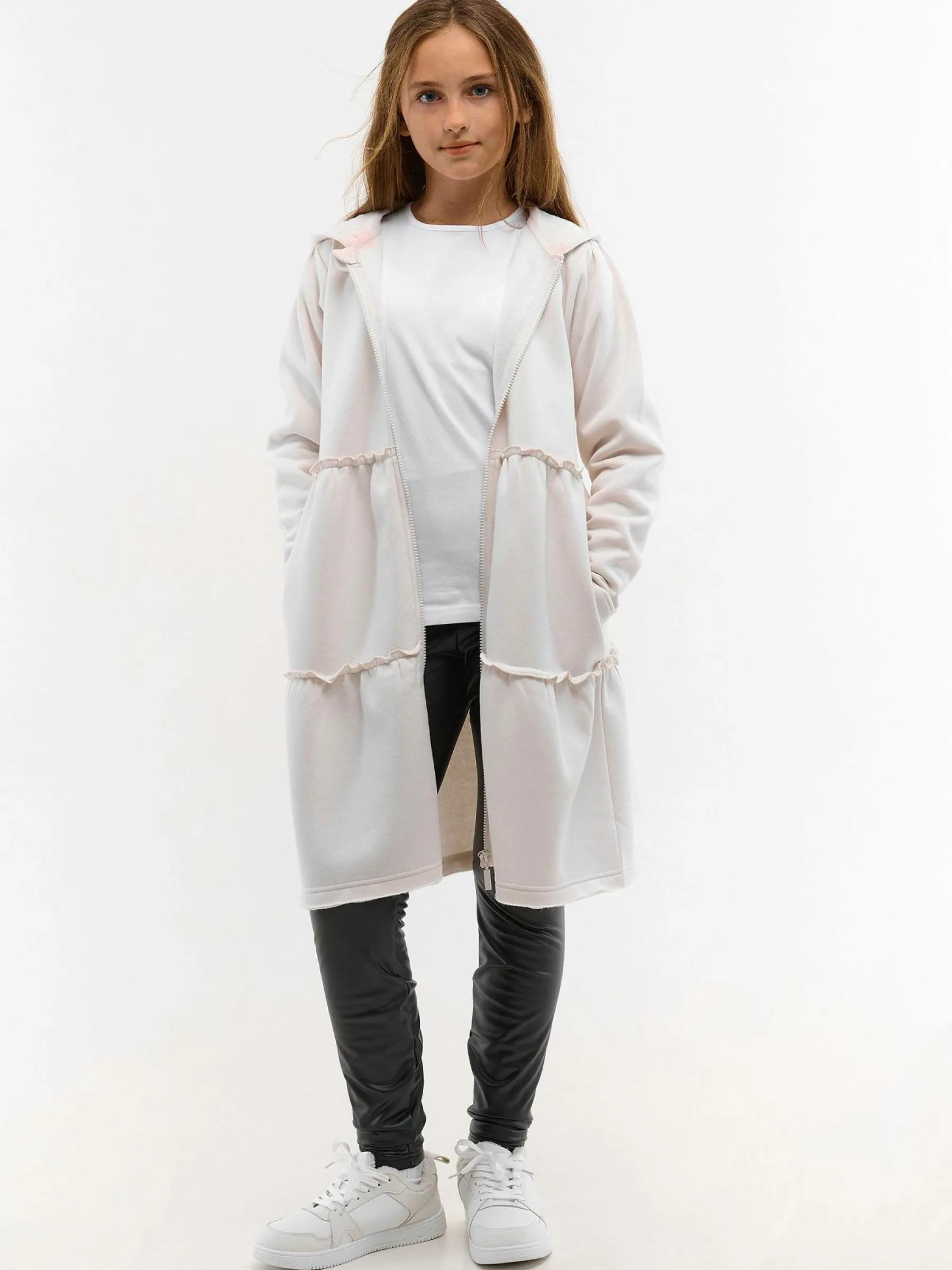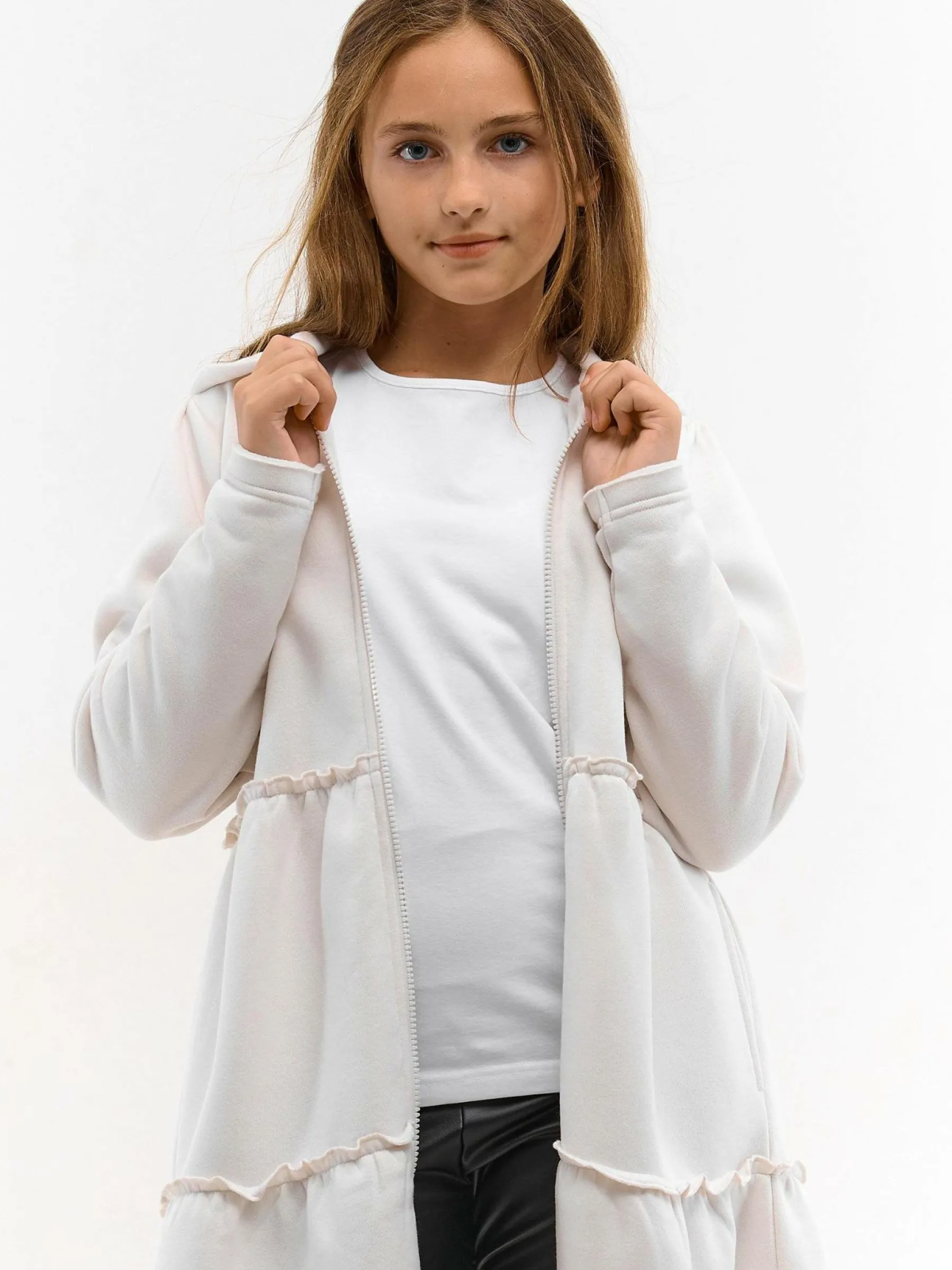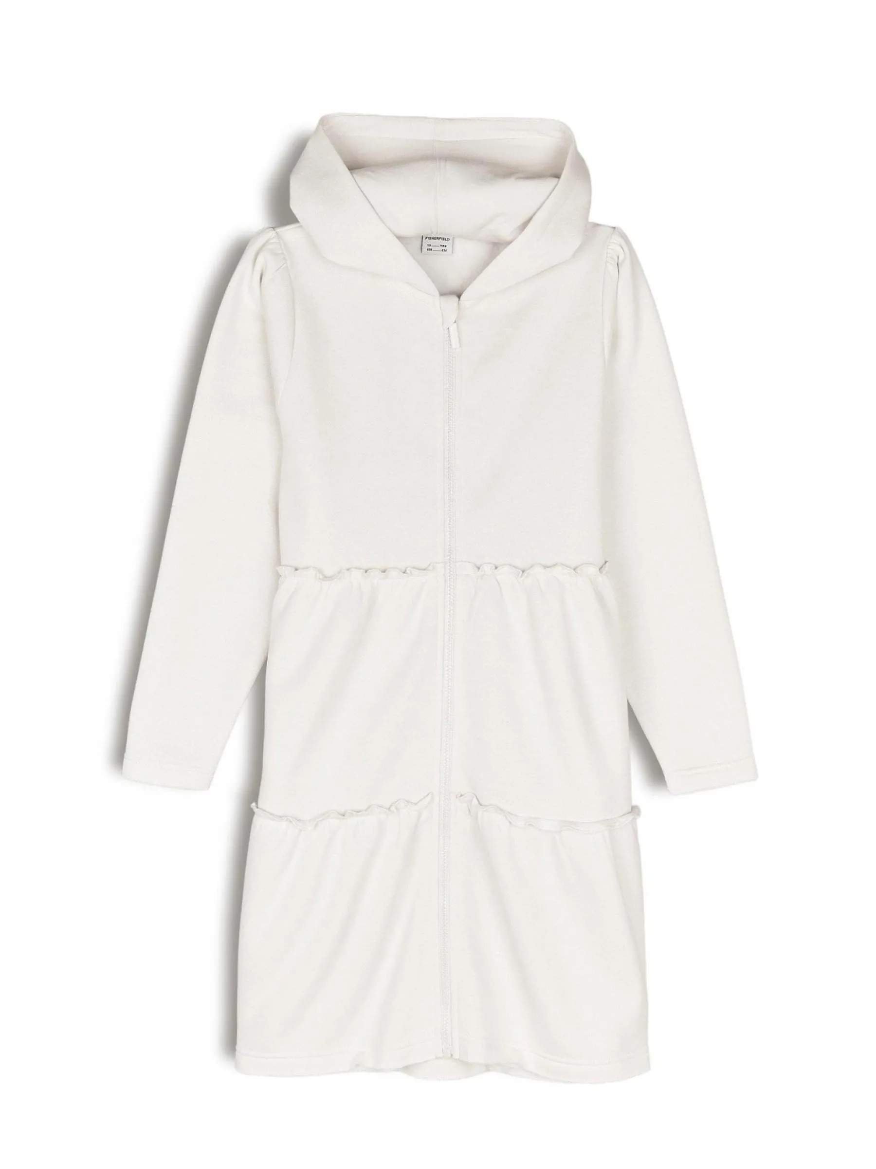 Kolor: białyKrój: z falbanąTyp: bluzaRekaw: długi rękawDługość: dlugiePattern style: pojedynczy kolorDetal: na z…